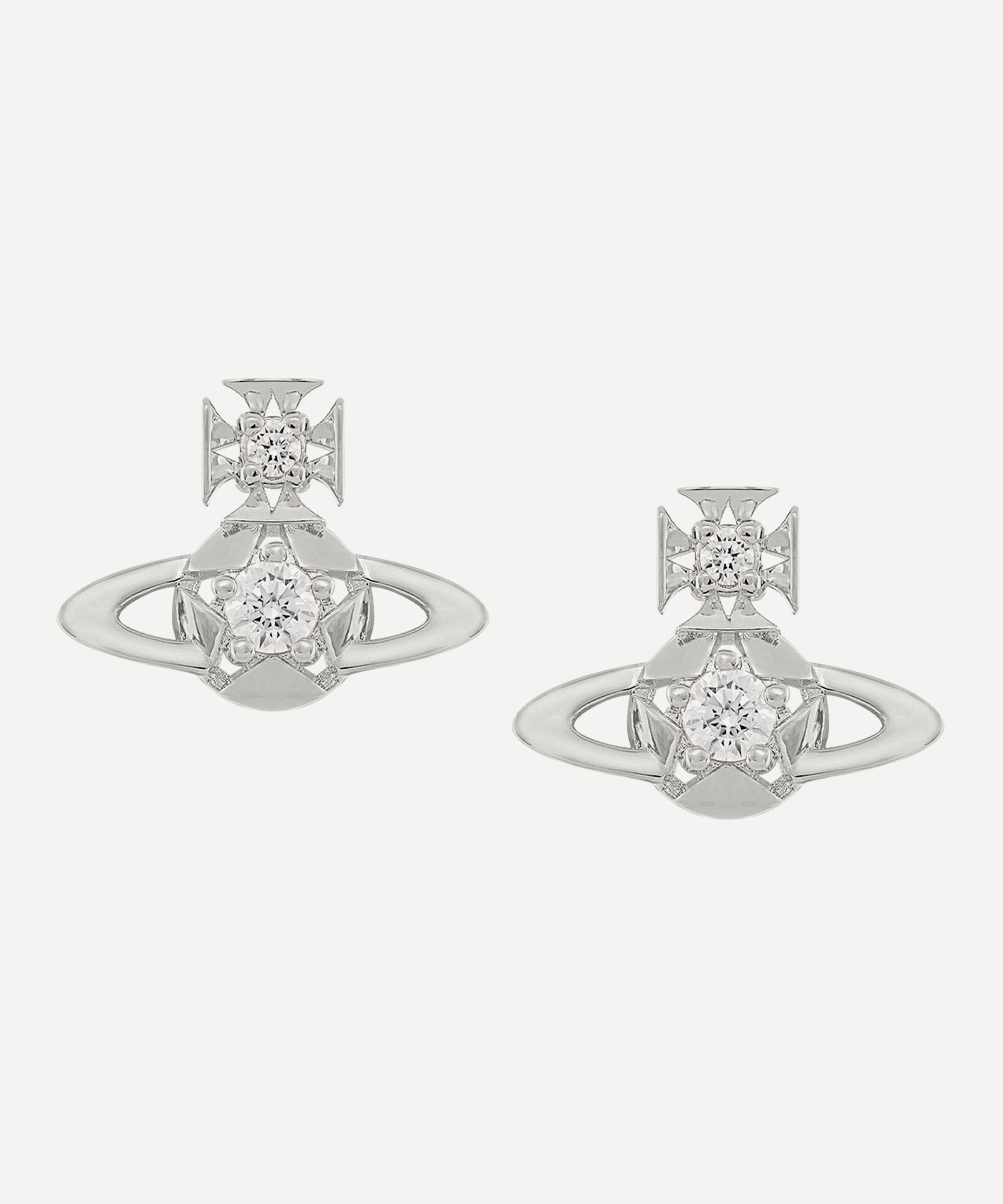 Channelling the brand’s rebellious spirit and individuality, each earring is crafted from platinum-tone brass, featuring the house’s iconic cross-topped orb and saturn ring design, set with cubic zirconia. Wear these statement-making earrings on their own, incorporate them into a stack, or pair with matching pieces from the brand for a co-ordinating look.