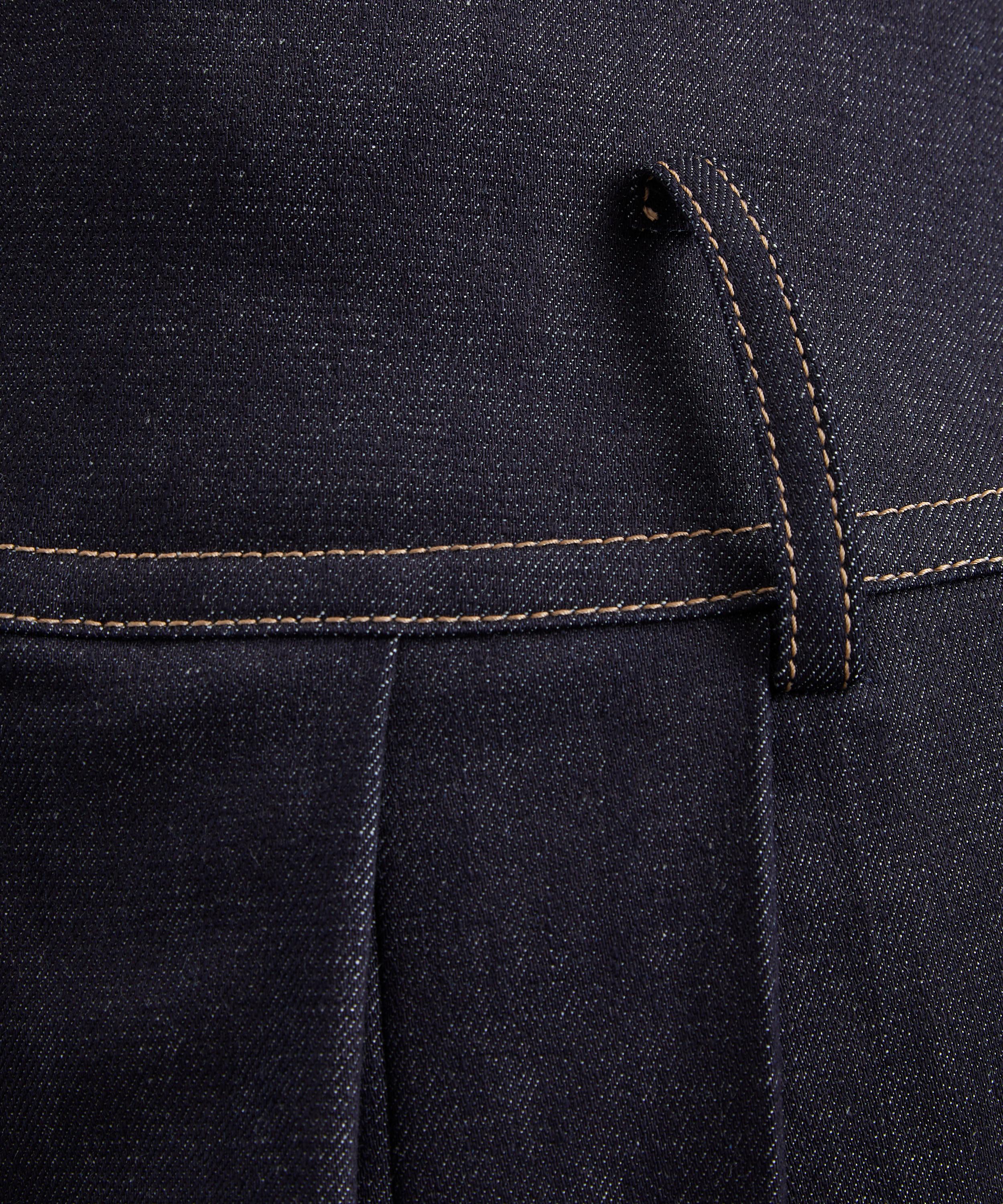Crafted from indigo denim, this maxi skirt makes a statement with its A-line shape, dropped waist, and wide pleats that amplify its volume. Style it with the matching Denim Panelled Contour Bustier Blouse for an elevated double-denim ensemble.