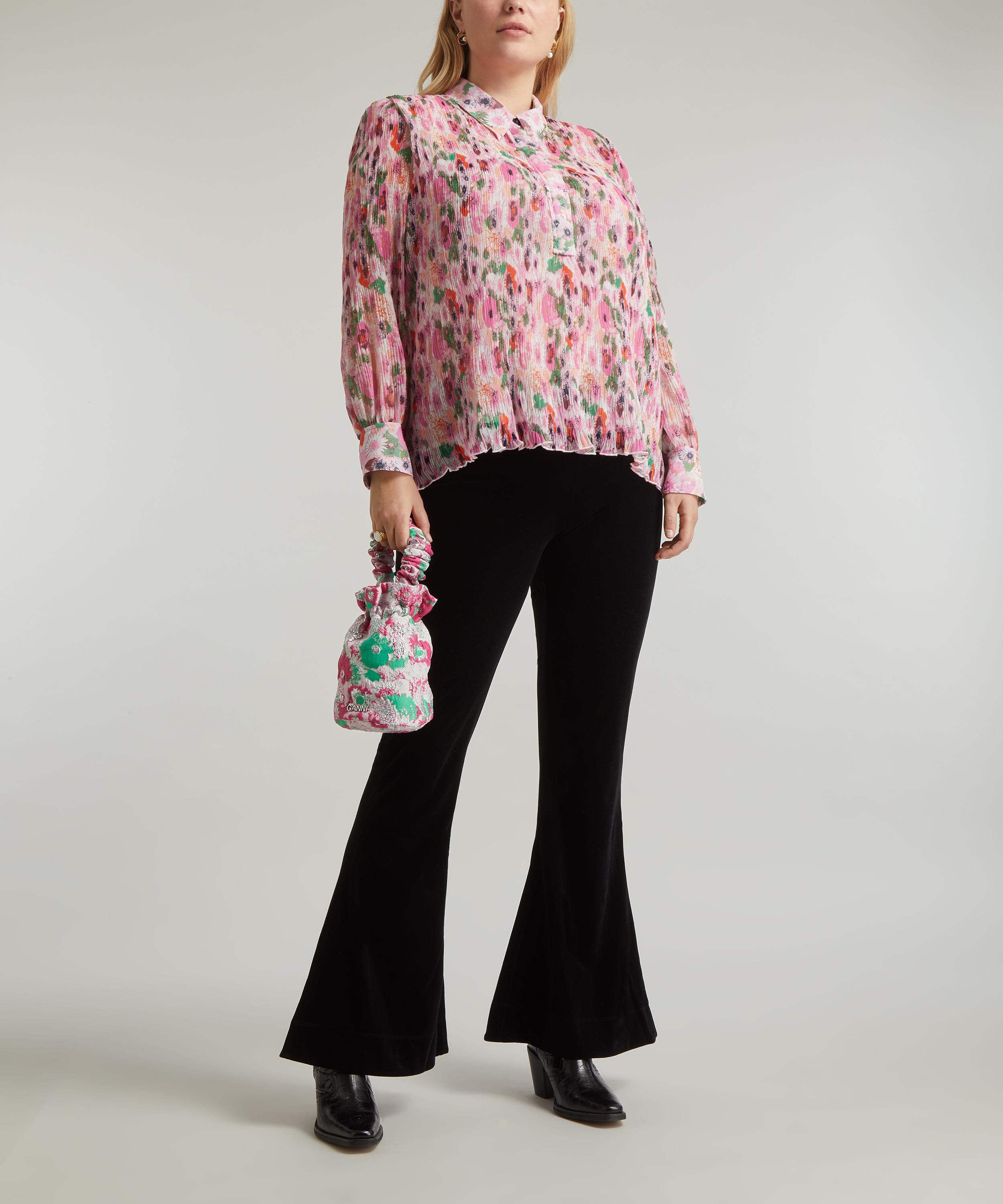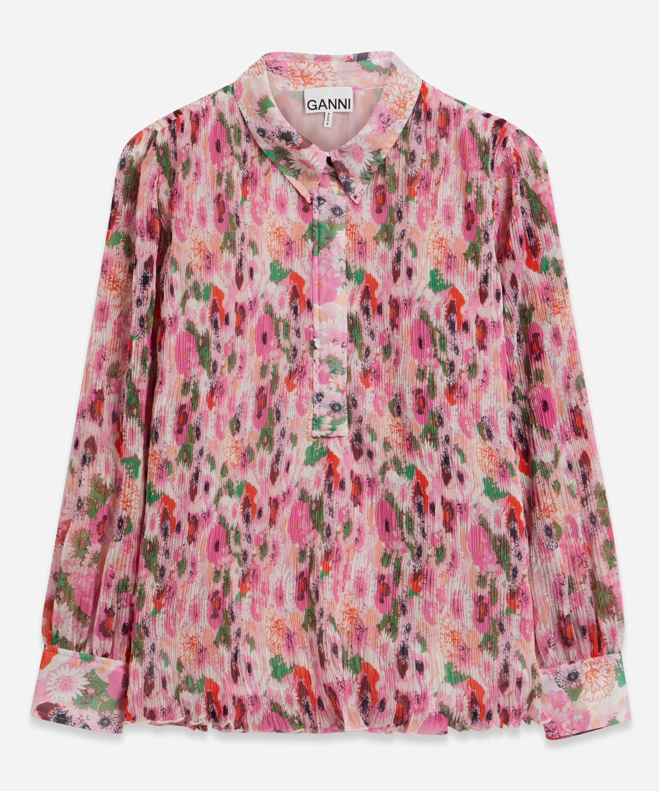 Effortlessly twee with its pink floral pattern, this pleated georgette blouse from GANNI exudes elegance. Crafted from 100% certified recycled polyester, this crinkle-pleated shirt is cut to a relaxed fit with classic tailored accents, including a point collar, concealed half-placket and buttoned spread cuffs.
