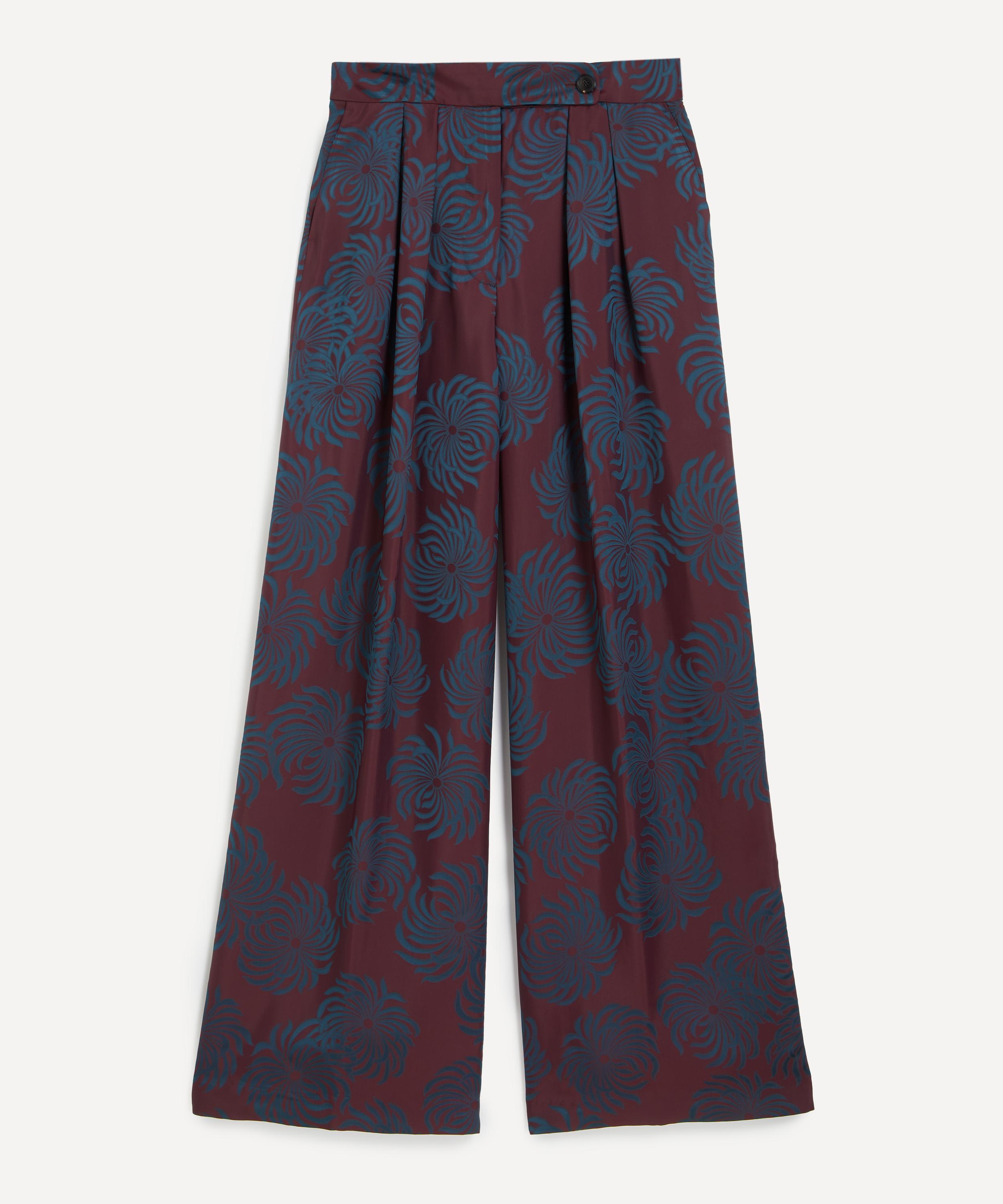 The Pleated Jacquard Satin Wide-Leg Trousers from Dries Van Noten exemplify the Belgian label’s avant-garde approach to contemporary fashion.