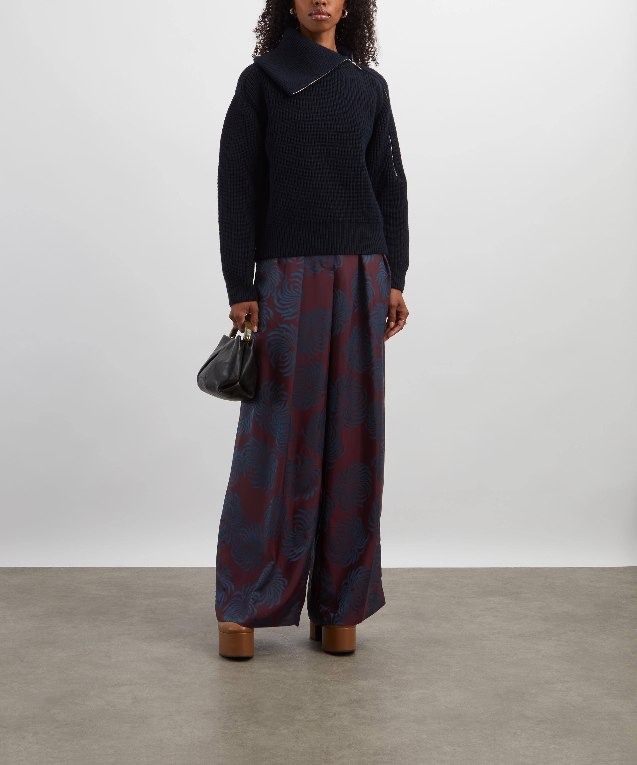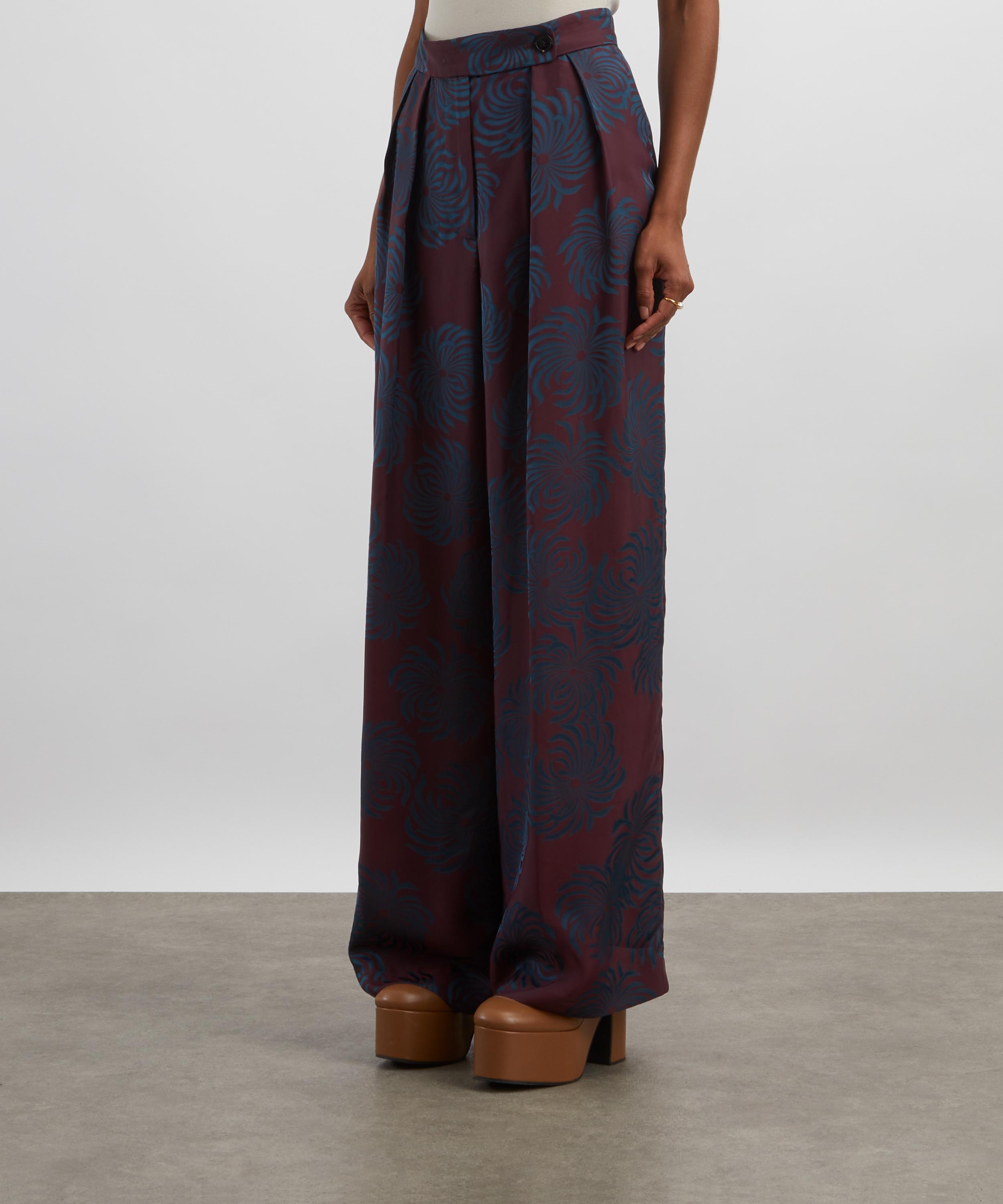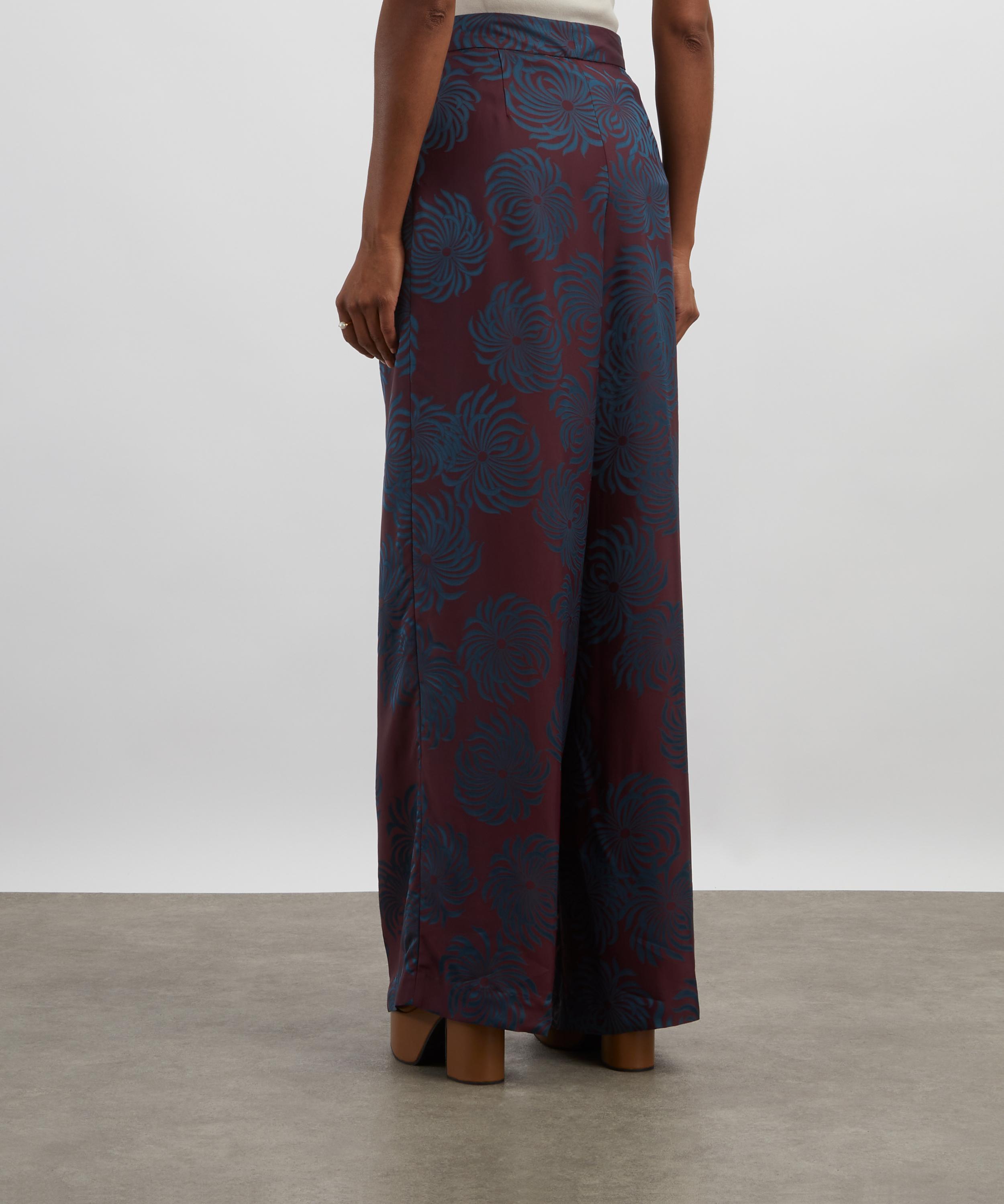Crafted from lustrous satin-jacquard patterned with a striking two-tone floral design, these high-waisted trousers fall into a wide-leg silhouette, with tailored pleats that accentuate their graceful, elongated lines.