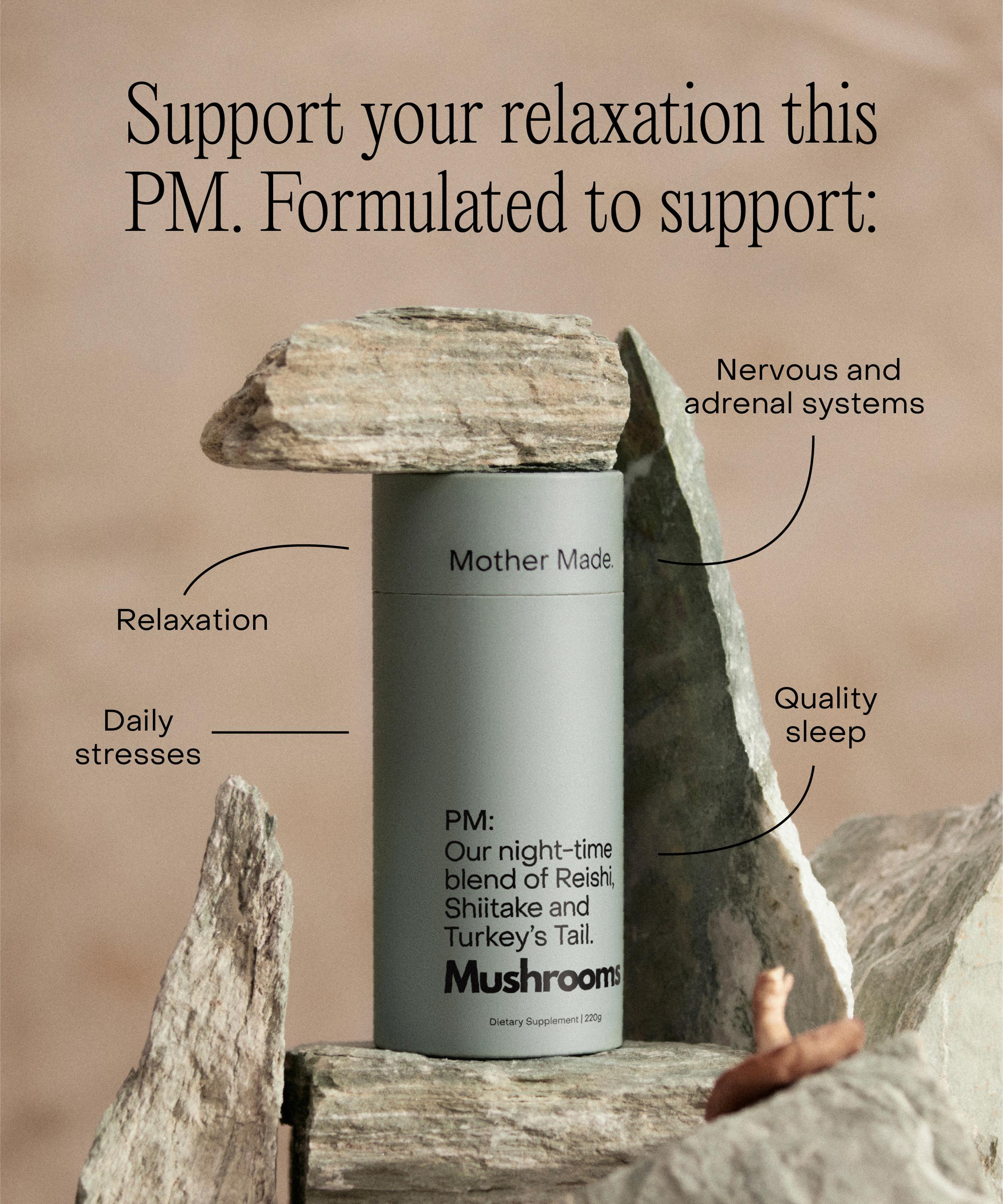The PM Blend from Mother Made is a powerhouse daily supplement that combines the benefits of three superfoods to support replenishment and regeneration.