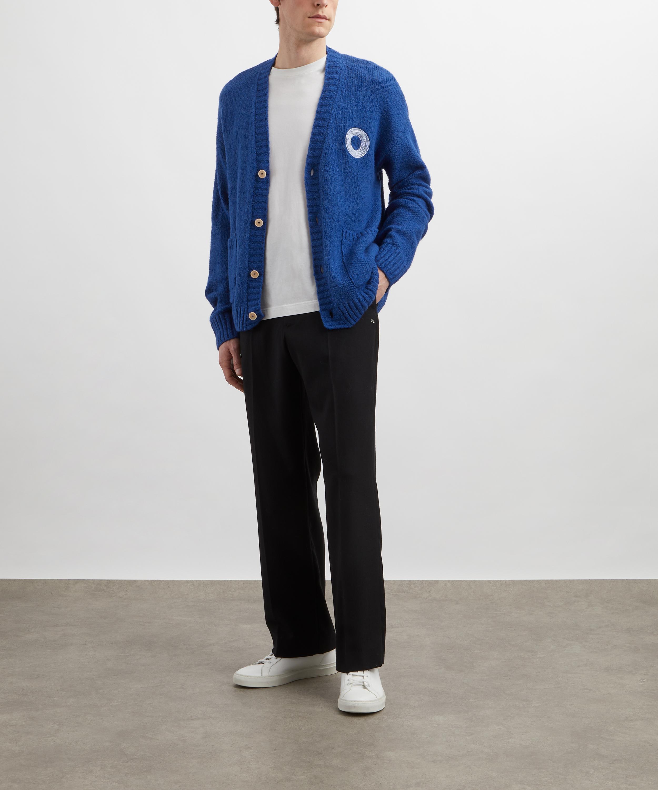 Folk collaborates with printmaker and illustrator Kate Gibb to create this Pocket cardigan. It’s knitted from soft cotton yarns with elements of alpaca – capturing the label’s focus on quality materials. It’s finessed with an embroidered chest motif designed by Kate Gibb, then framed with chunky ribbed trims. It’s ideal for pairing with Folk’s range of classic shirting and workwear-inspired trousers.