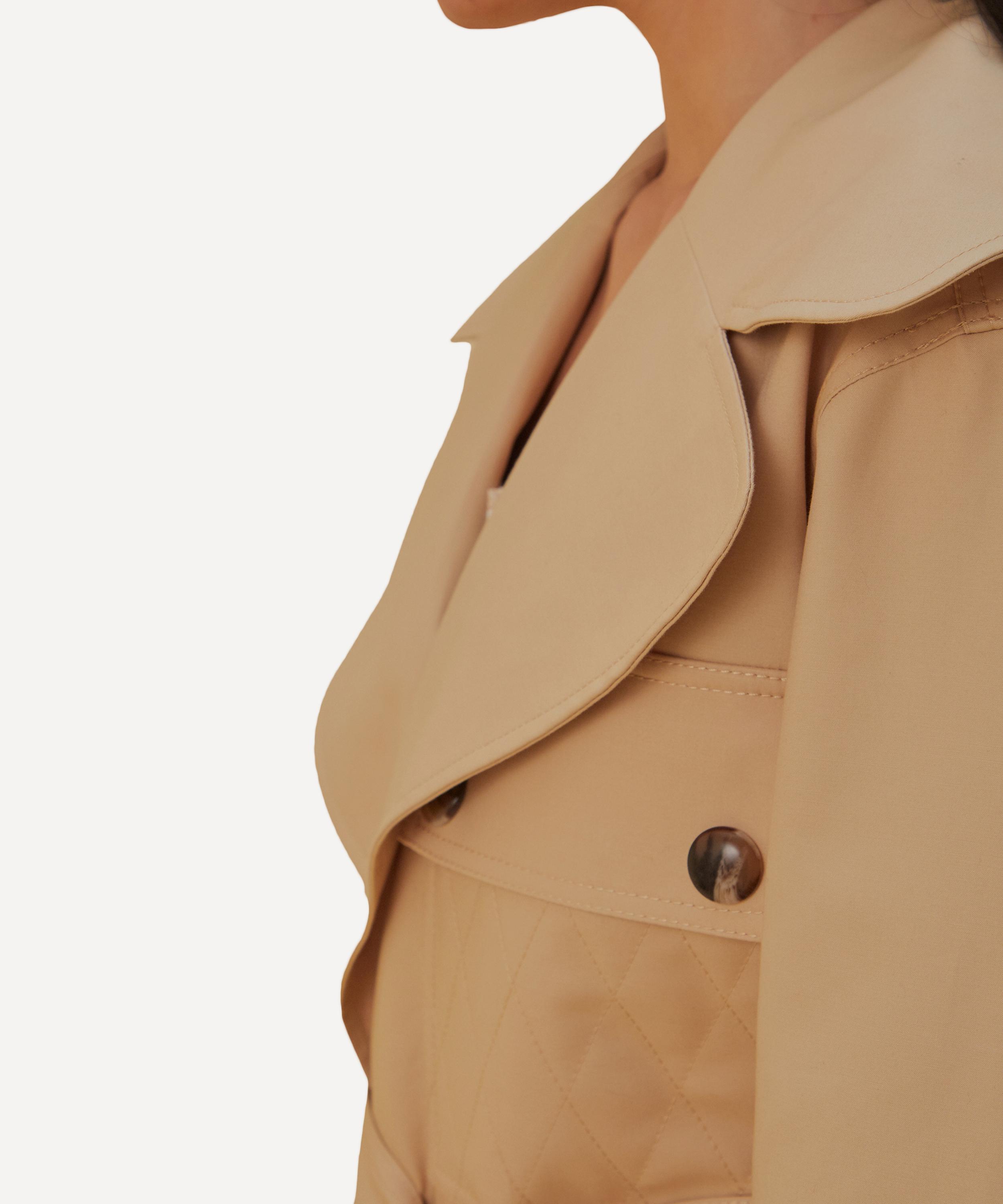 Chic yet functional, this elevated take on the classic trench coat brings an extra touch of sophistication to your look with its oversized collar. Secured at the waist with a self-tie belt, it has four quilted flap pockets, and a centre-front closure complete with resin buttons.