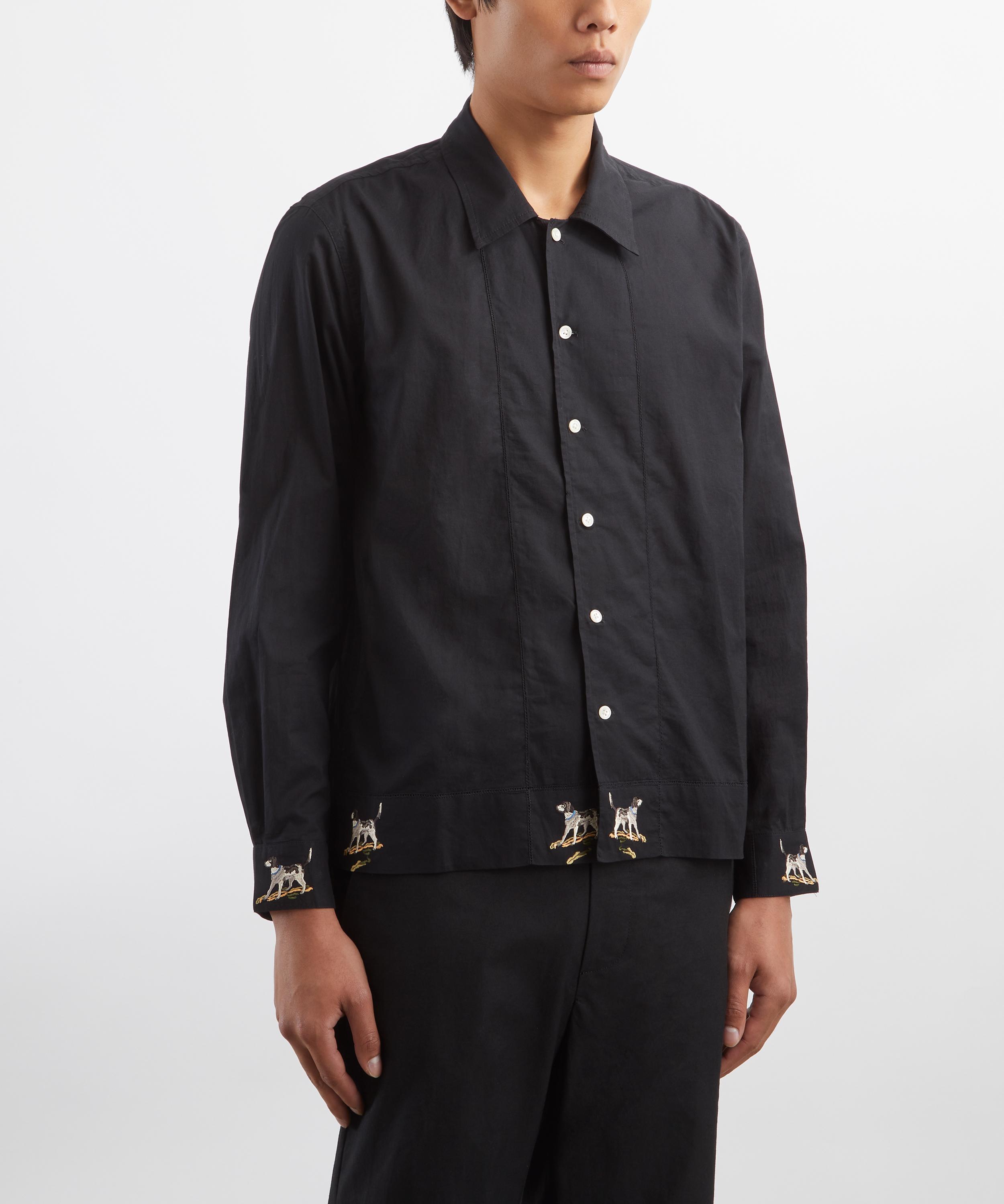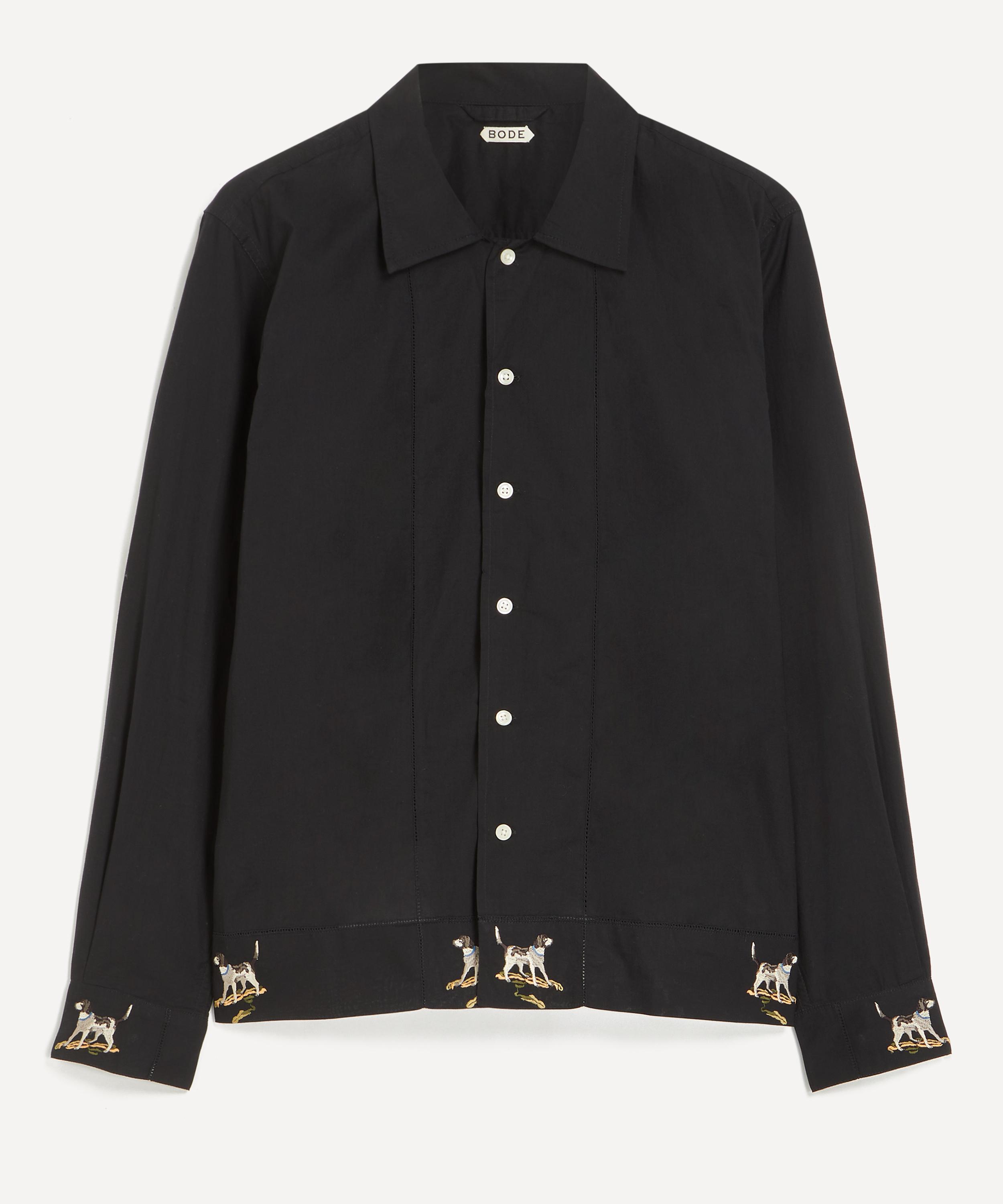 Crafted from cotton, this shirt is embroidered with a silk-stitched dog motif inspired by a turn-of-the-century bandana, adding a playful, refined touch.