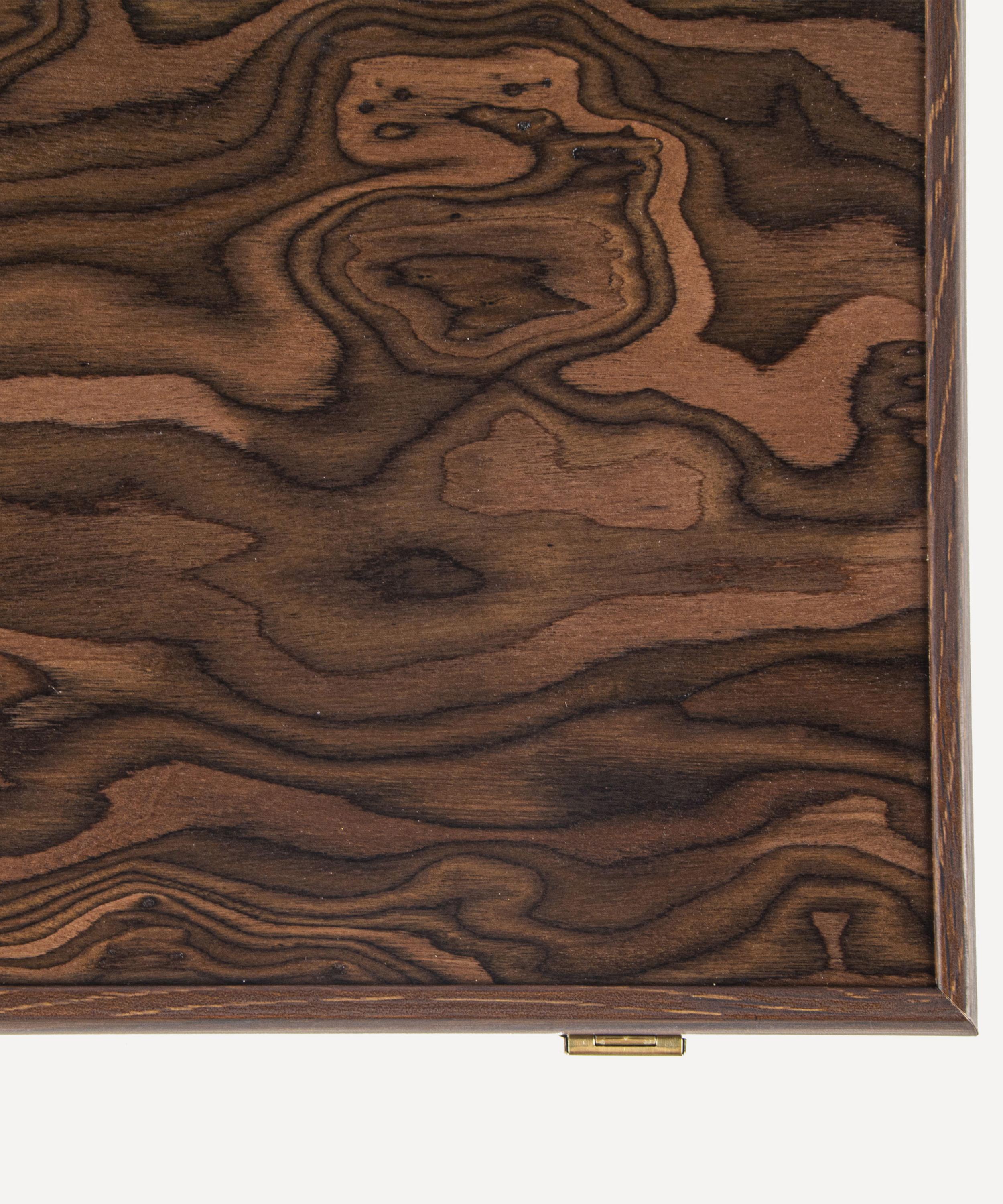 Each element of this set is meticulously handcrafted, with a dark walnut wooden case with Californian burl veneer and a rich velvet interior, housing all the accoutrements needed for a game. Effortlessly elegant as a stylistic object or the perfect addition to a well-stocked games room, this luxury box is set to impress.About Manopoulos
