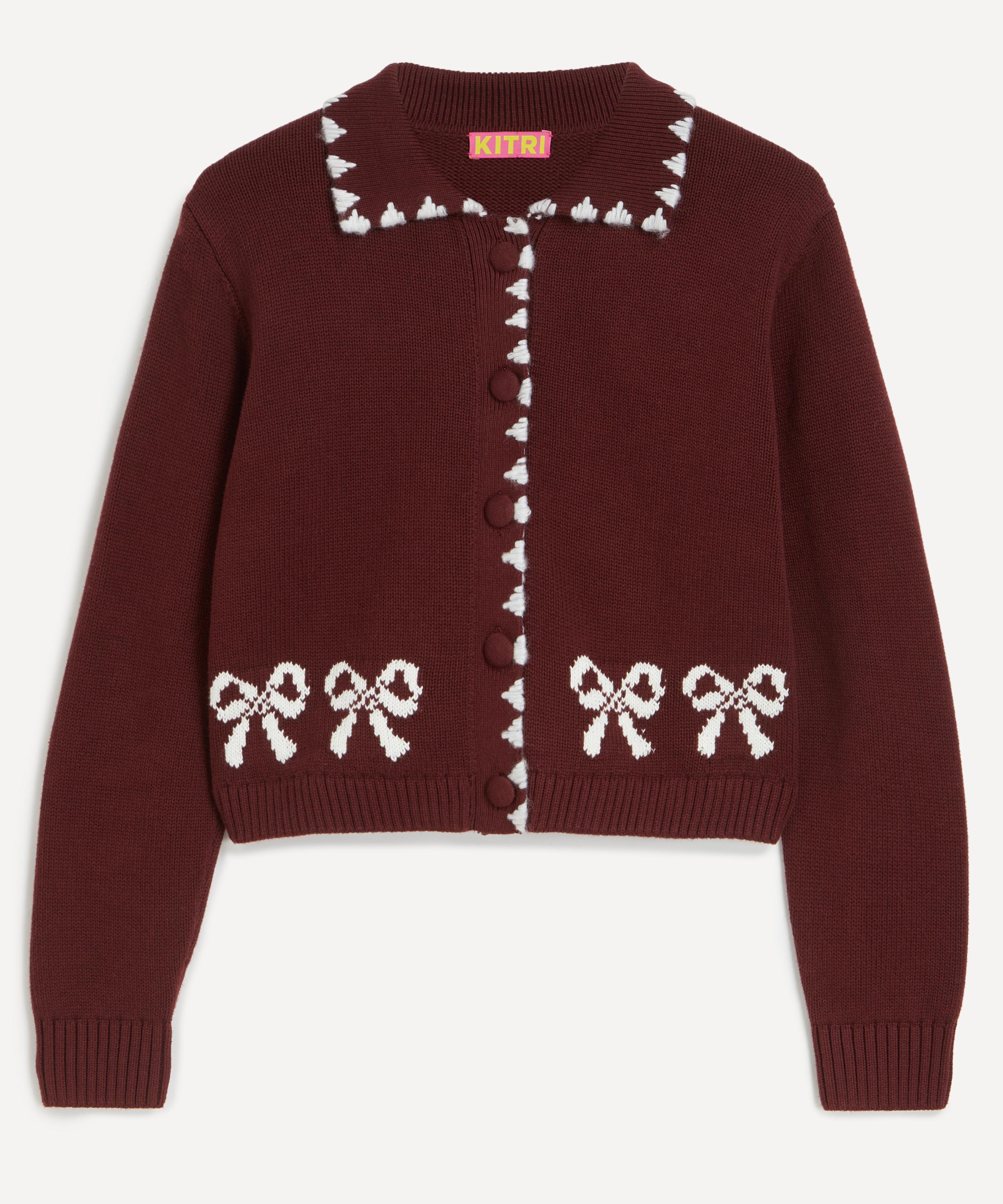 Keeping it cosy and chic, the Polly Oxblood Bow Knit Cardigan showcases KITRI’s signature flair for vibrant prints and playful colour combinations.