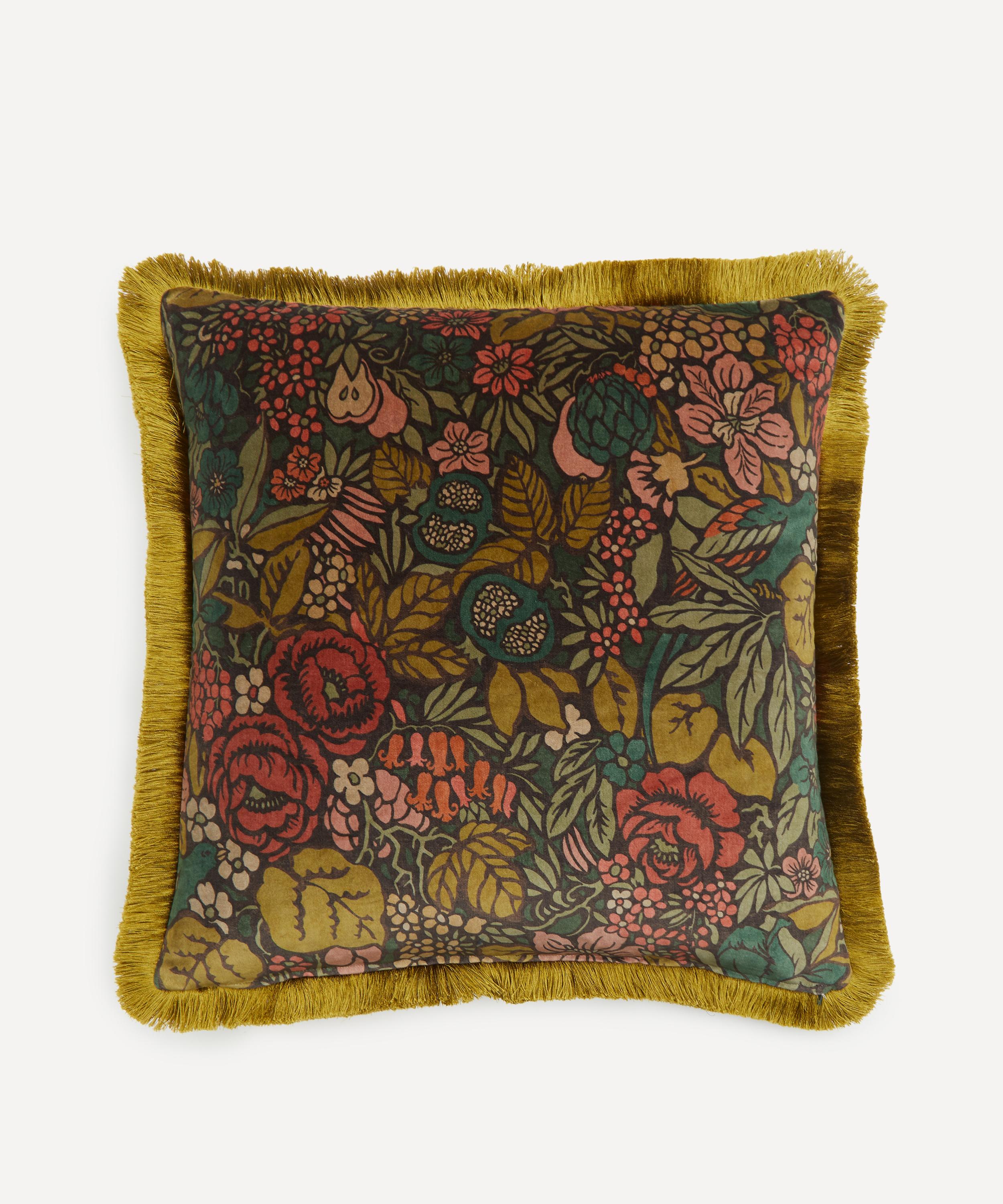 Liberty’s Pomegranate Garden square cushion is a versatile interiors staple, crafted in England and featuring a print from The House of Liberty collection.