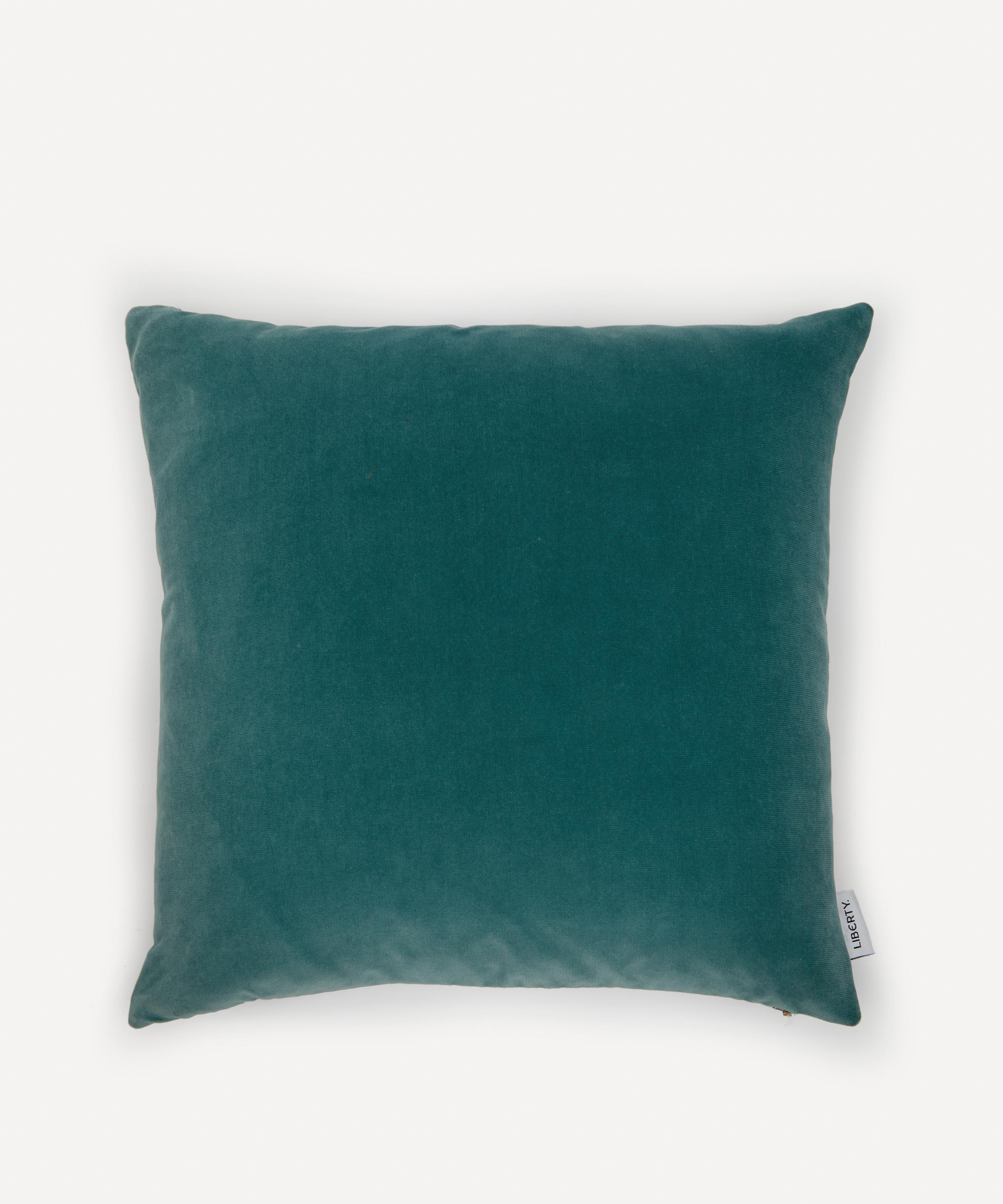 Liberty’s square reversible cushion is crafted in England from Landsdowne linen with a plump duck feather filling, its lustrous design woven by experts in Italy.