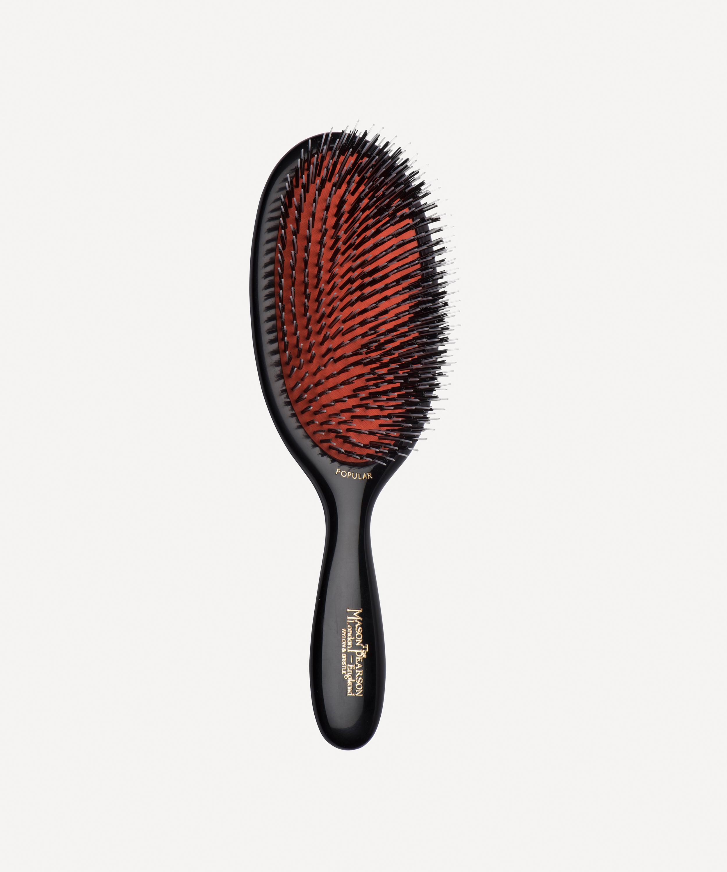 Mason Pearson's Popular BN1 hair brush features eight rings of boar bristle and nylon tufts set in a soft rubber cushion – a pneumatic design perfected over years by Mason Pearson and his family.