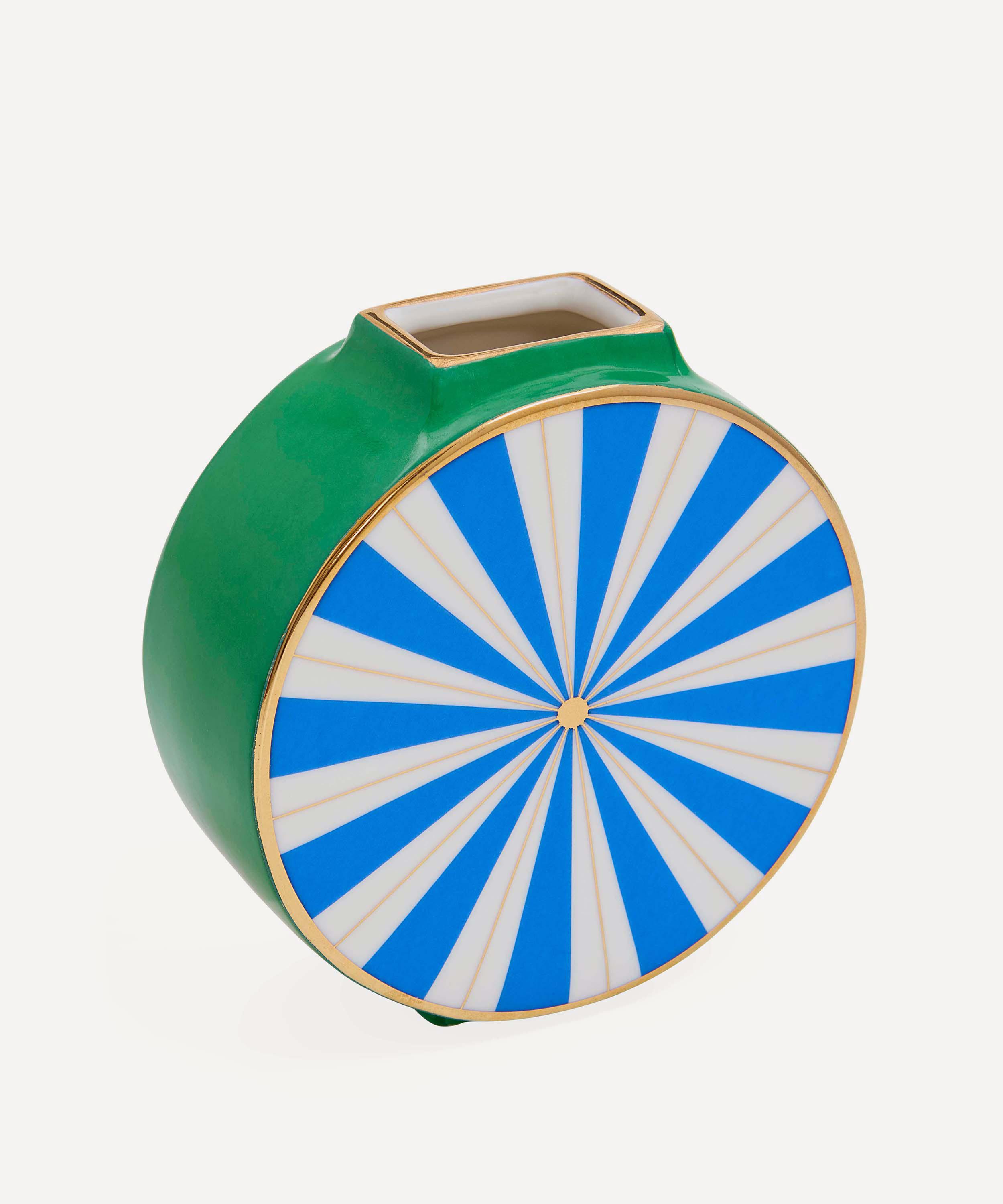 For stylish home interiors, this Portofino Circle vase from Jonathan Adler will elevate any simple table setting. Made from high-fired porcelain, and accented with sparkly gold, it features bright, candy-coloured stripes and a luxe glossy finish. Fill with fresh blooms to add a bright focal point to your hosting tablescape.