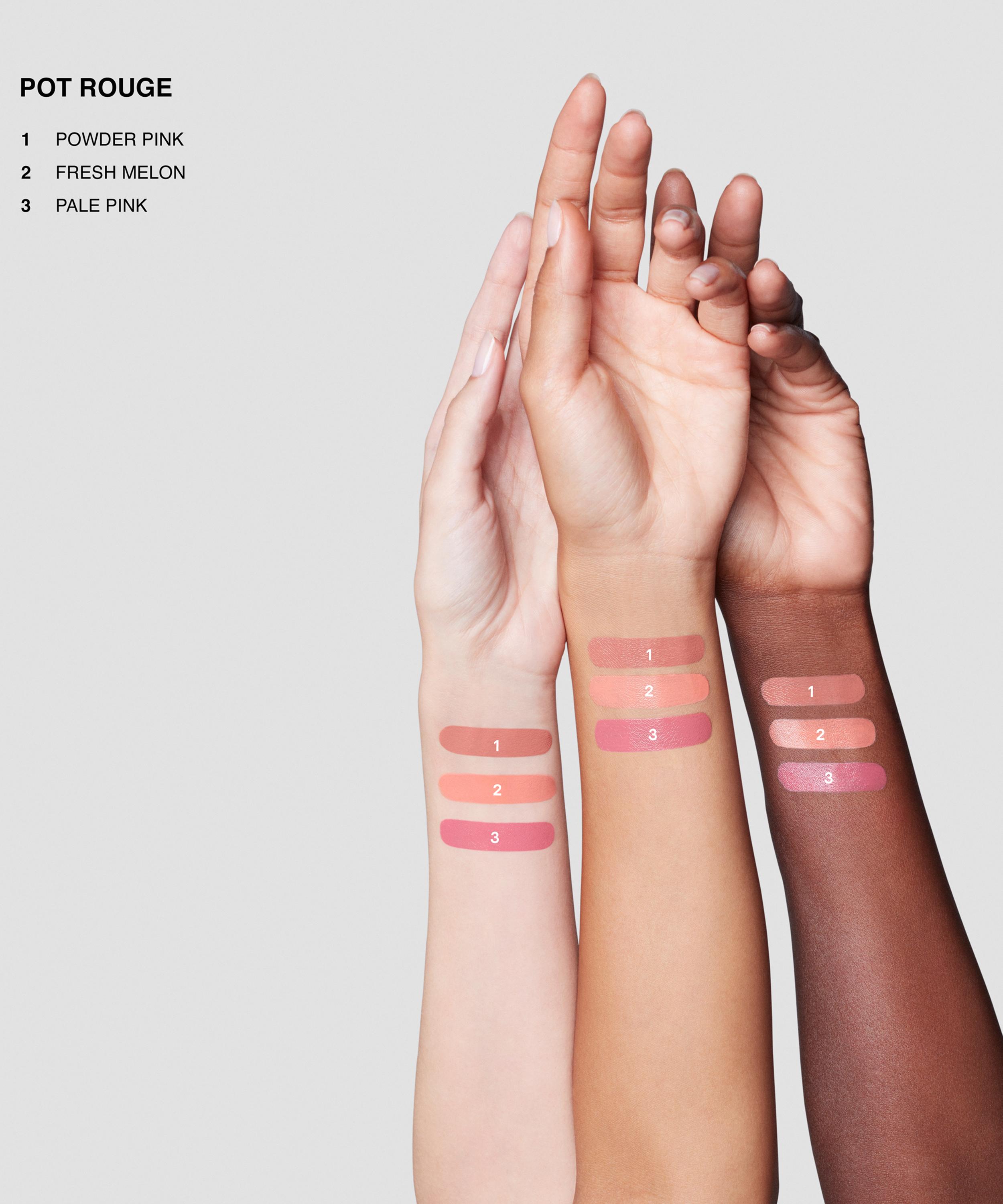 Use your fingers or a cream brush to blend the rouge into the apples of the cheeks, and apply to lips using your fingertips. For drier skin types, moisturise before application to ensure even colour coverage.