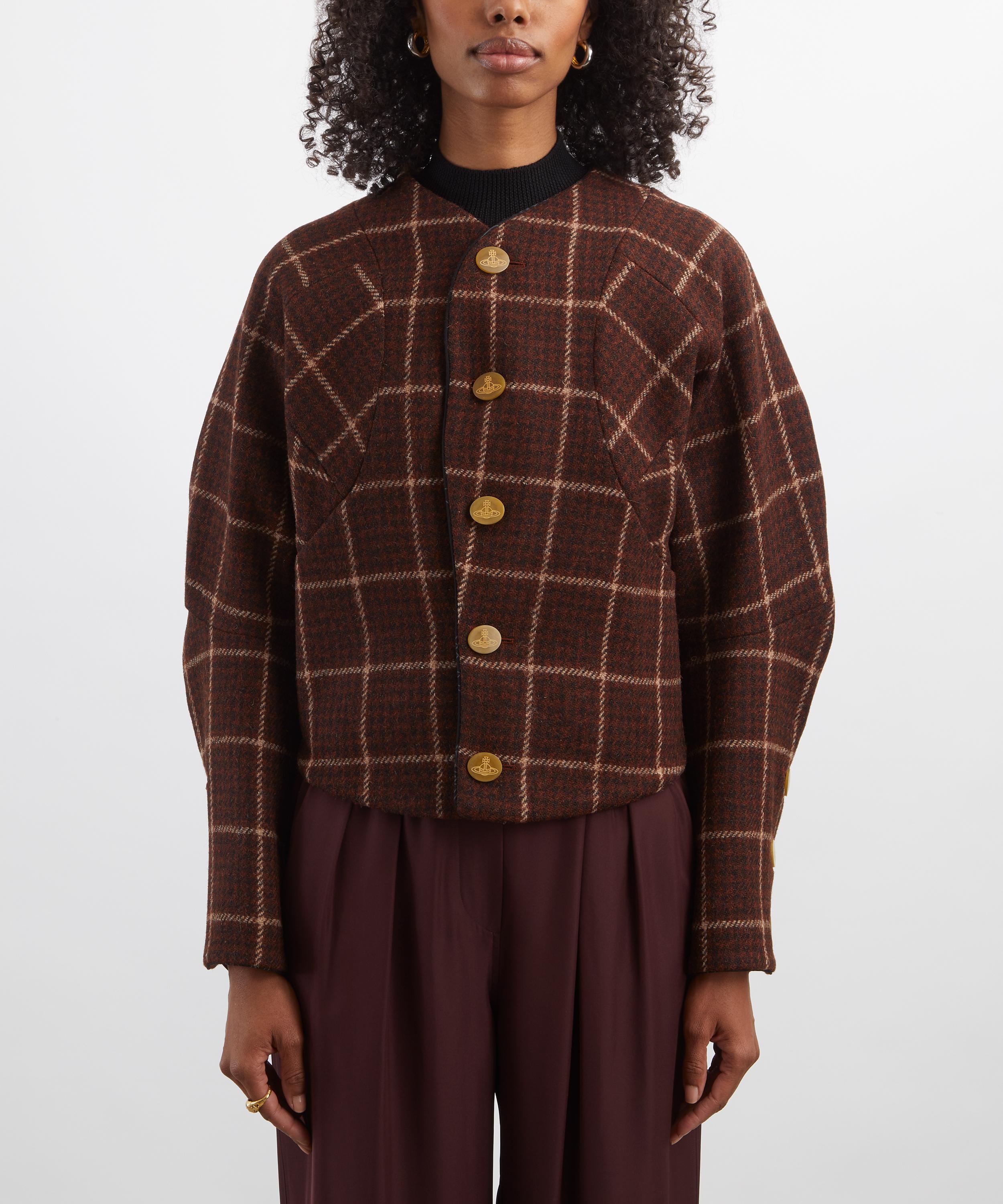 Made from Harris Tweed wool tartan, the Pourpoint Jacket updates 14th-century armour with a modern, collarless silhouette, dropped shoulders, side pockets, and an orb-engraved button for a signature finish.