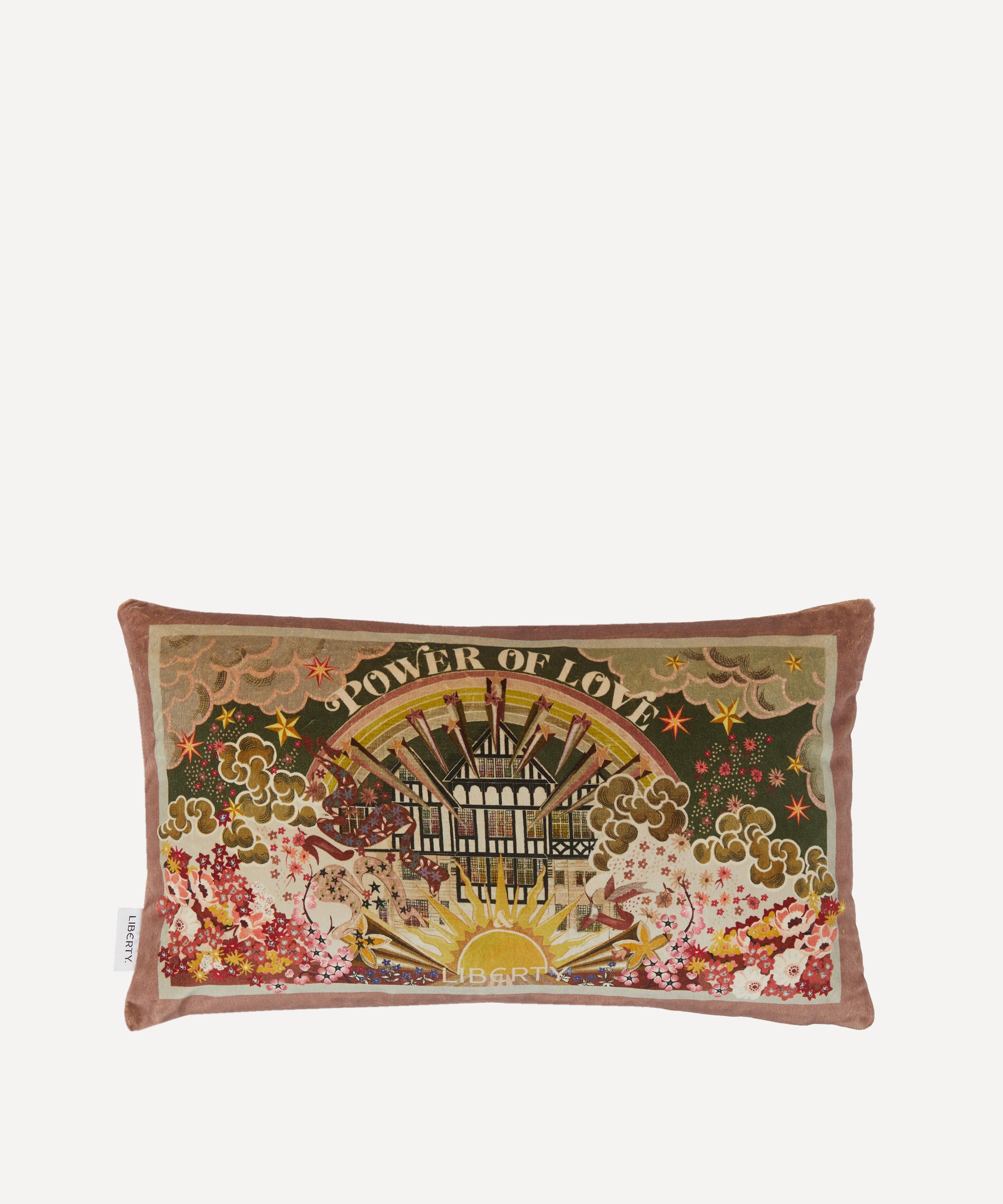 It’s expertly crafted from plush velvet and features our Power of Love design – an artwork originally created by Liberty designers during lockdown as an artistic response to the hope and love felt within our community. Filled with duck feathers for maximum comfort and softness, it brings a note of natural-world joy to your sofa, armchair or daybed.