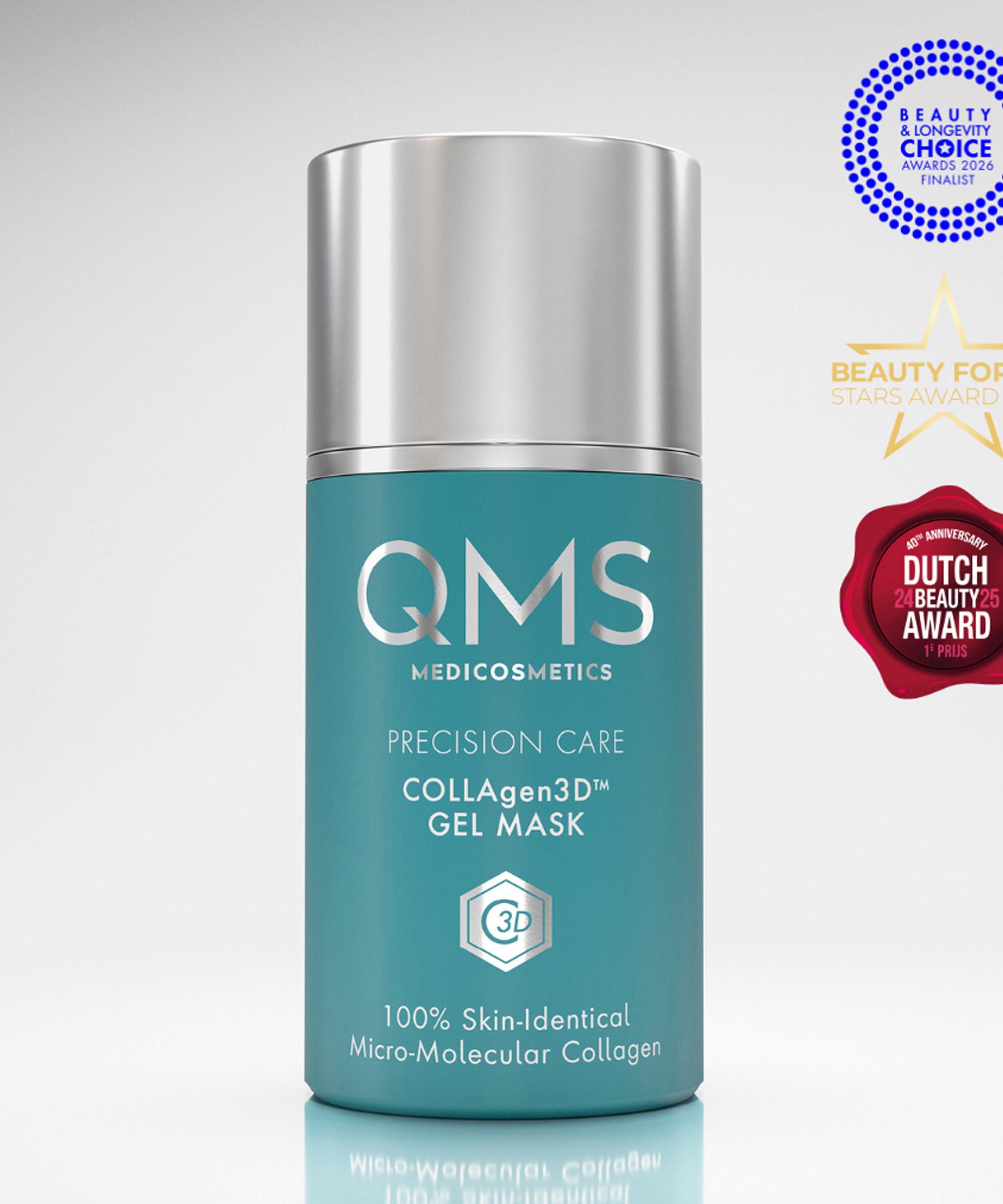 Part of the brand's PRECISION CARE range, COLLAgen3D Gel Mask from QMS Medicosmetics is a cooling face mask infused with the world's first anti-ageing technology, featuring 100% skin-identical, micromolecular collagen.