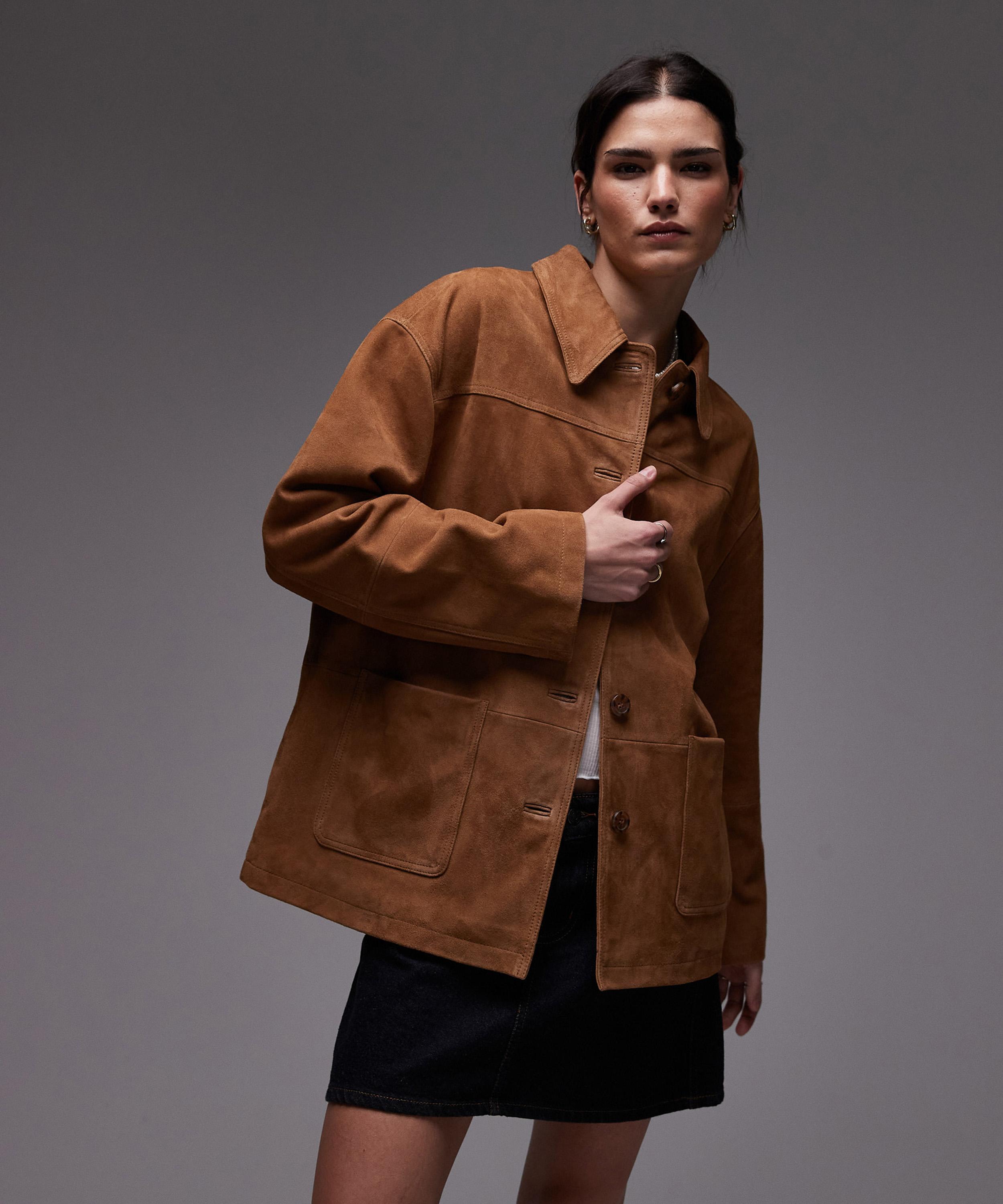 A timeless addition to your outerwear edit, the Premium Real Suede Patch Pocket Boxy Jacket is part of TOPSHOP's highly anticipated relaunch at Liberty.