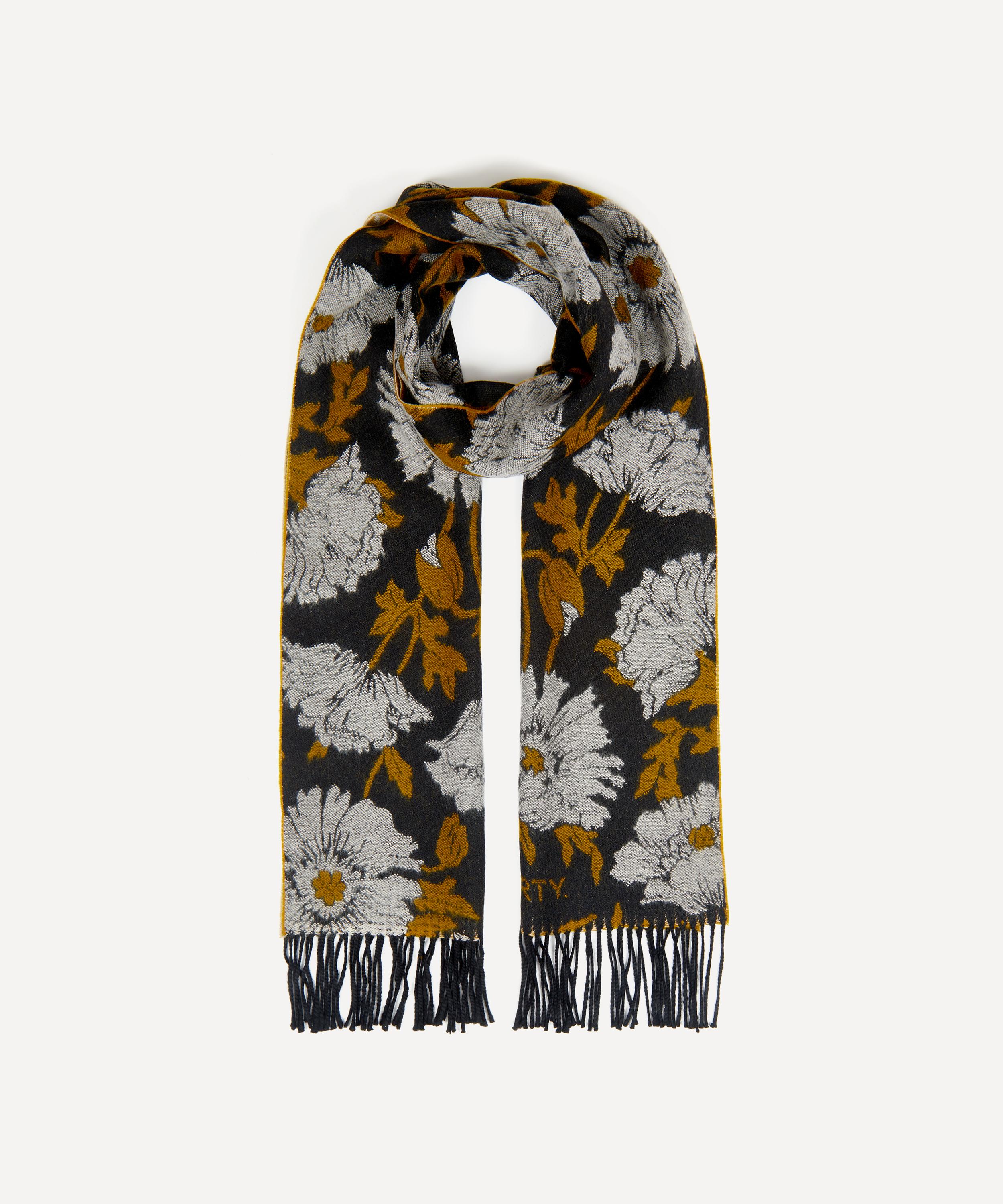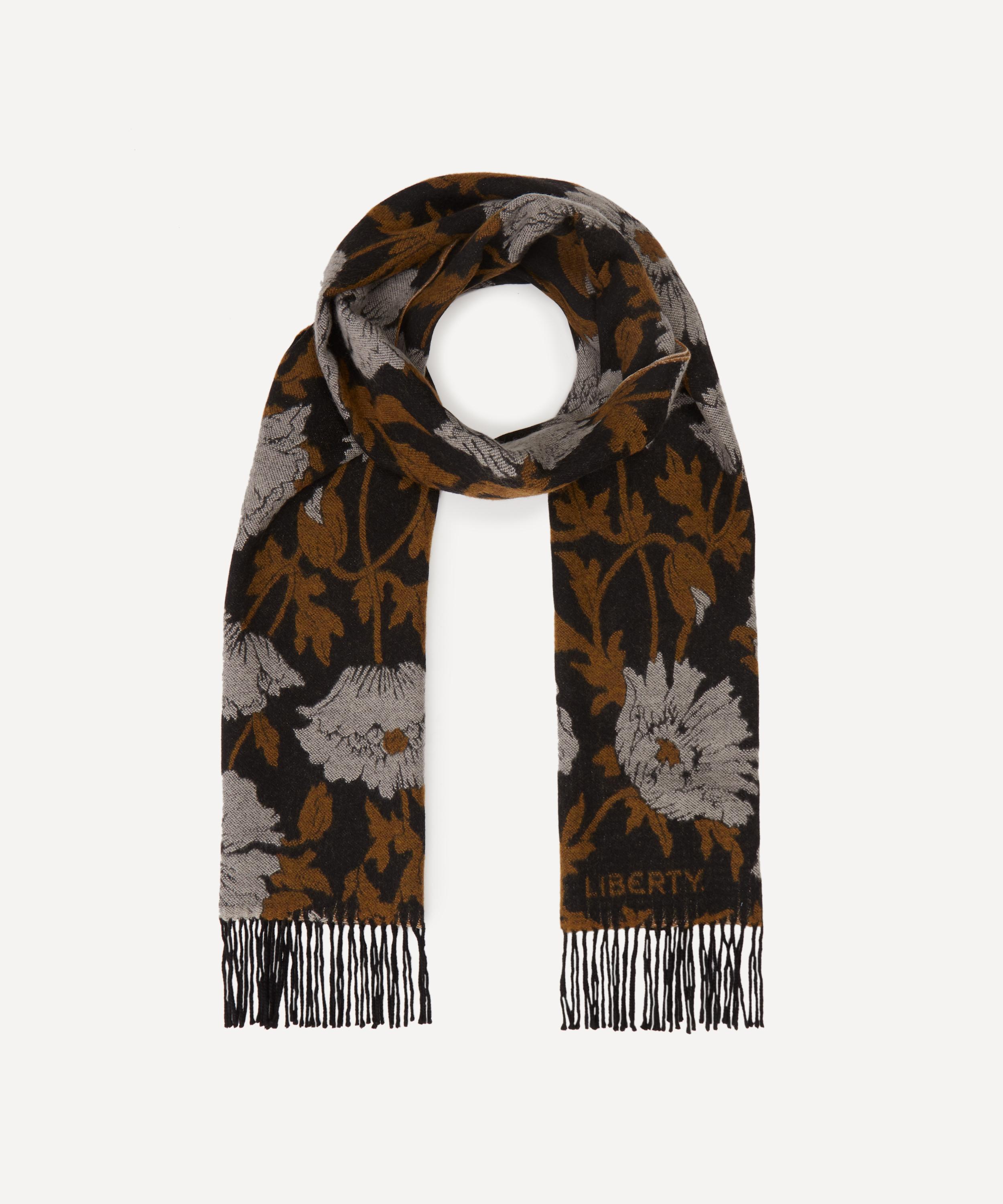 This wool scarf features our Prickly Poppy print – woven in a three-colour jacquard style. Knot it around your neck or drape it around your shoulders, a Liberty scarf is a heroine of versatile styling. New for this season, this scarf is printed with a large scale floral pattern and a patchwork of colours across one design.