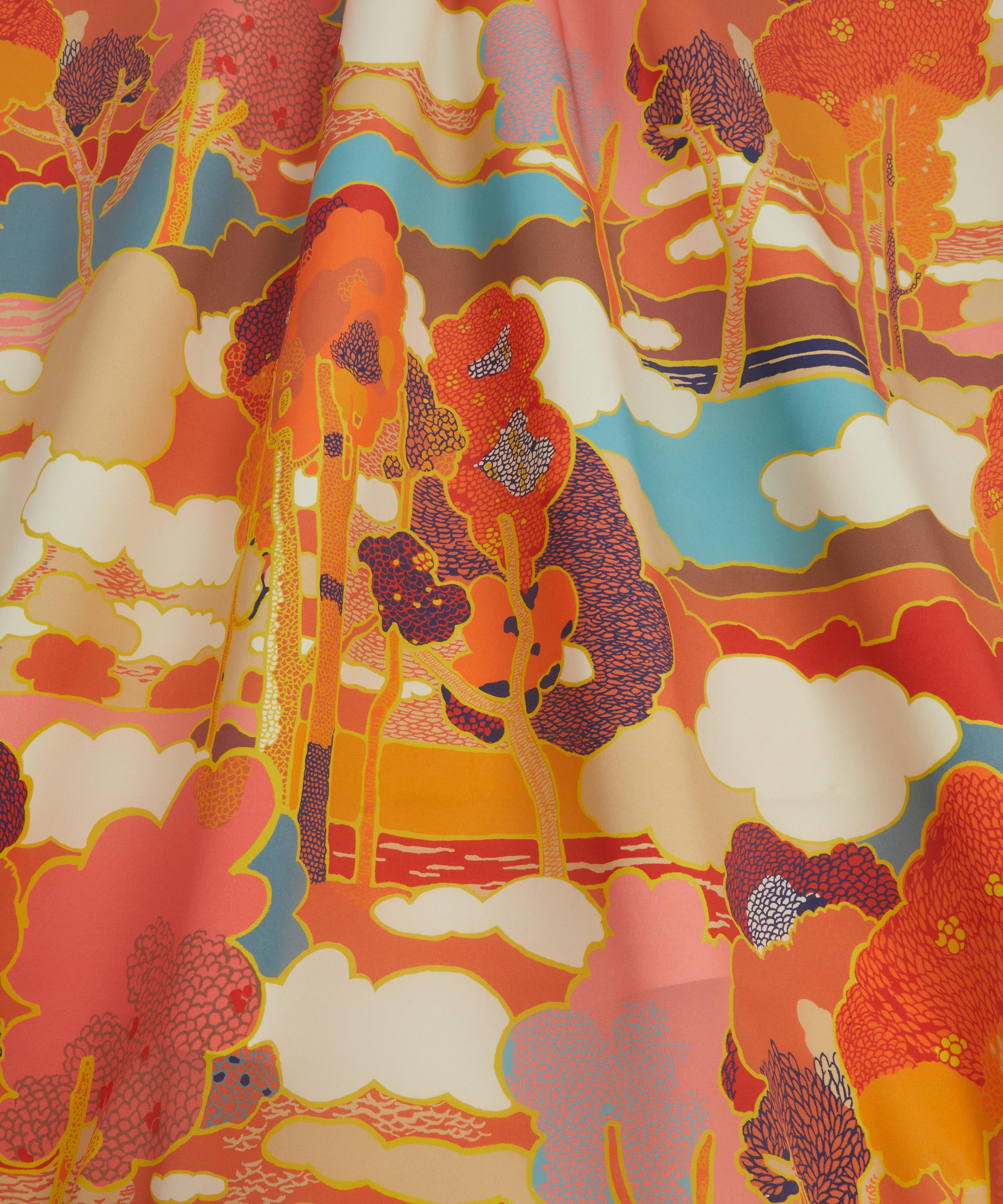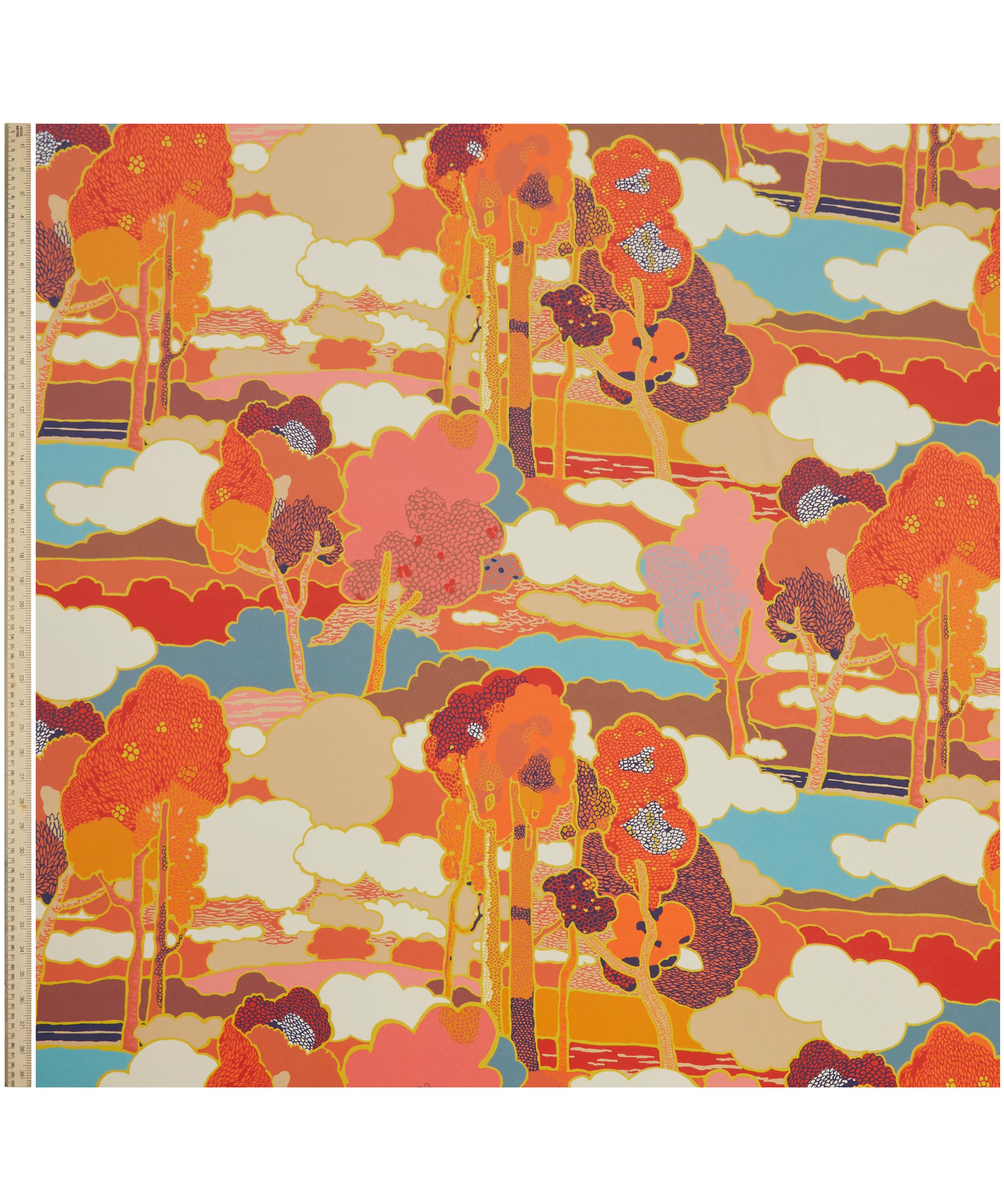 Reimagined as a large-scale version of Prospect Road, this brand-new pattern celebrates bold silhouettes and rich colour palettes. Originally created in 1968 by famed British designer - and then Liberty design director - Bernard Nevill, Prospect Place is a revival of traditional Art Nouveau style landscape prints that feature subtly arranged clusters of trees in a dreamy, jewel-toned setting.