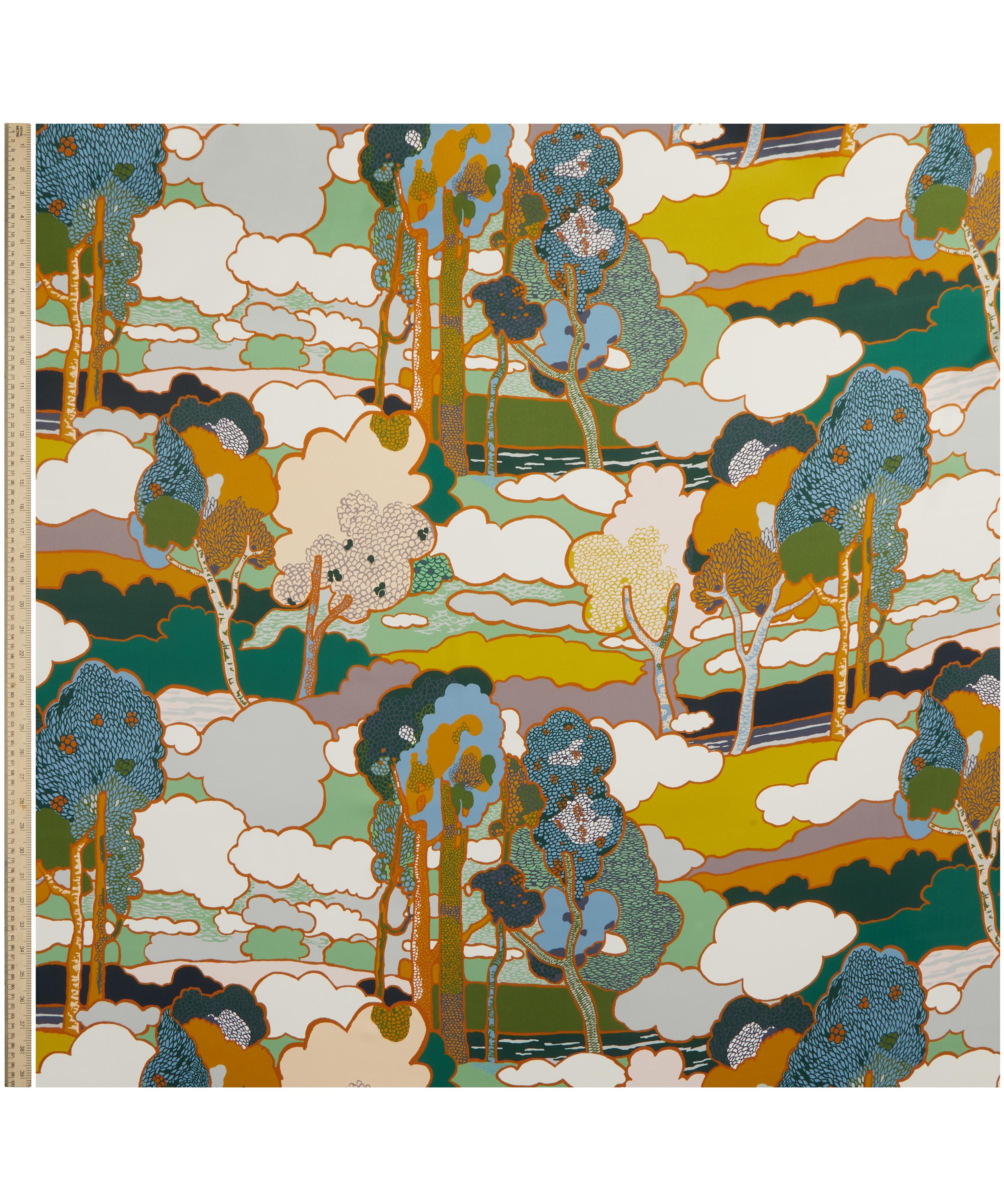 Reimagined as a large-scale version of Prospect Road, this brand-new pattern celebrates bold silhouettes and rich colour palettes. Originally created in 1968 by famed British designer - and then Liberty design director - Bernard Nevill, Prospect Place is a revival of traditional Art Nouveau style landscape prints that feature subtly arranged clusters of trees in a dreamy, jewel-toned setting.
