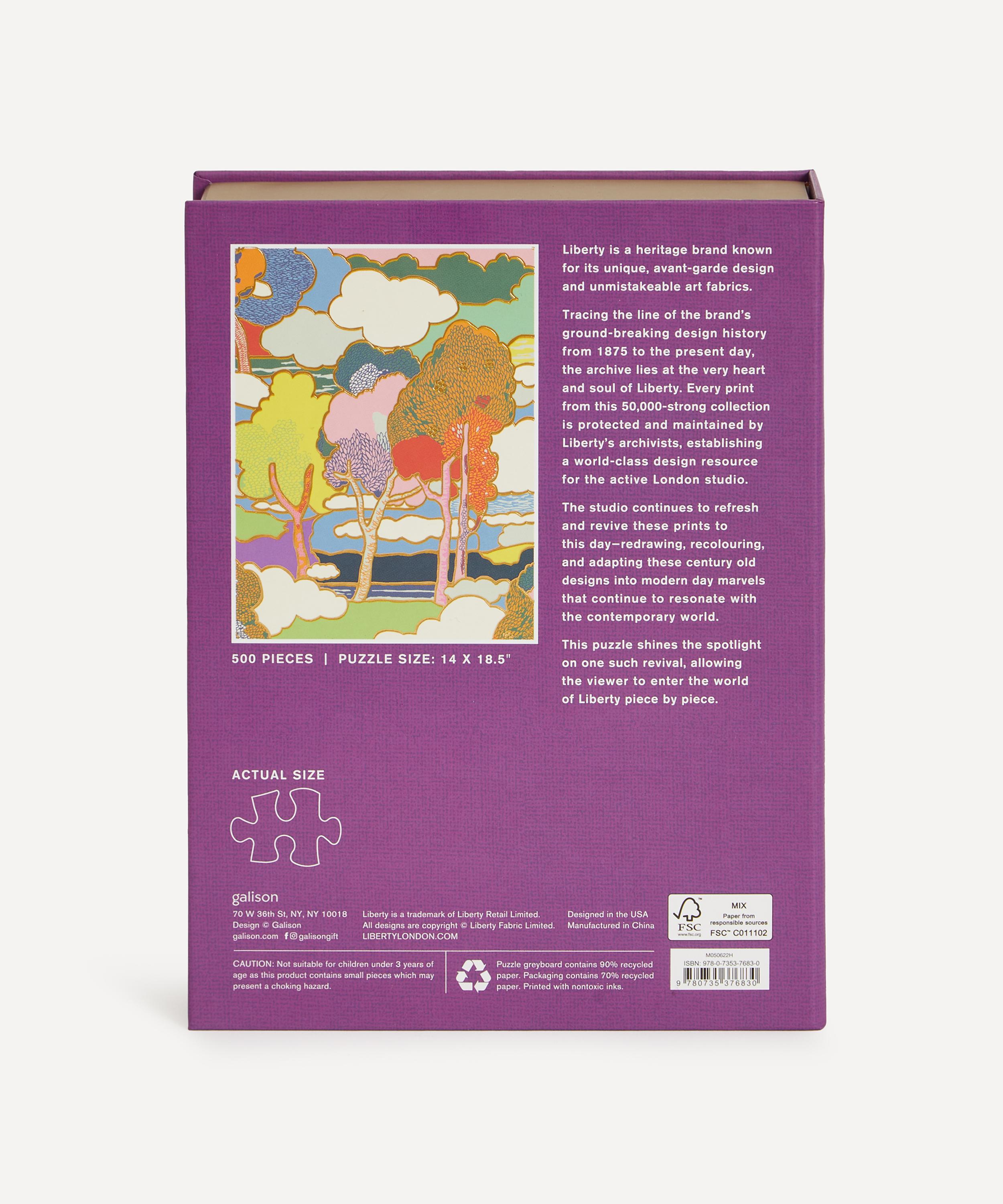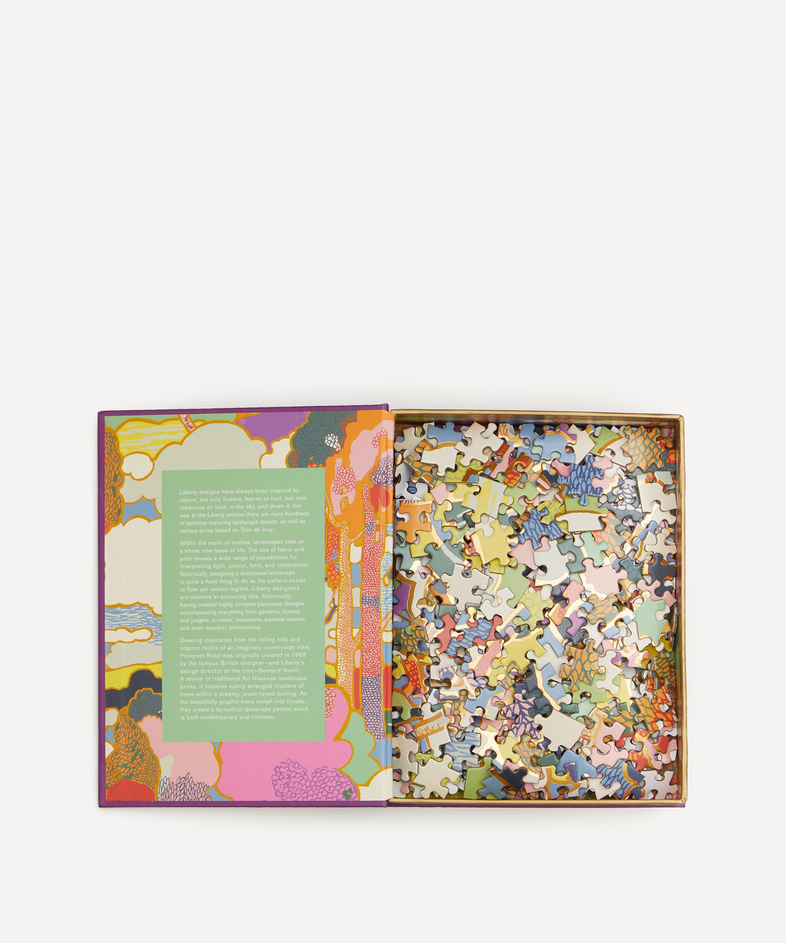 Liberty’s Prospect Road puzzle features 500 pieces, housed in a charming book-shaped box. This puzzle is printed with Prospect Road – an archival classic, based on a Liberty design from 1968. The artwork features a reimagined take on traditional Art Nouveau landscape prints with subtly arranged clusters of trees. Perfect for gifting family and friends, this puzzle offers an absorbing option to while away a quiet afternoon.
