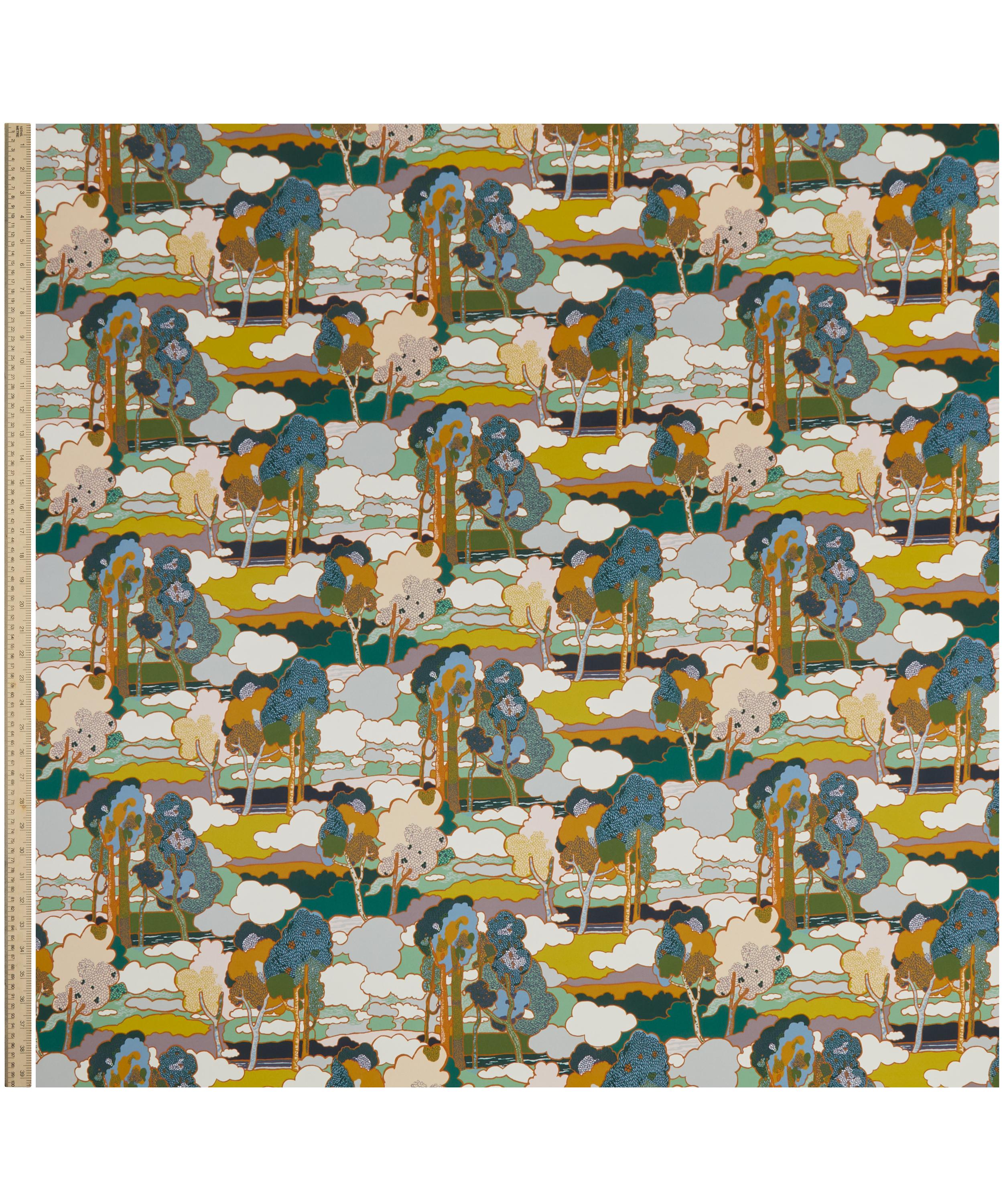Prospect Road is an archival classic, based on a Liberty design from 1968. A revival of traditional Art Nouveau landscape prints, it features subtly arranged clusters of trees in a dreamy, jewel-toned setting.