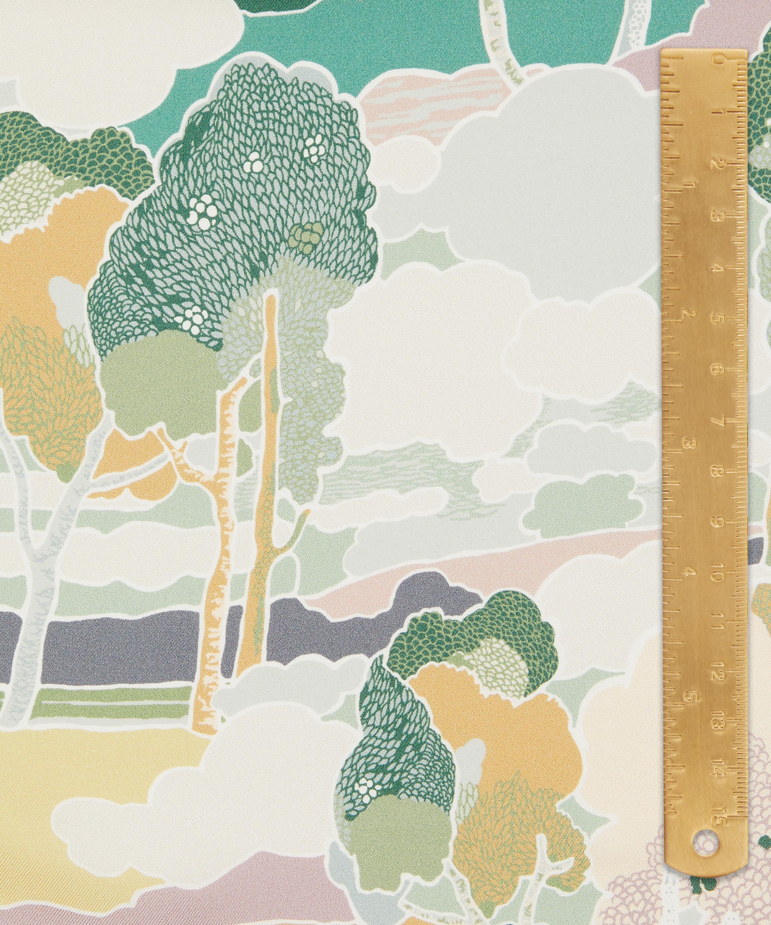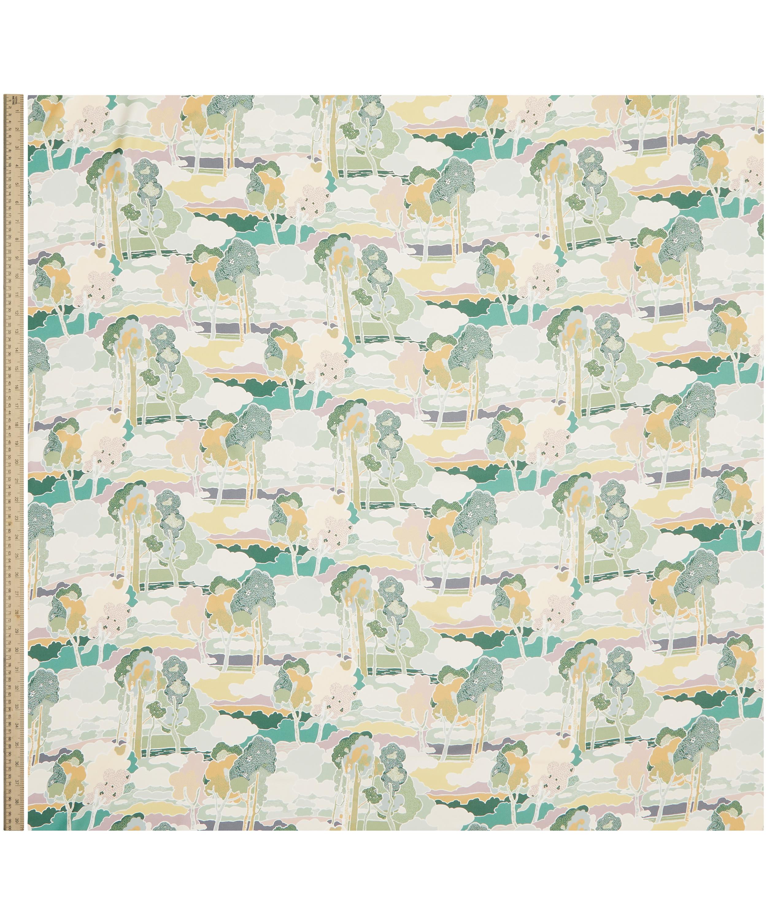 Prospect Road is an archival classic, based on a Liberty design from 1968. A revival of traditional Art Nouveau landscape prints, it features subtly arranged clusters of trees in a dreamy, jewel-toned setting.
