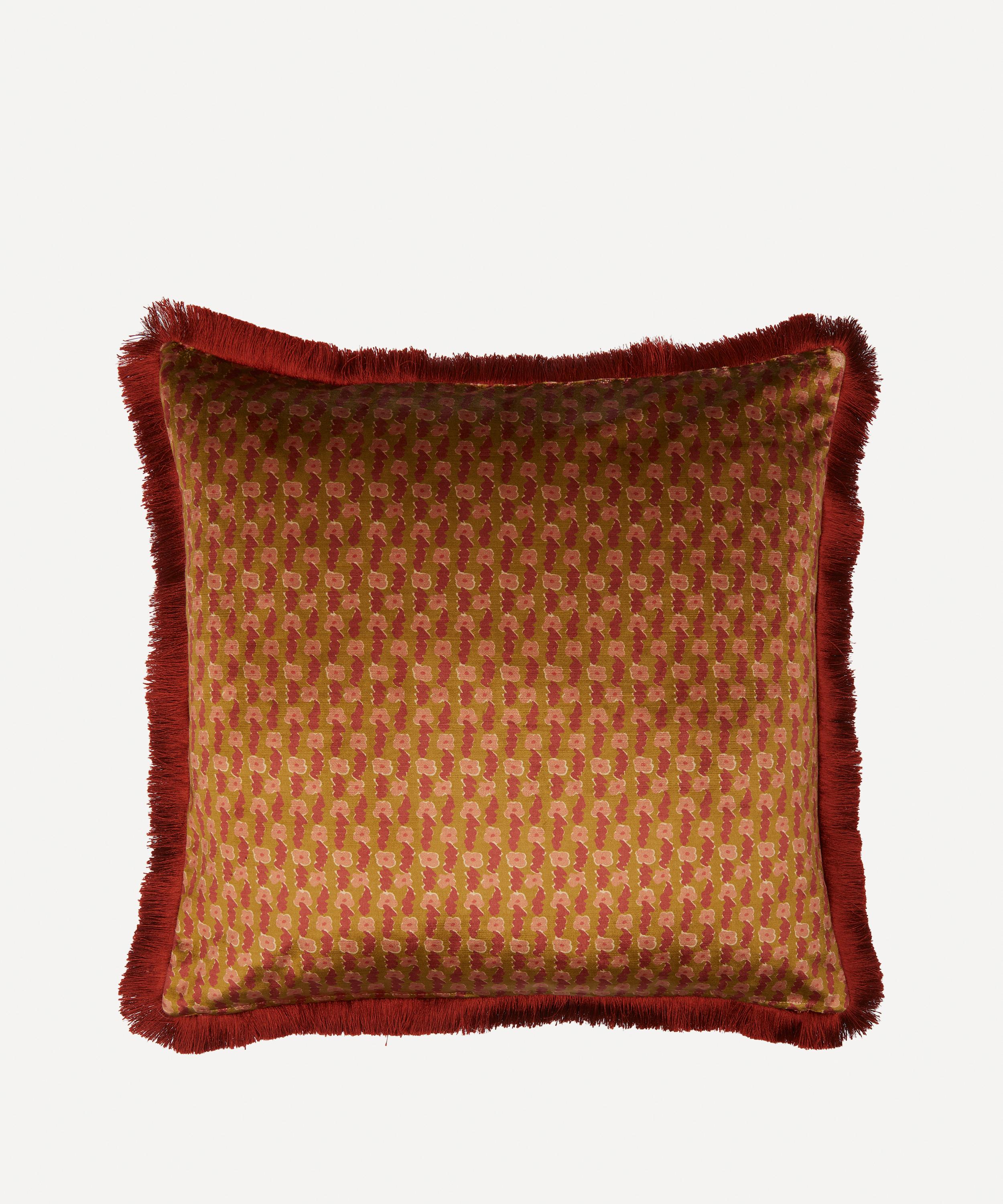 This square cushion is shaped from plush velvet and showcases our Prospect Road artwork – an archival classic based on a Liberty design from 1968 and inspired by traditional Art Nouveau landscape prints. Filled with duck feathers for maximum comfort and softness, it brings a note of natural-world joy to your sofa, armchair or daybed.