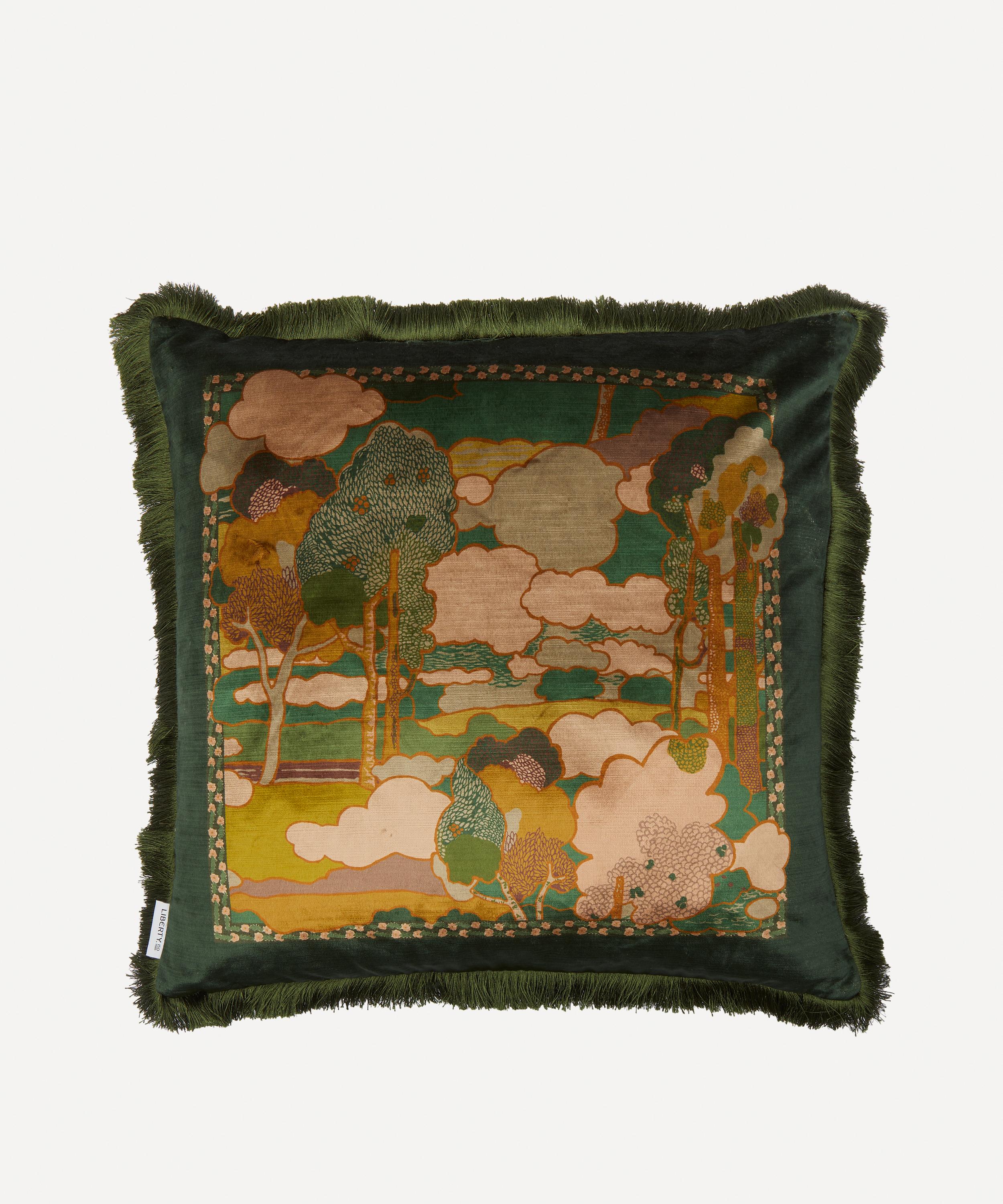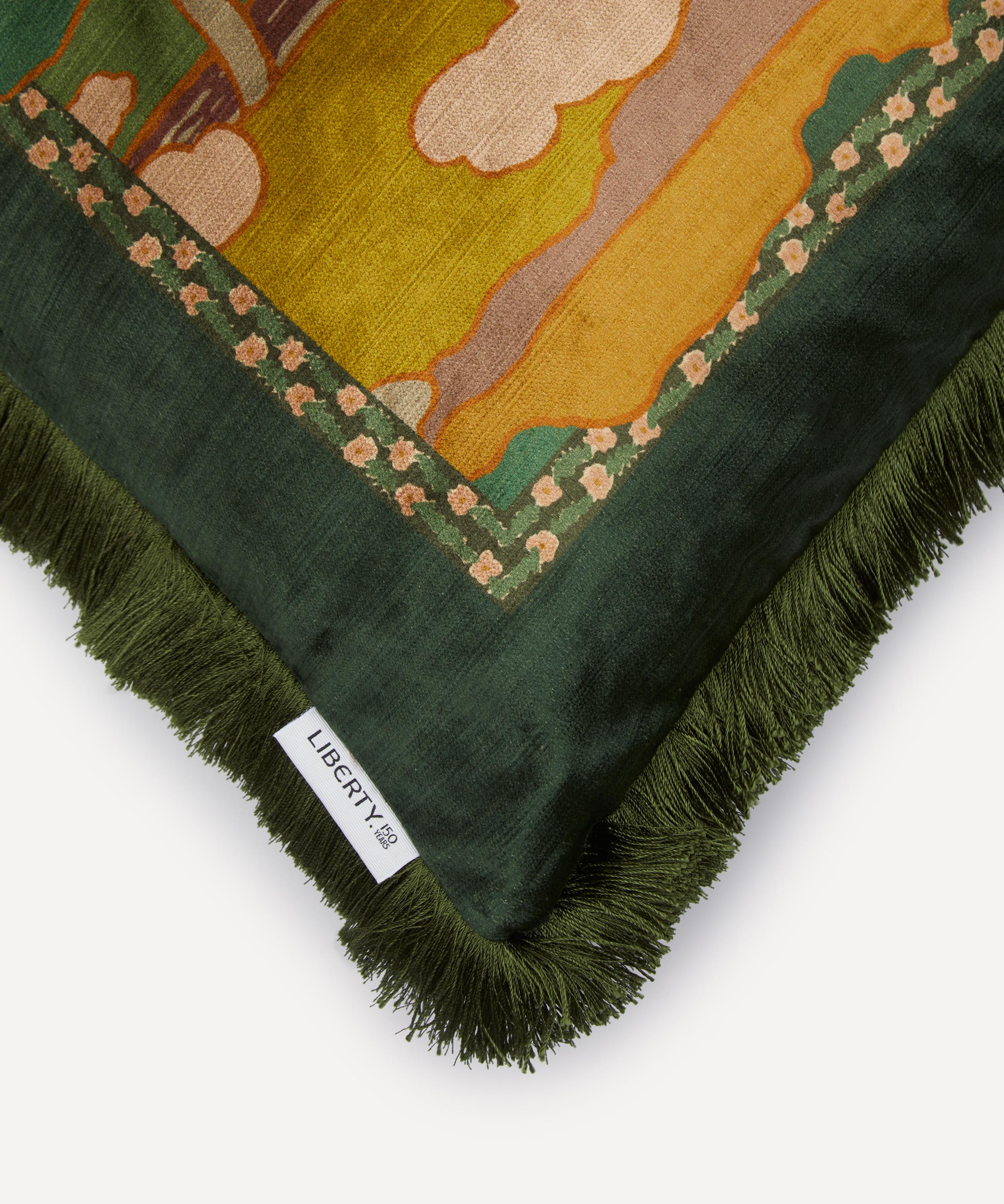 This square cushion is shaped from plush velvet and showcases our Prospect Road artwork – an archival classic based on a Liberty design from 1968 and inspired by traditional Art Nouveau landscape prints. Filled with duck feathers for maximum comfort and softness, it brings a note of natural-world joy to your sofa, armchair or daybed.