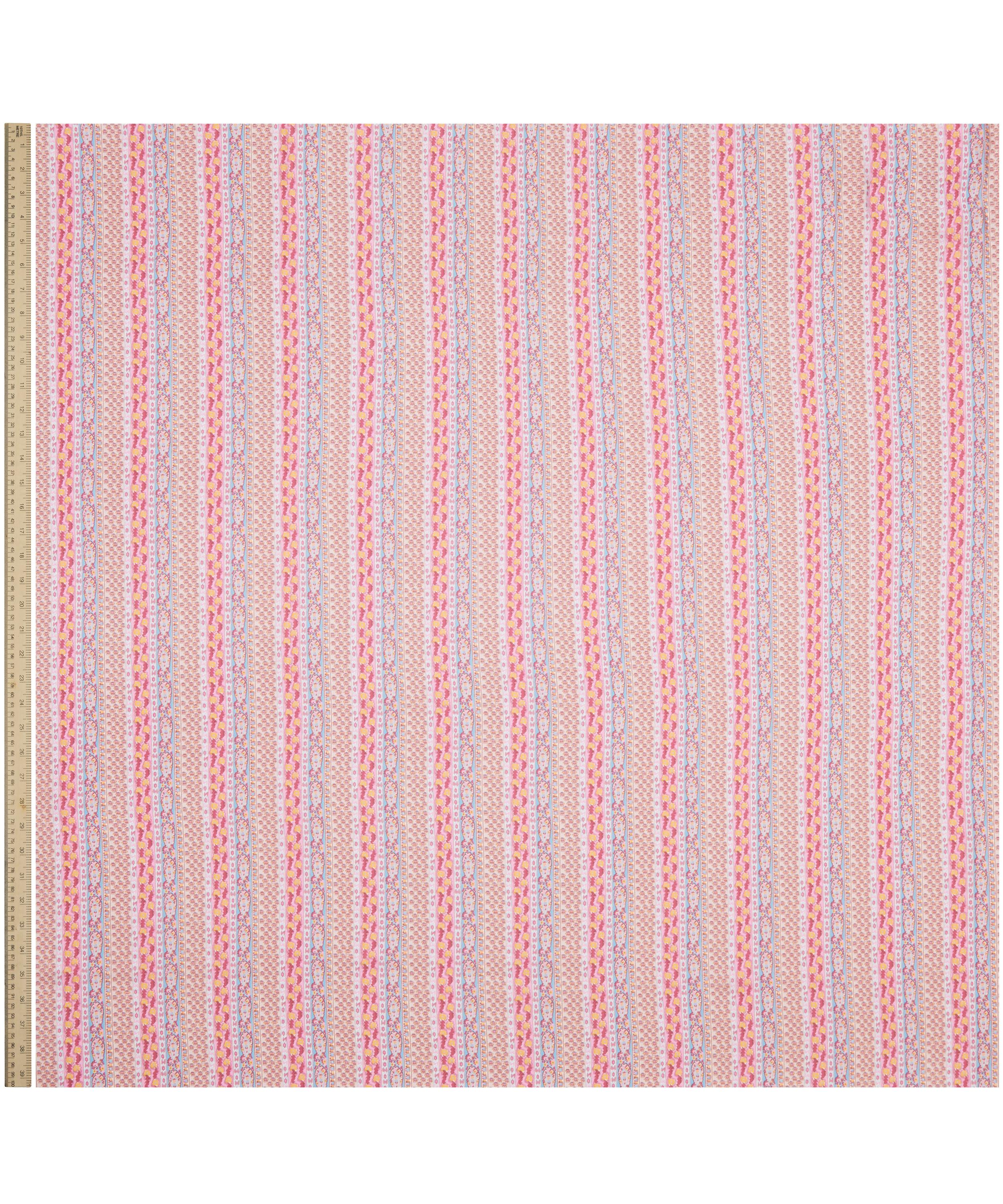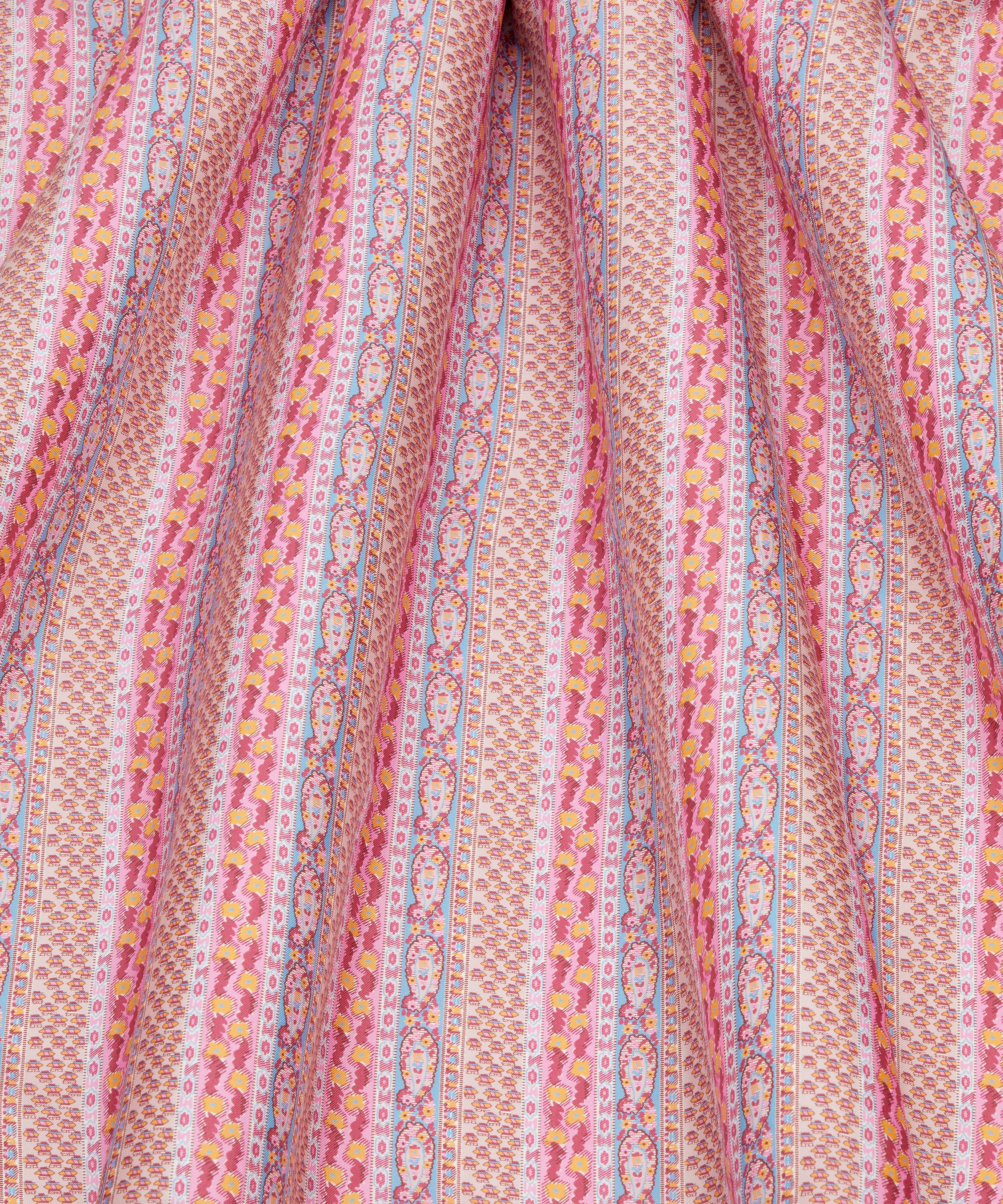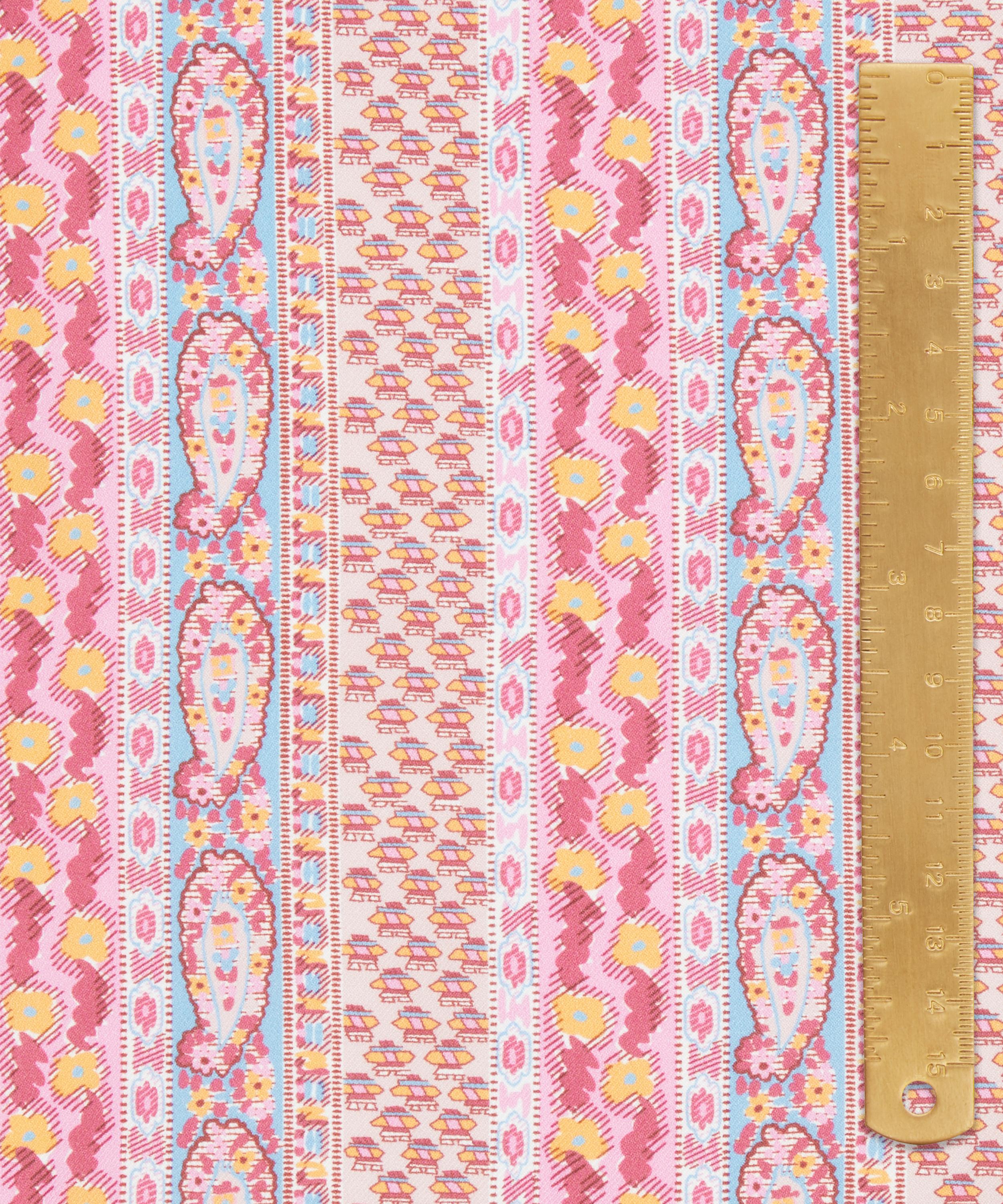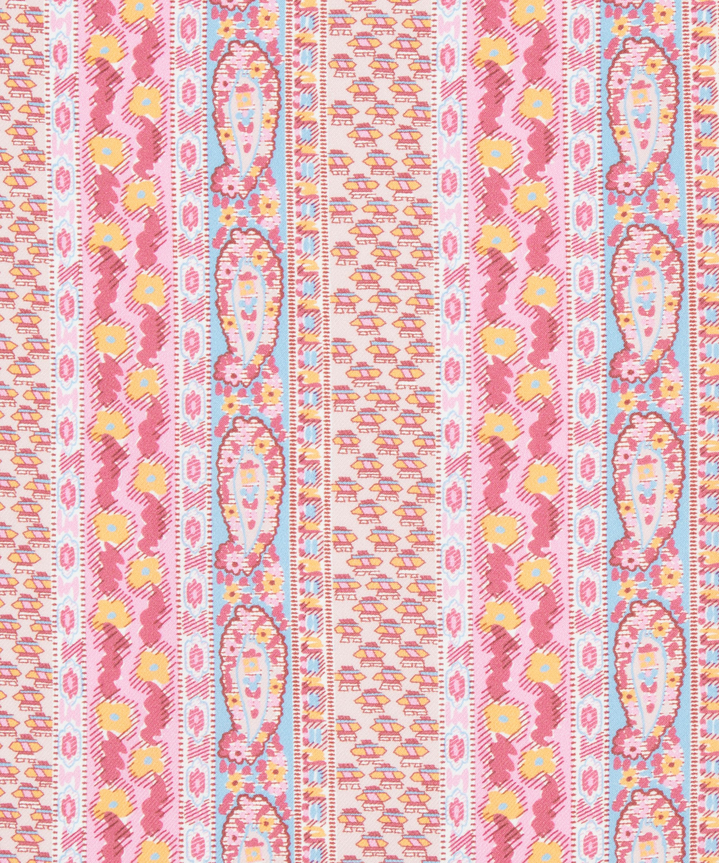 Meticulously redrawn in the Liberty studio, this elegant paisley stripe was originally created as a border coordinate for Bernard Nevill’s Prospect Road artwork in 1968. Prospect Stripe is part of The Audience act of Retold, celebrating the characterful and lively Liberty shopper, from Oscar Wilde in the 19th century to the artists, writers, musicians, rock legends, models and actors that have flocked to Regent Street since – our discerning audience is one of Liberty’s most inspiring muses for SS25.