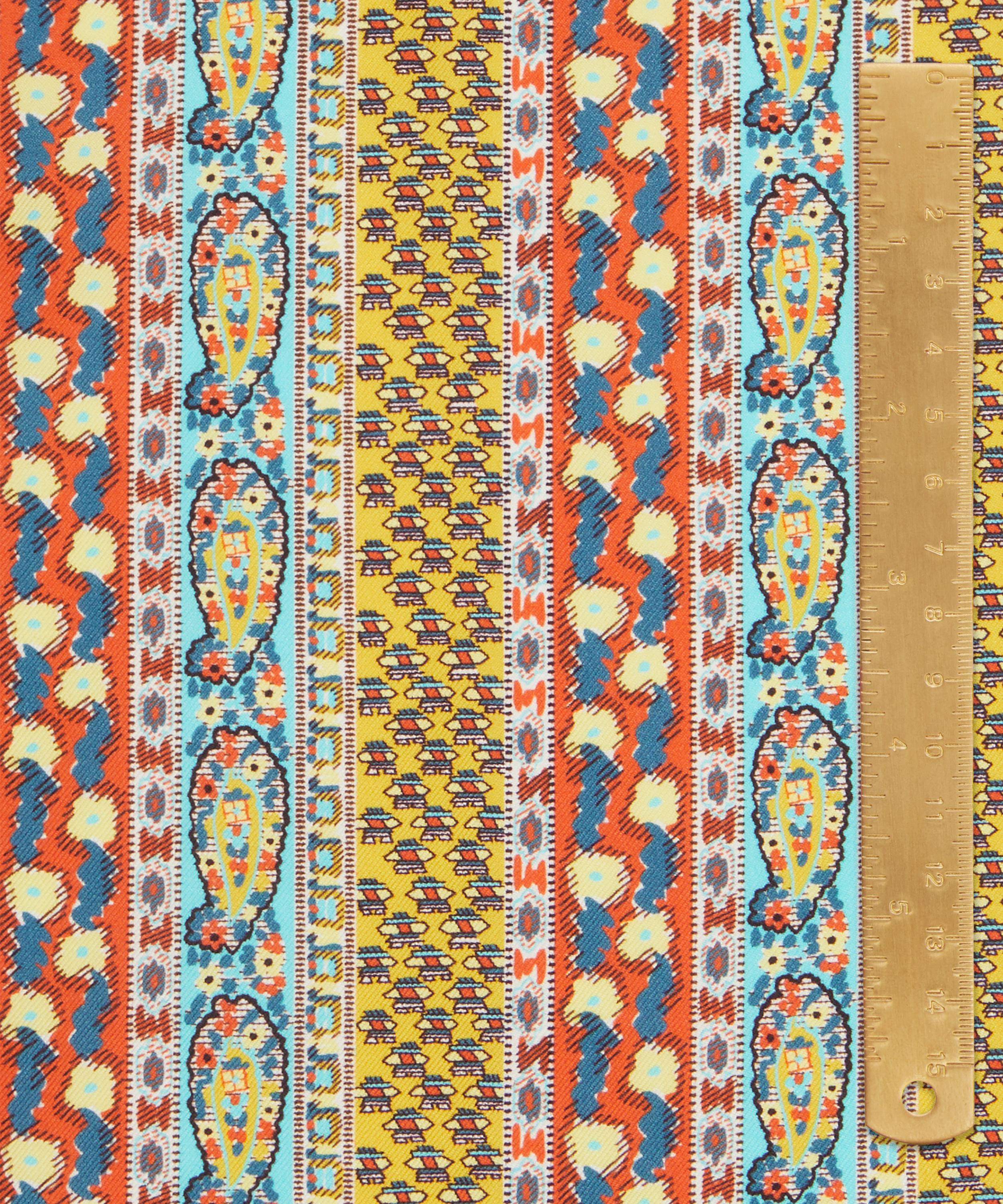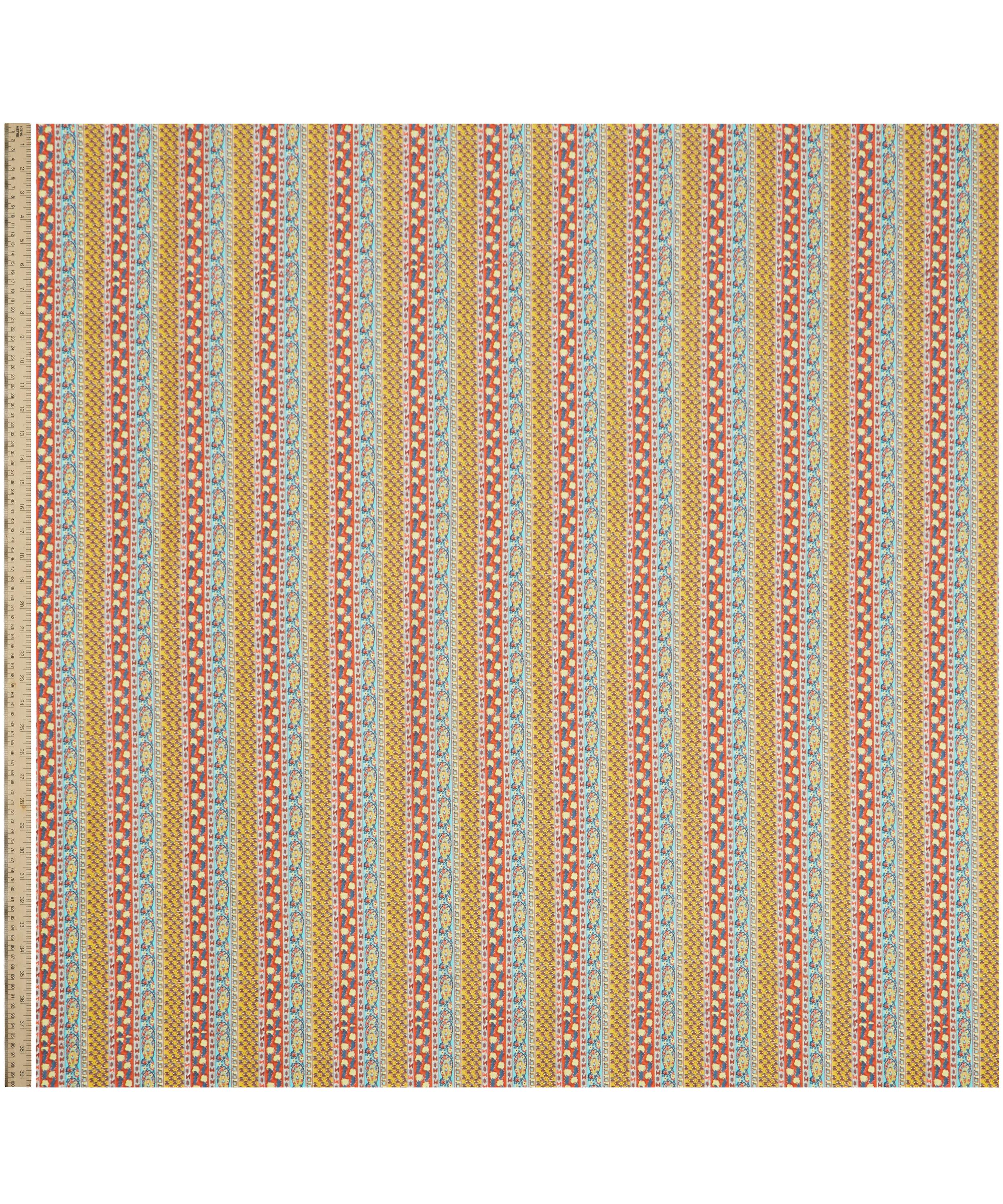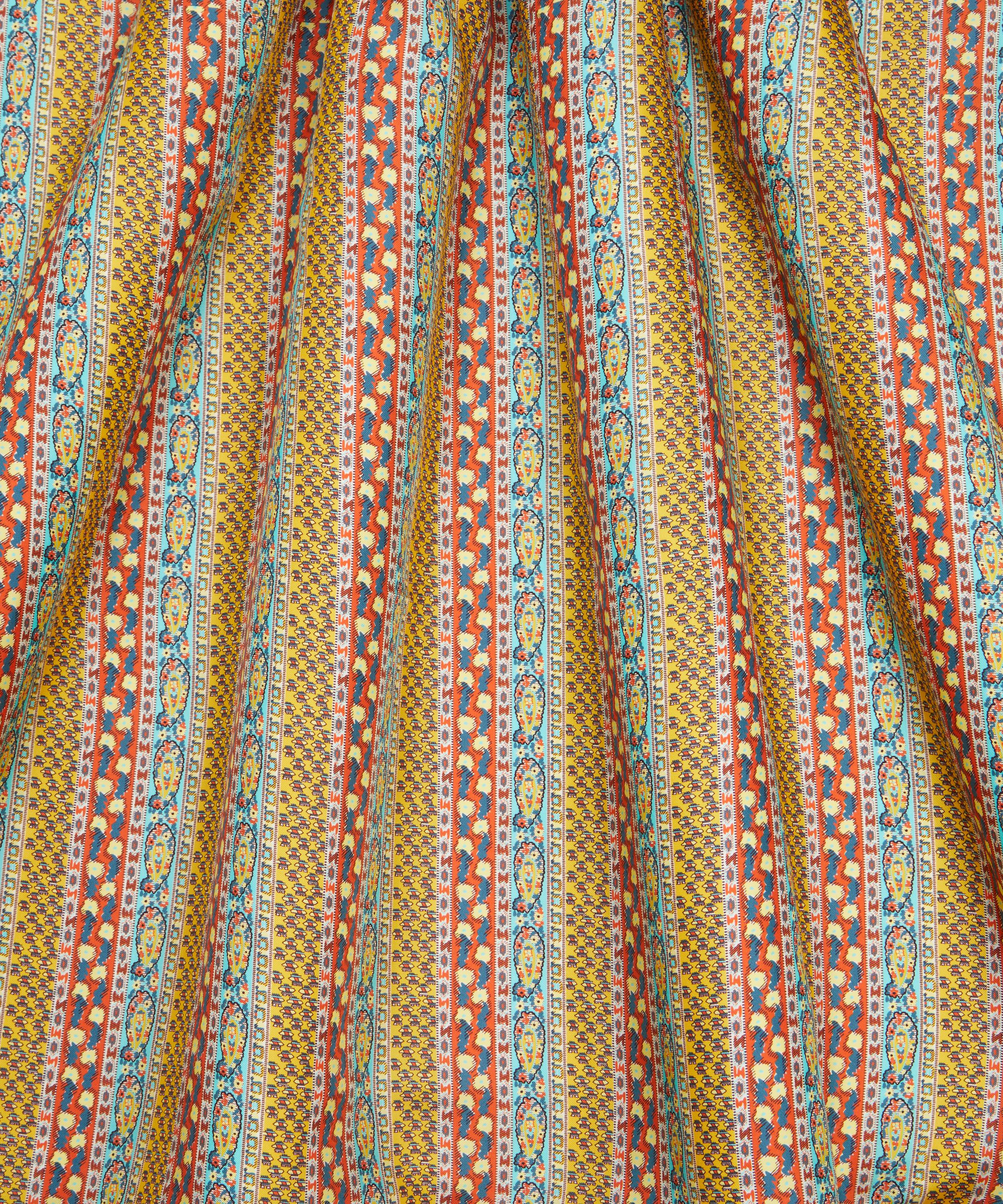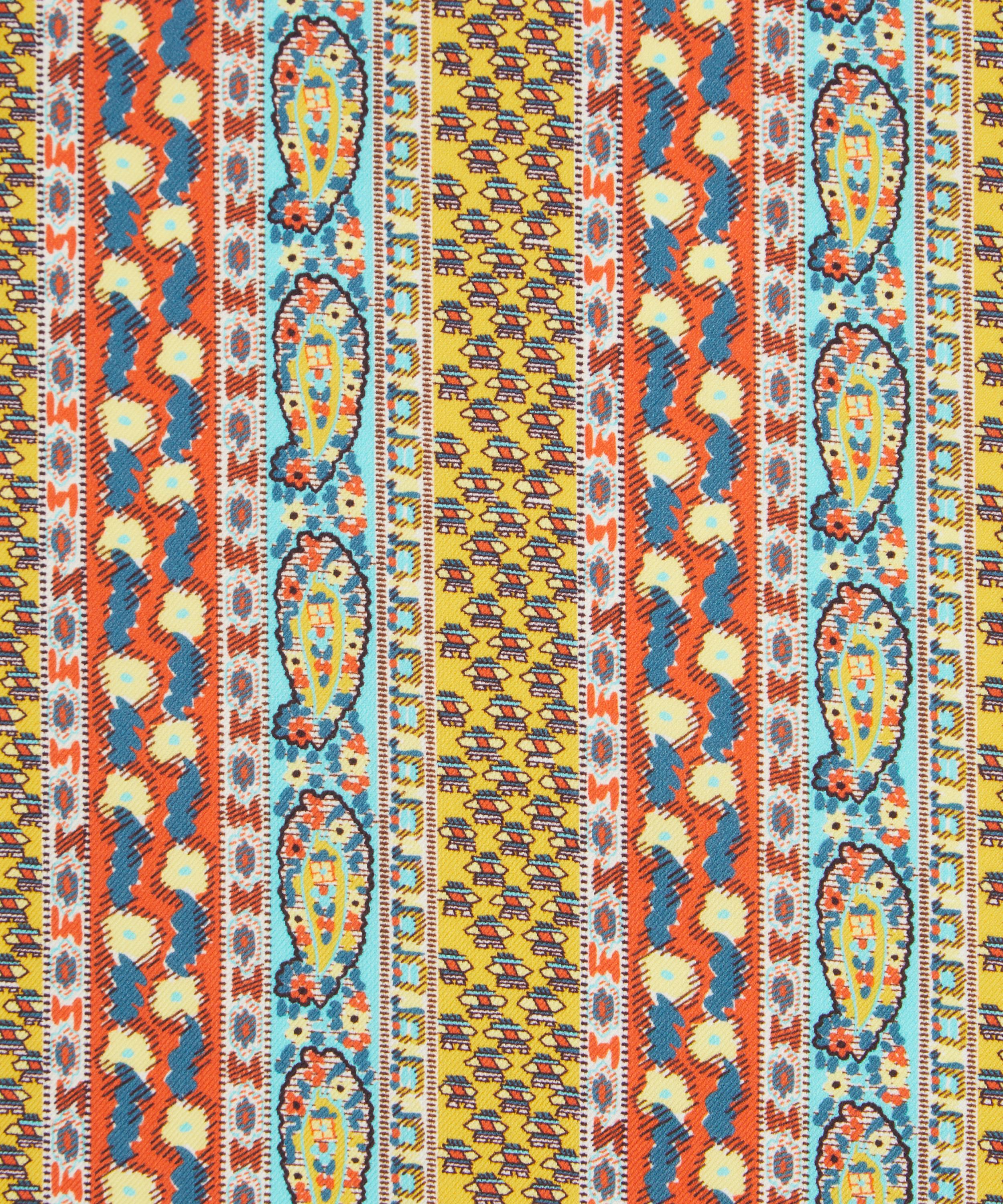 Meticulously redrawn in the Liberty studio, this elegant paisley stripe was originally created as a border coordinate for Bernard Nevill’s Prospect Road artwork in 1968. Prospect Stripe is part of The Audience act of Retold, celebrating the characterful and lively Liberty shopper, from Oscar Wilde in the 19th century to the artists, writers, musicians, rock legends, models and actors that have flocked to Regent Street since – our discerning audience is one of Liberty’s most inspiring muses for SS25.