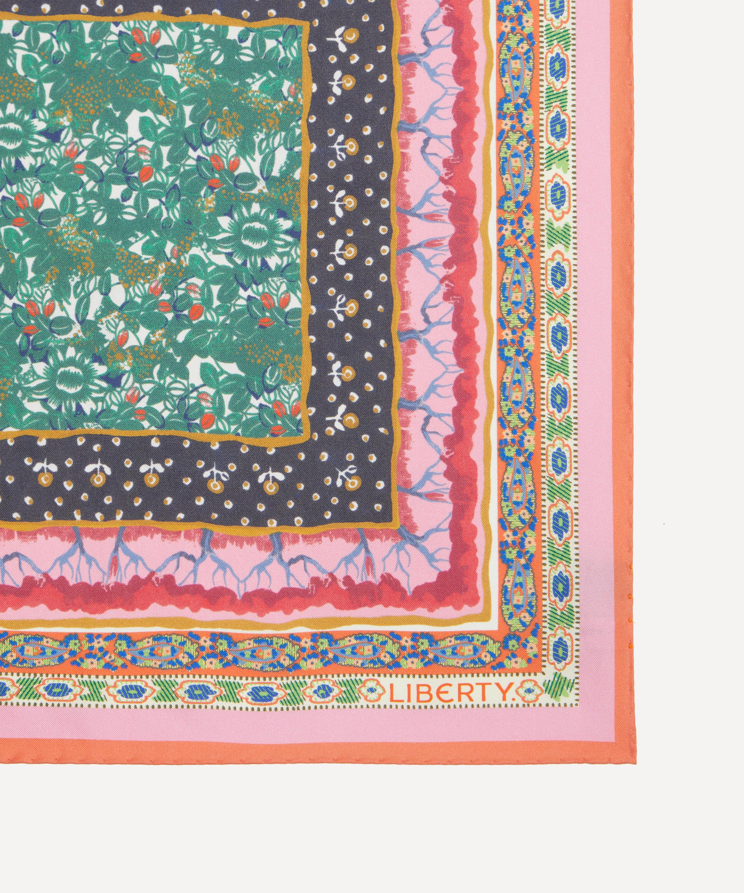Expertly woven from ultra-soft silk, it showcases our delightful Prospect Trail print – featuring the intricate and hidden Aztec motifs and fauna surrounding the richly decorative landscape of the original Prospect Road design painted by Bernard Nevil. Each border is stylized with its own ribbon of pattern, which includes a delicate lacing of blossoms, trees and paisley patterns, which trail around the central floral core. Designed to stand the test of time, this versatile accessory staple will breathe new life into your wardrobe with its rich colouration and texture. Knot it close to the neck for a pop of subtle colour, tie it around the handles of a bag or weave it through your hair for an effortless statement – the styling possibilities are endless.