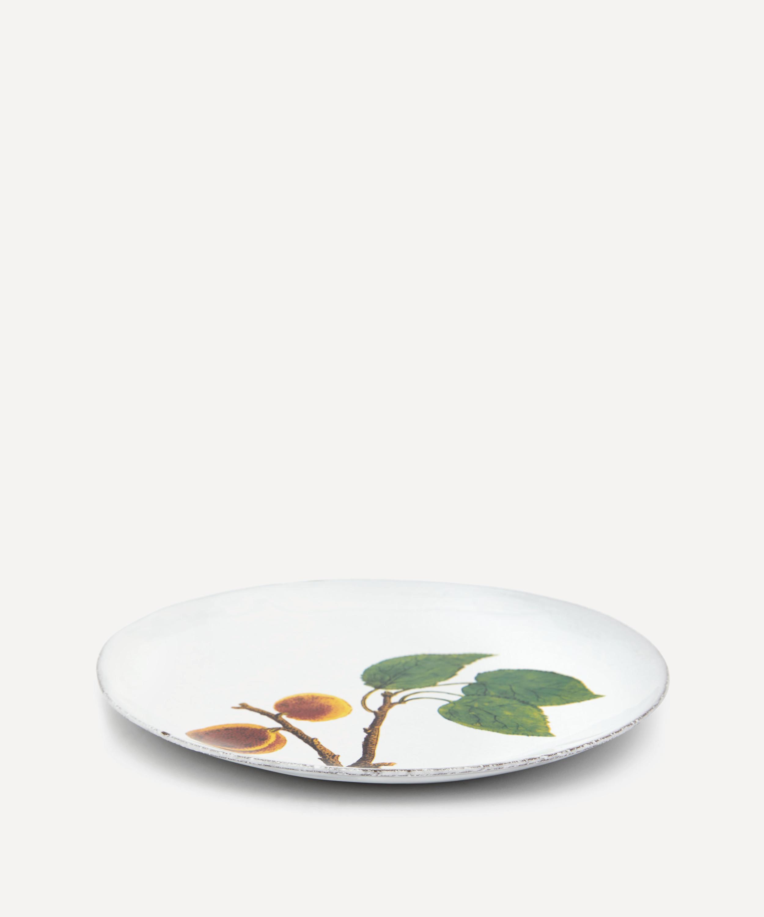 Votary of pre-industrial fabrication, Astier de Villatte is celebrated for being the one and only studio in Paris to hold and harbour the traditions of artisanal ceramic production. Restoring the ancestral systems of moulding and stamping, the Prune plate is made using techniques from the Middle Ages which involve moulding a sheet of handmade clay, double firing the ‘biscuit’ piece and glazing the product in white enamel – a lengthy process that requires a drying time of up to one month. Characterised by vintage découpage, the Prune plate is engraved with the brand’s signature crest - depicting an interlacing A & V - alongside John Derian's name in block capitals. Each handmade piece tells a beautiful story, it romances and imparts a sense of nostalgia into its owner. Pair it with other ornate platters from the collection for a coordinated decorative approach.
