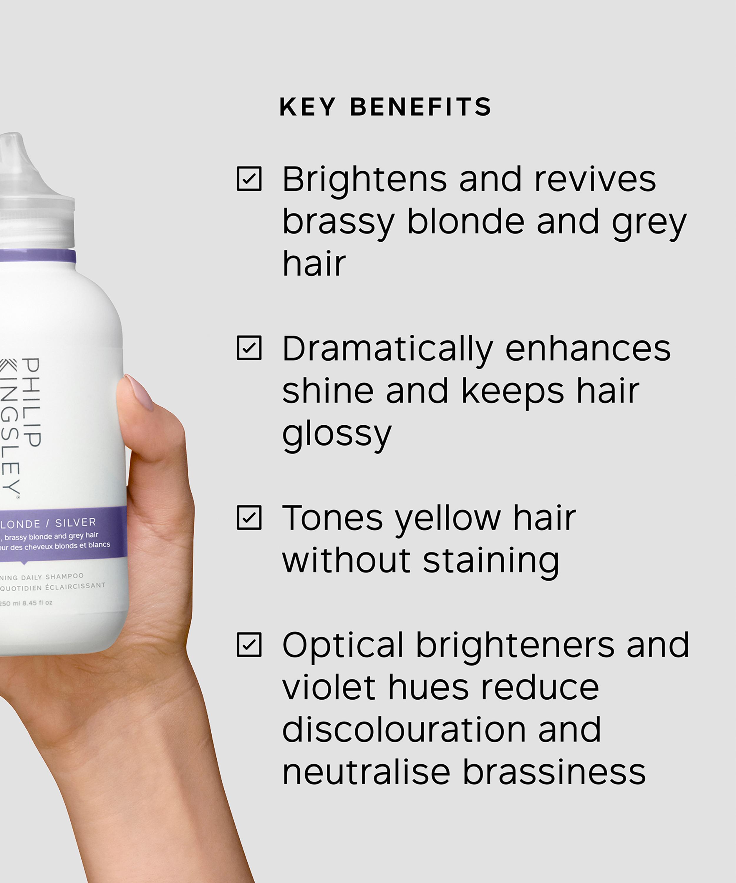 Intensify and illuminate cooler and platinum tones with Philip Kingsley's Pure Blonde Booster Duo, featuring a transformative shampoo and weekly hair mask crafted to unveil your ultimate blonde.