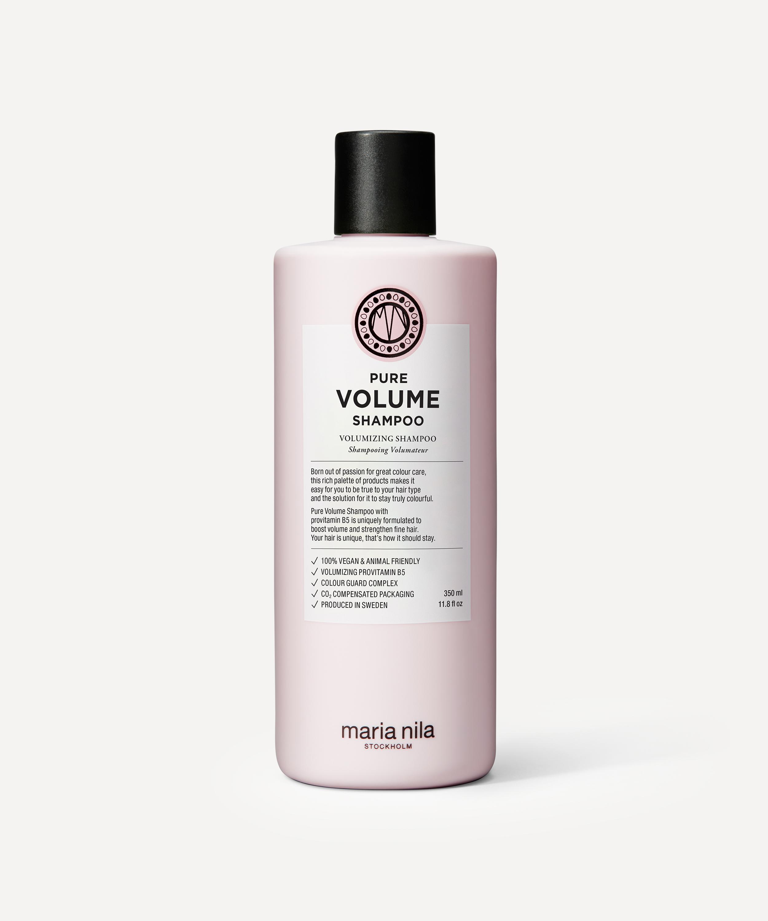 Boost fine and thin strands with Maria Nila's Pure Volume Shampoo, expertly crafted to reveal silky soft, fuller-looking hair.