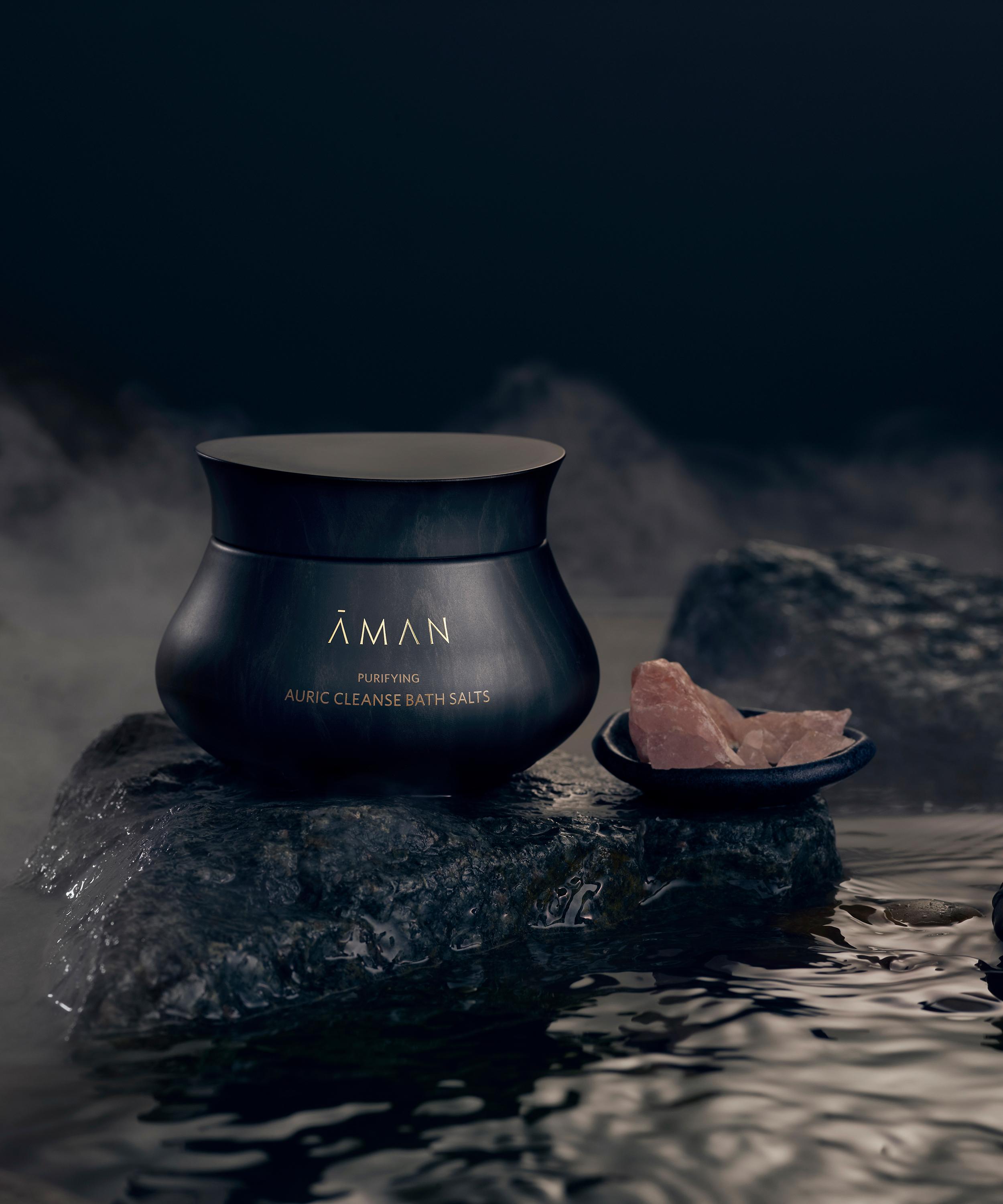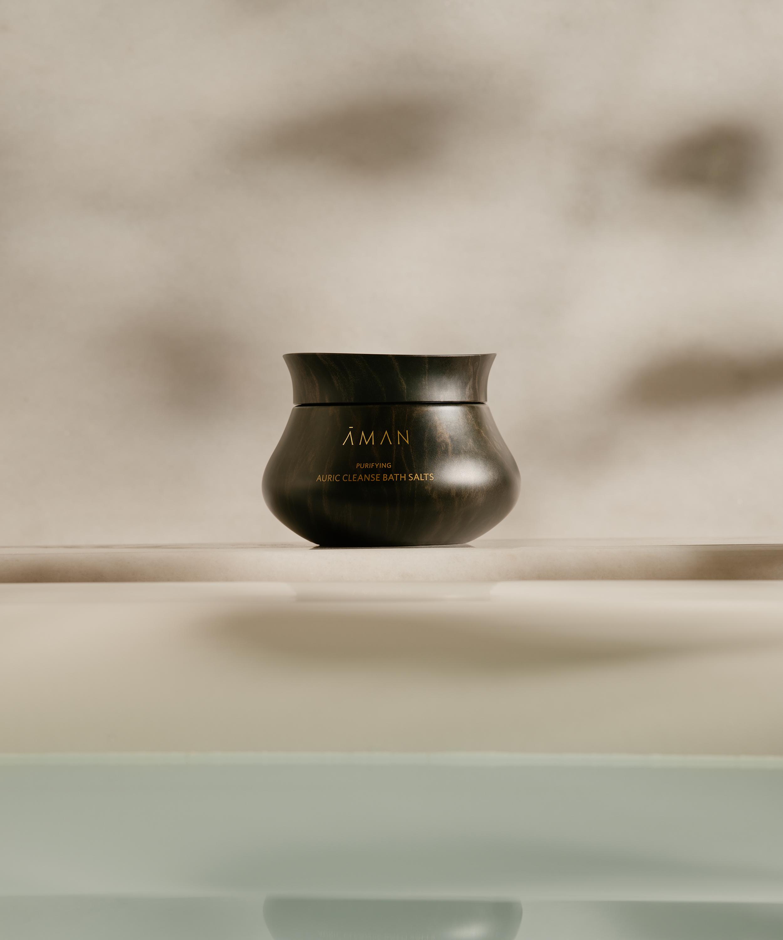 Bring a touch of decadence to your bathing rituals with the Purifying Auric Cleanse Bath Salts from Aman, infused with the restorative powers of palo santo and Himalayan salt.