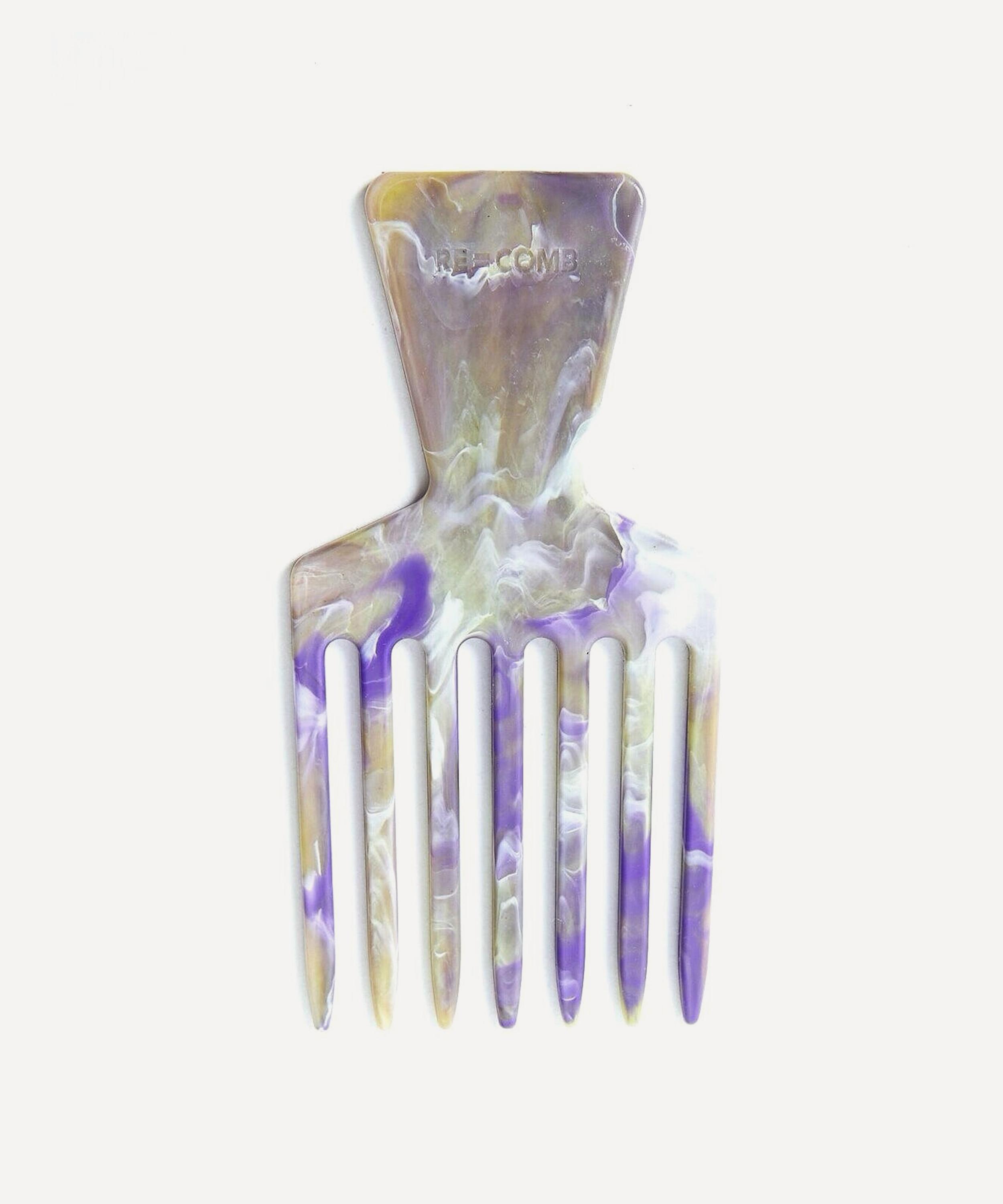 The Marbled Warm afro pik from RE=COMB is handmade in the UK from recycled polypropylene plastic, using a technique that makes each one entirely unique.