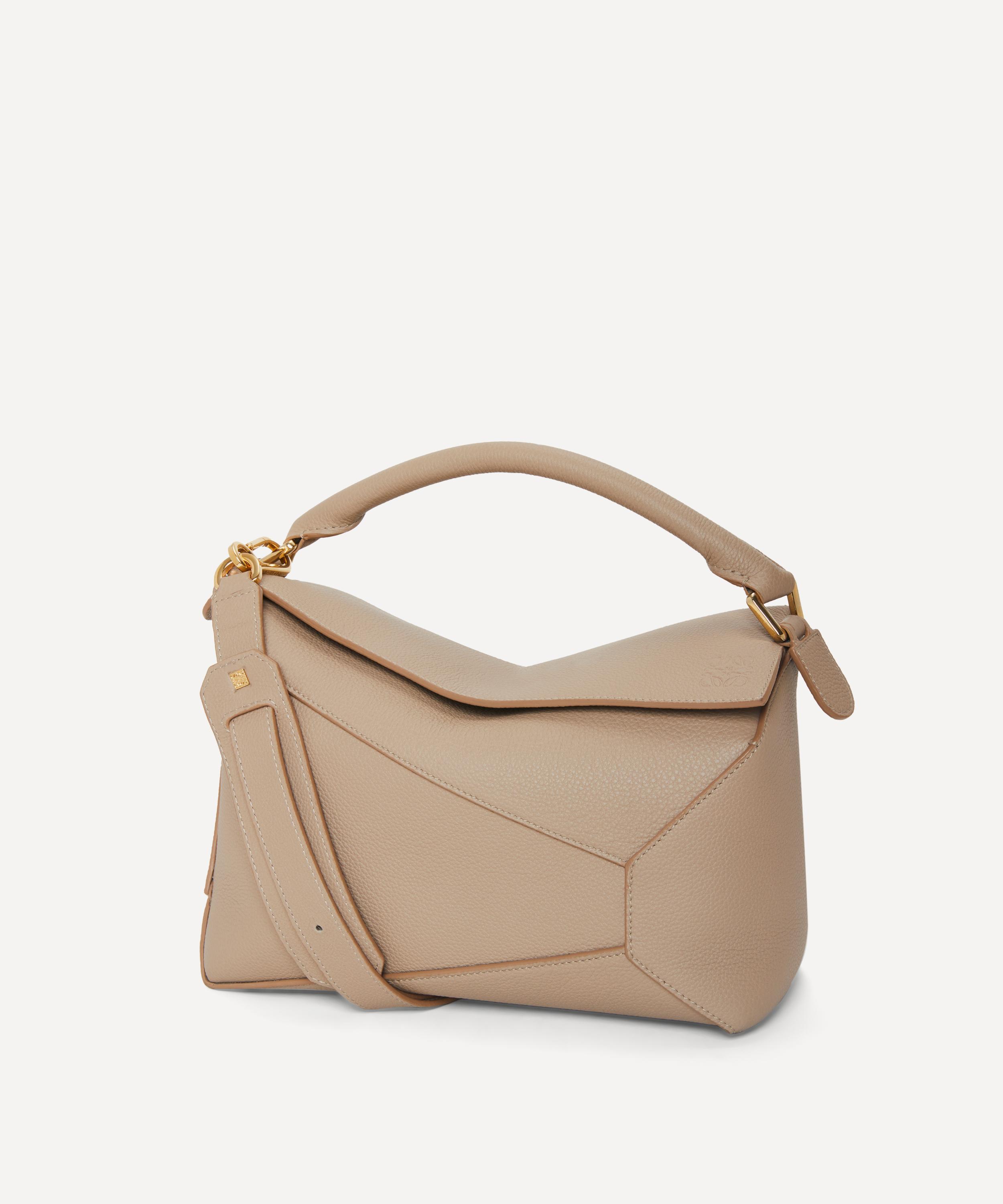 The iconic Puzzle Edge top handle bag from Spanish fashion house Loewe showcases an innovative folding design that can be adapted for any outfit or occasion.