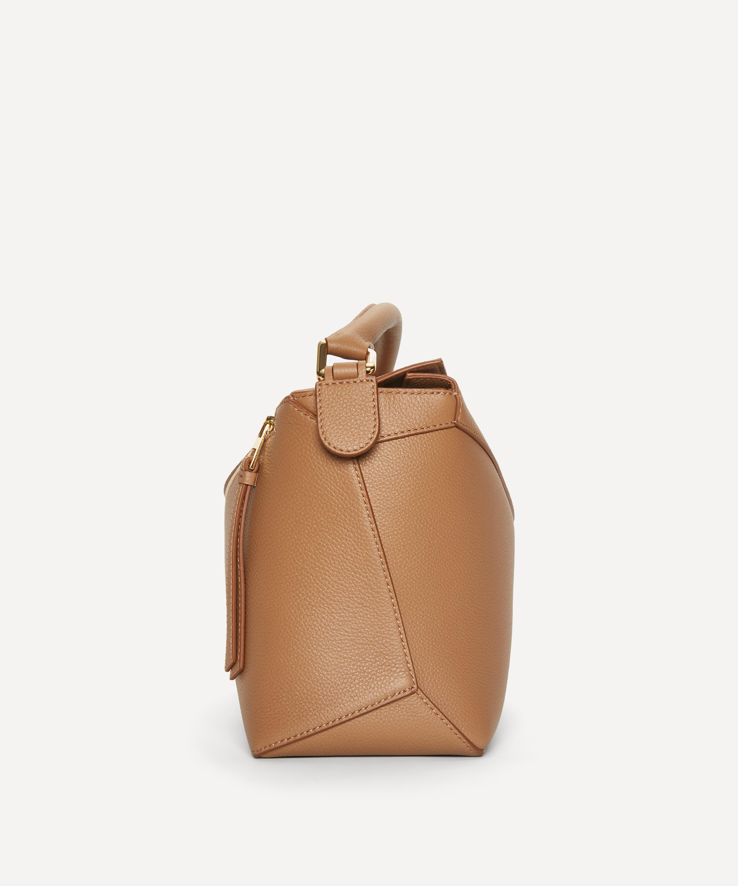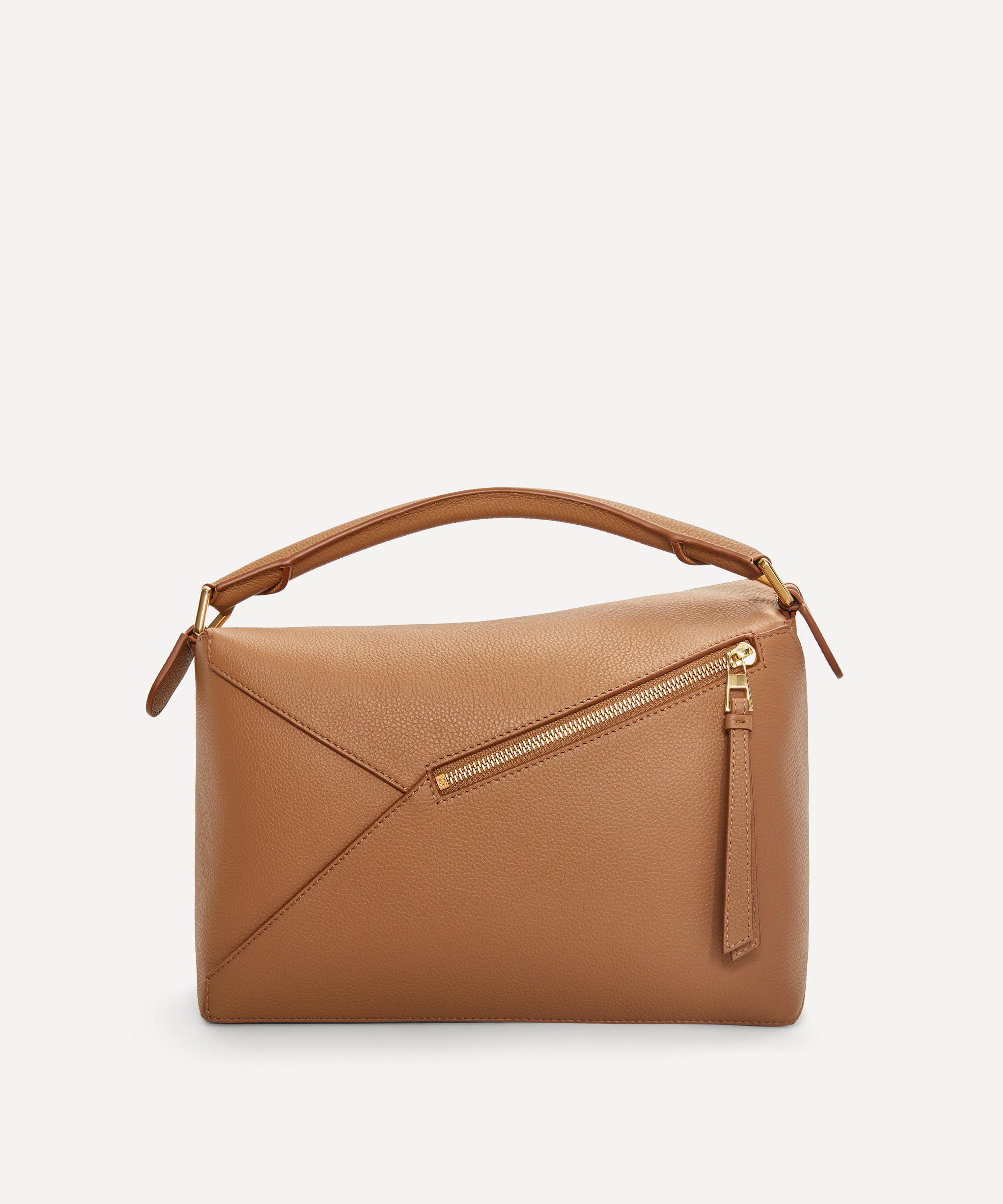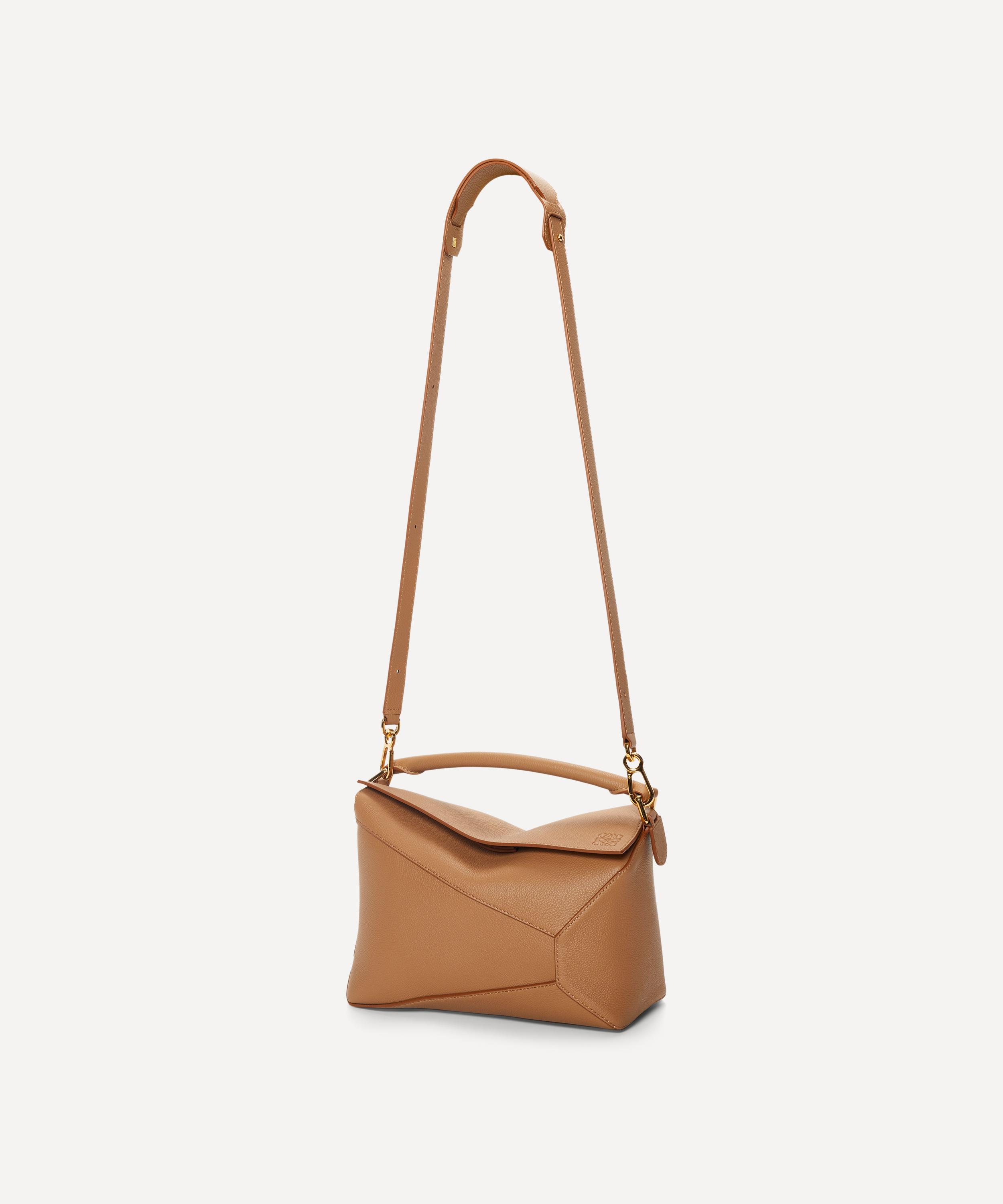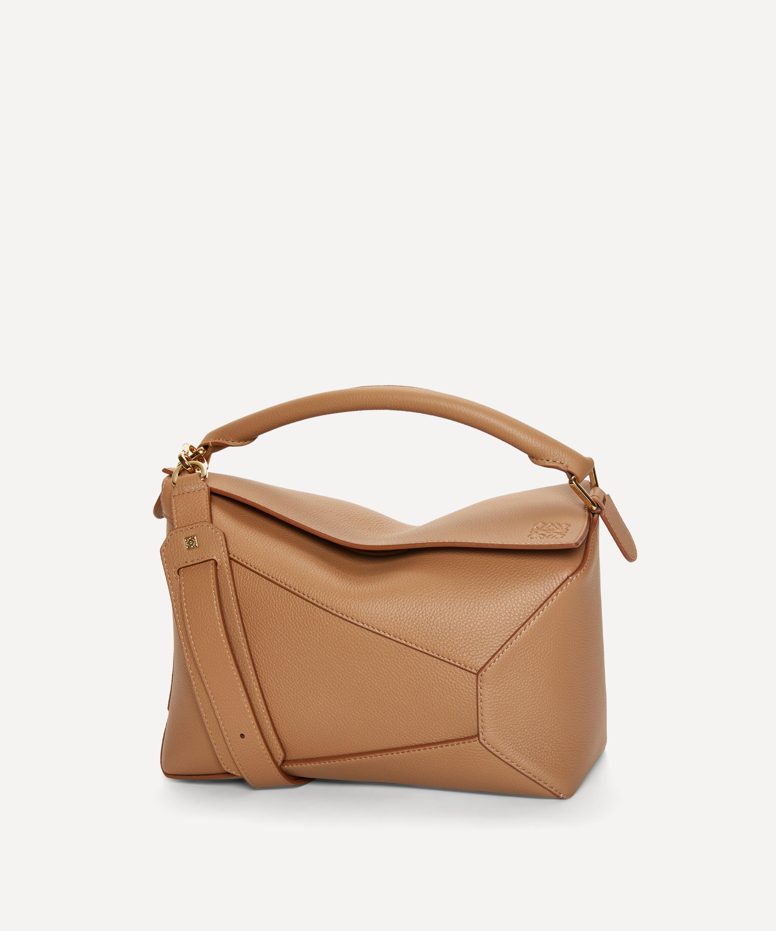 The iconic Puzzle Edge top handle bag from Spanish fashion house Loewe showcases an innovative folding design that can be adapted for any outfit or occasion.