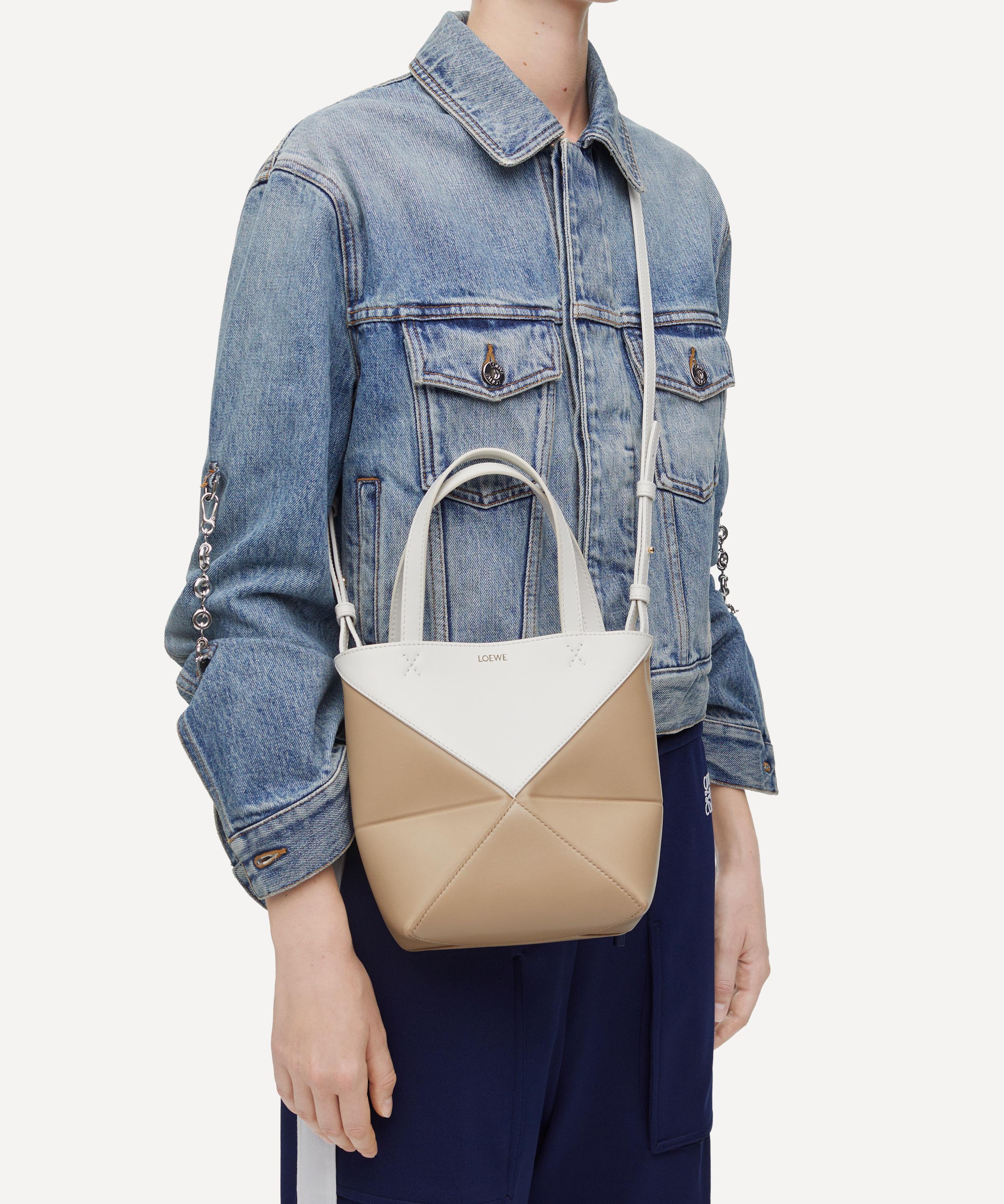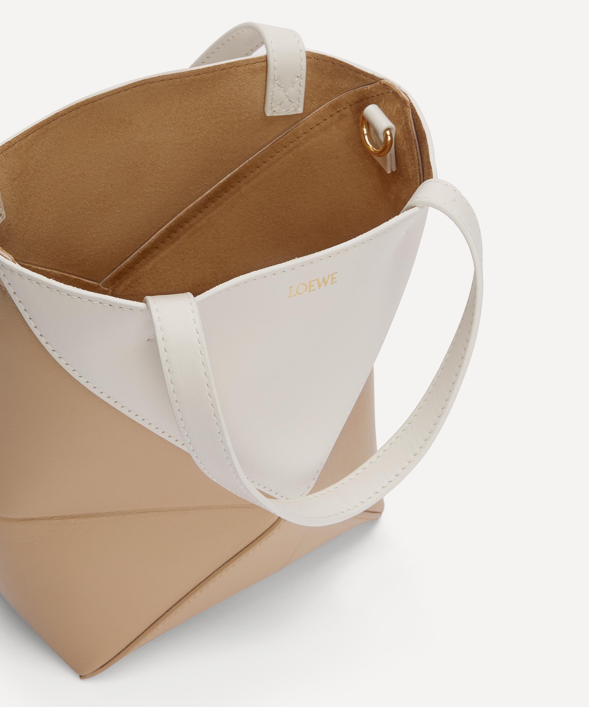 The iconic Puzzle shoulder bag from Spanish fashion house Loewe is reimagined in this sleek and inventive tote bag.