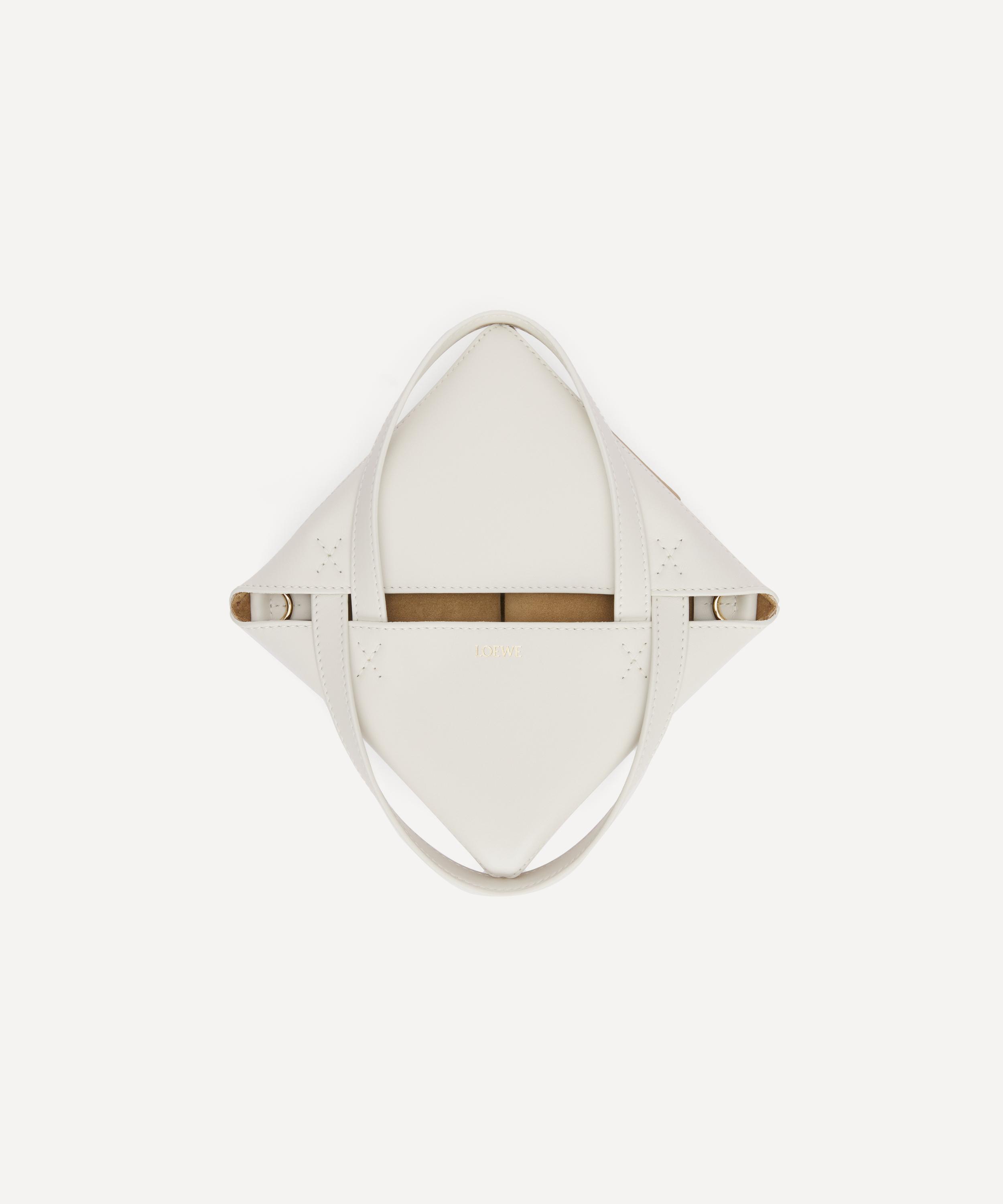 Cut from shiny calfskin leather, it’s characterised by a small-sized tote that fold completely due to its geometric panel design. The bag is accented with a suede lining and a gold-embossed Loewe logo. Complete with two top handles and a detachable shoulder strap, it can be worn over the shoulder, cross-body or carried by hand.