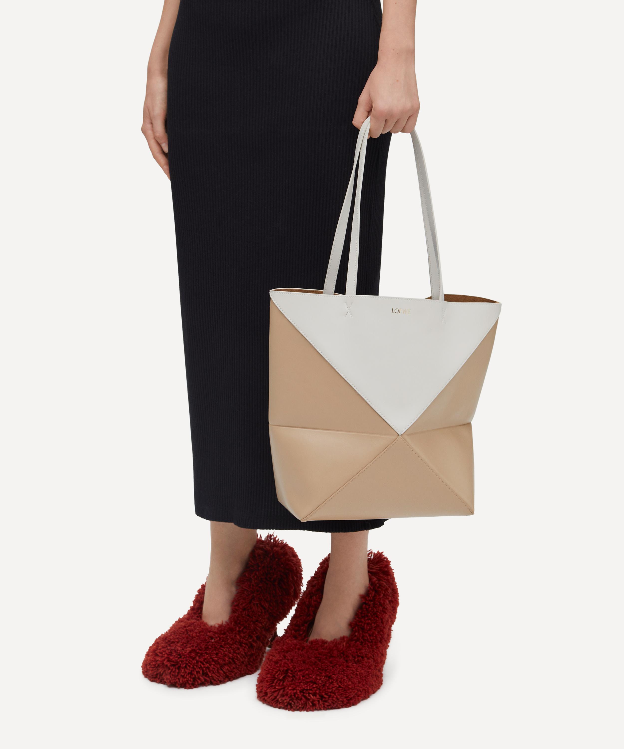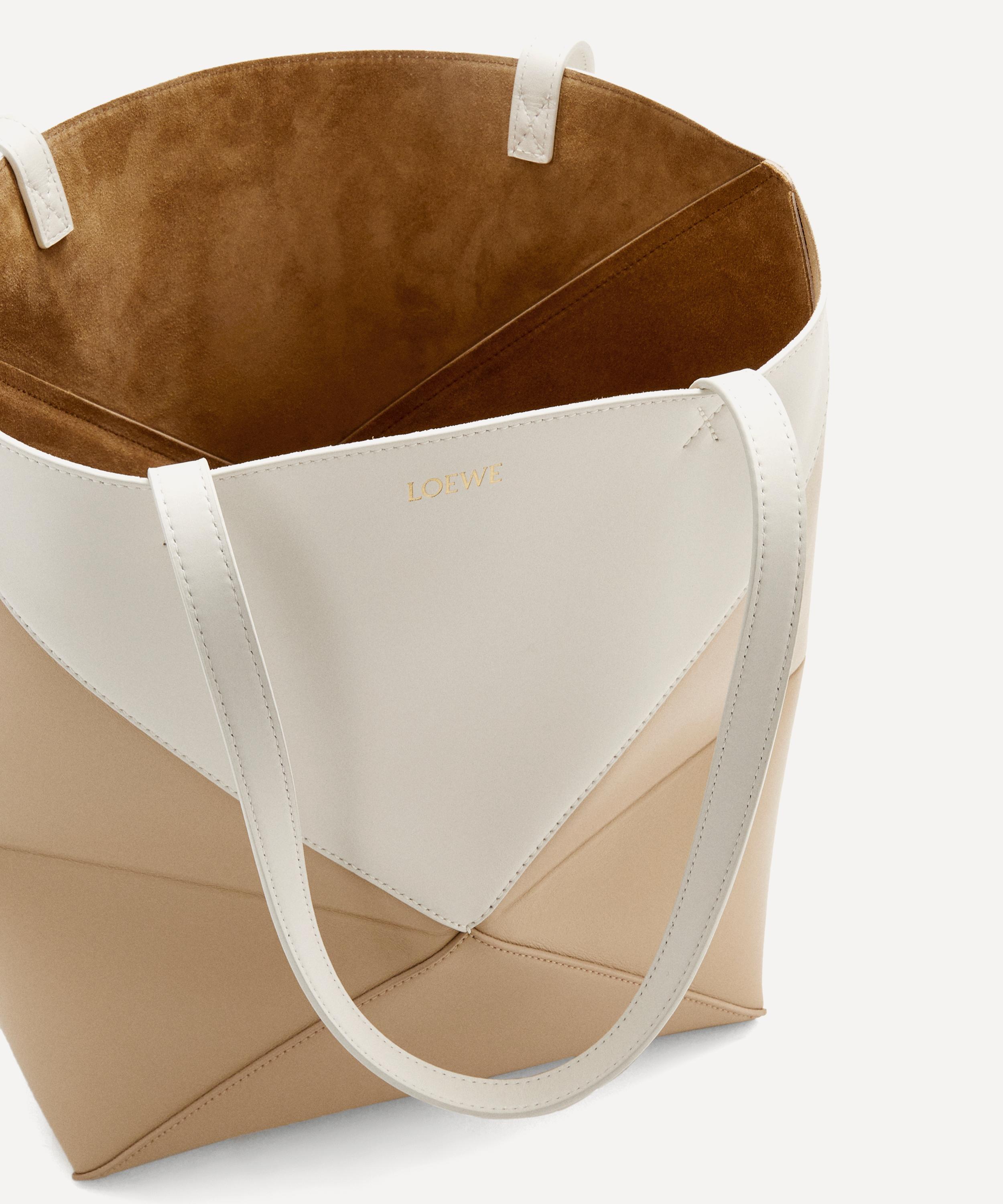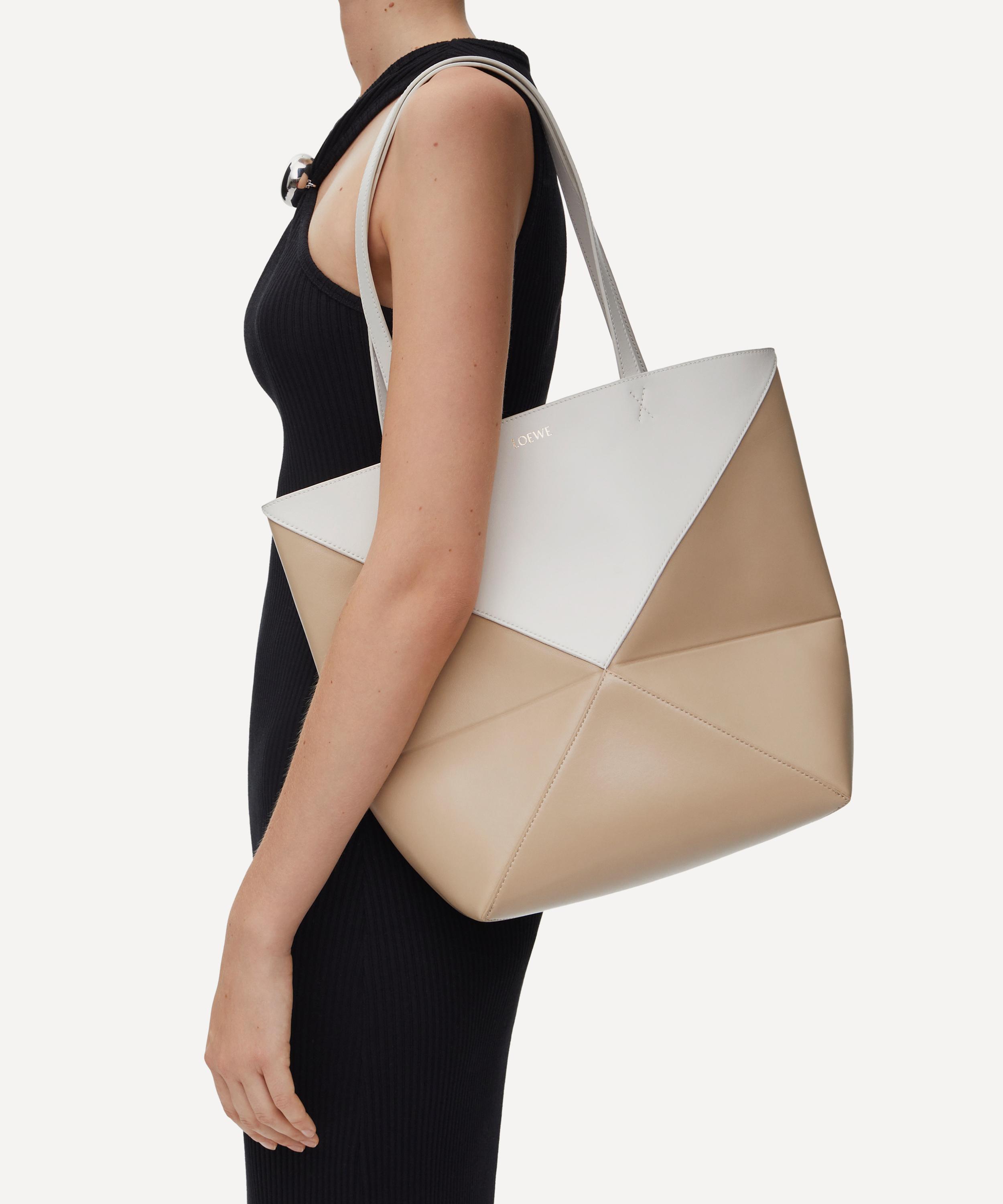 The iconic Puzzle shoulder bag from Spanish fashion house Loewe is reimagined in this sleek and inventive tote bag.