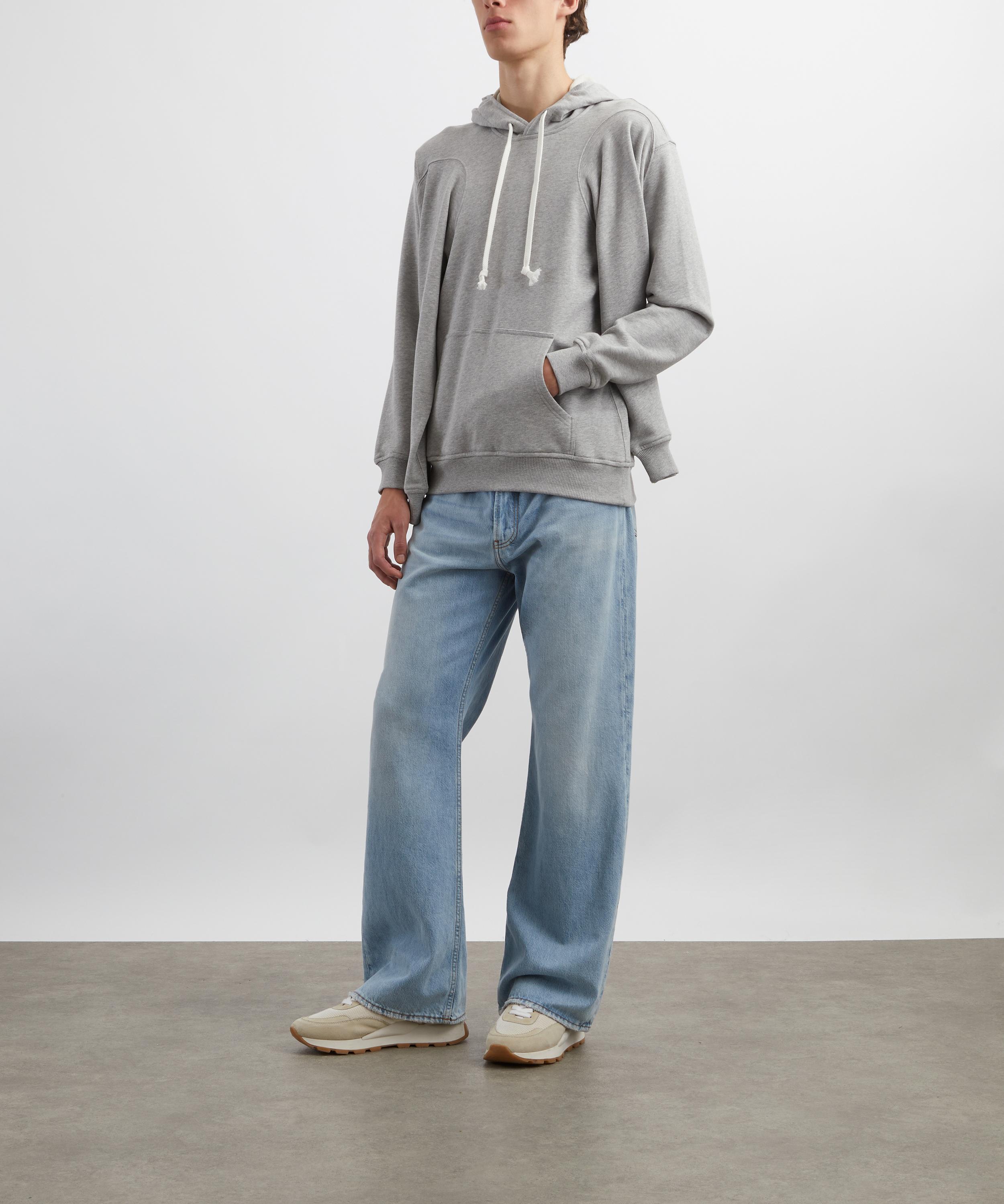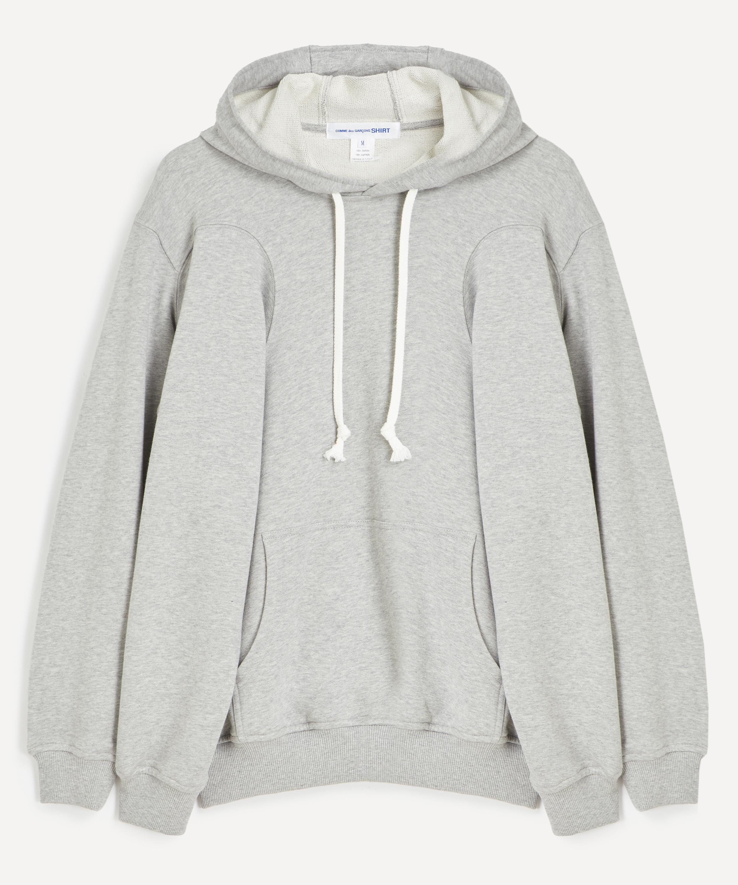 The Quad Sleeve Hooded Sweatshirt by Comme des Garçons SHIRT adds a playful twist to a classic loungewear staple.