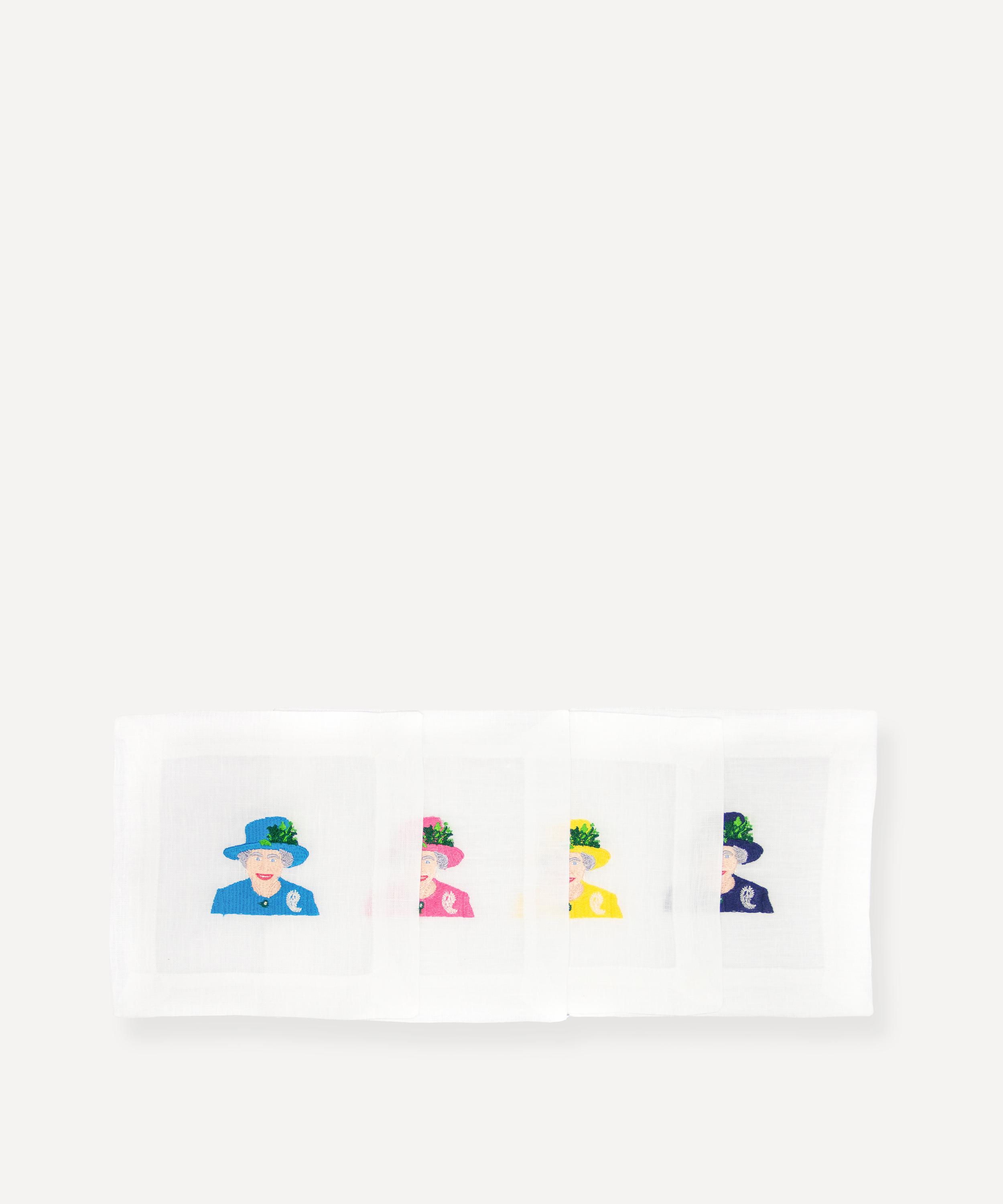 Effortlessly embellish home entertaining with the Queen's Royal Splendour cocktail napkin set from Lettermade.