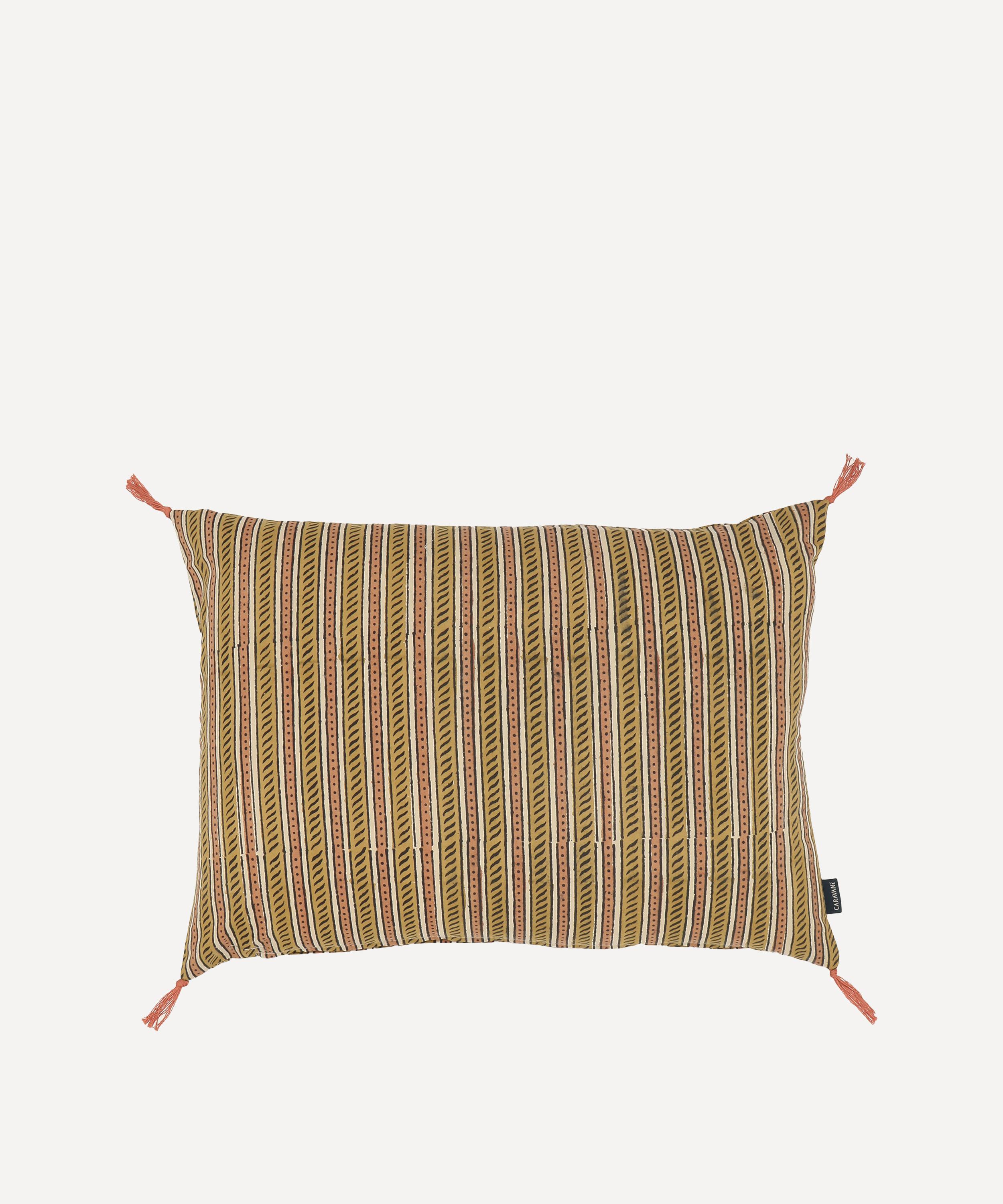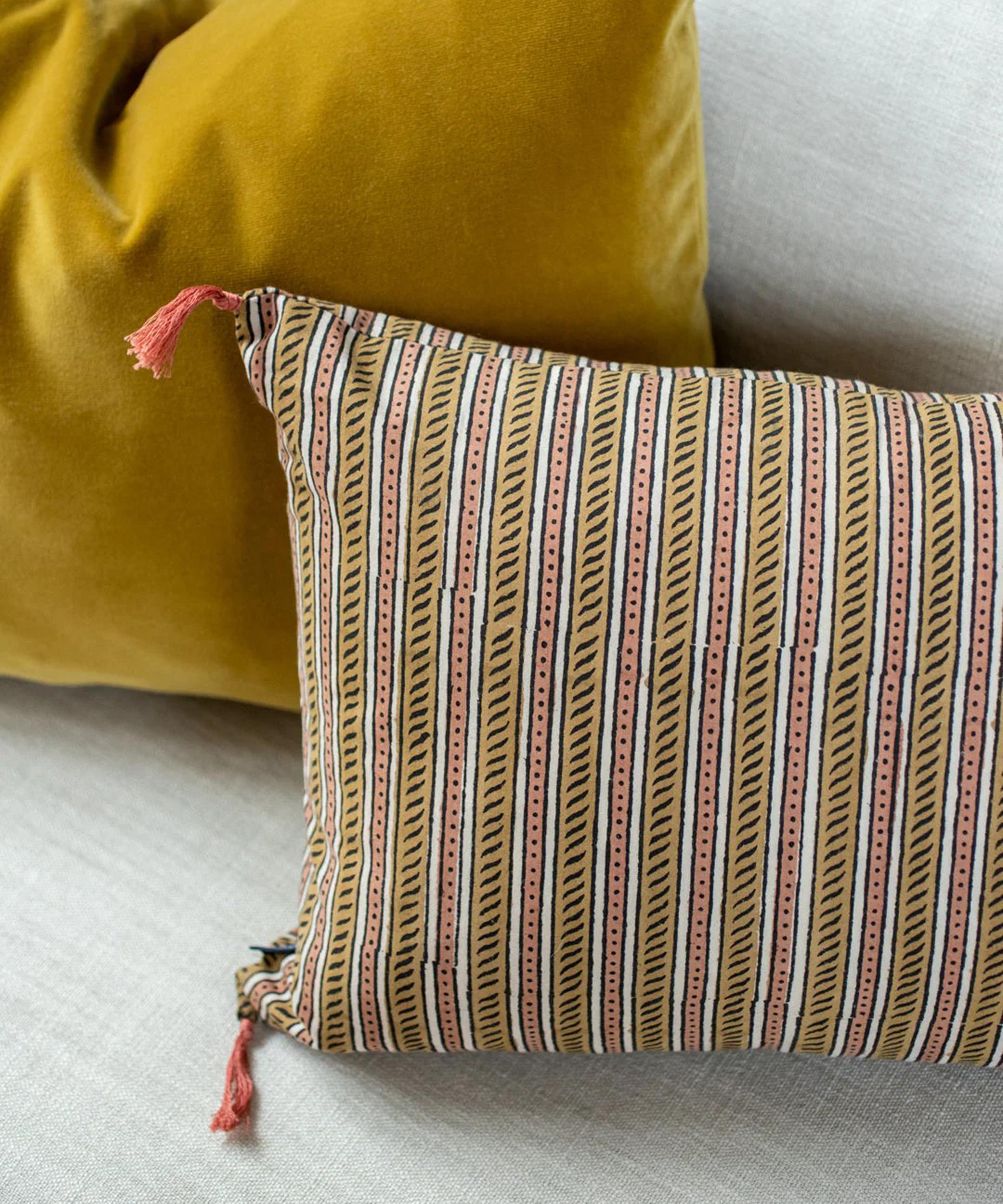 A homeware brand that celebrates the eclectic landscape of a lived-in home, this cushion cover embodies tradition through its delicately hand-printed geometric motifs, enlivened by refreshing and contrasting hues - perfect for adding texture and comfort to interior spaces.