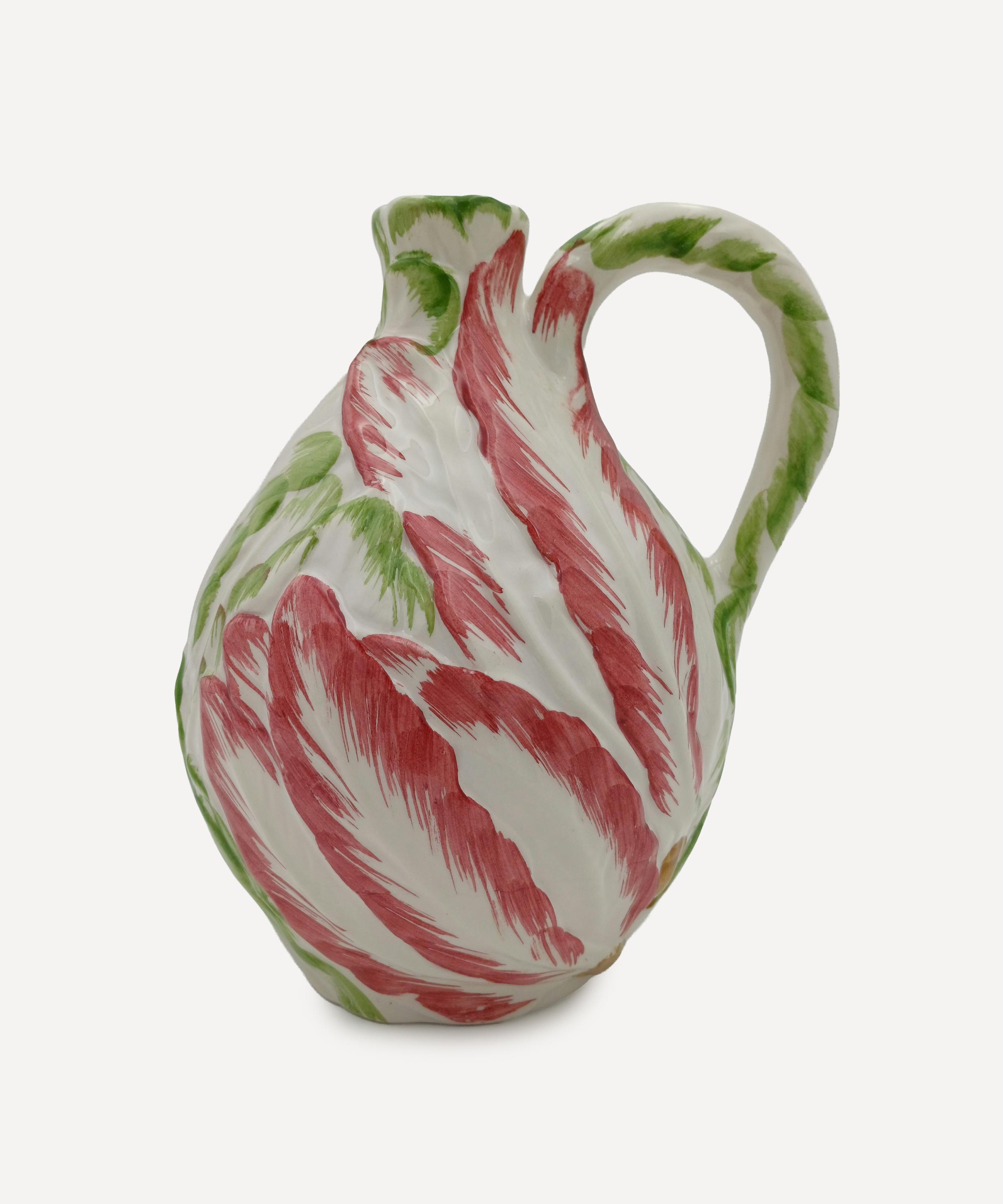 Practice the art of tablescaping with the Raddichio Mixed Leaf oil bottle and pourer – a high-fired earthenware piece, bursting with vibrancy and fine craftsmanship.