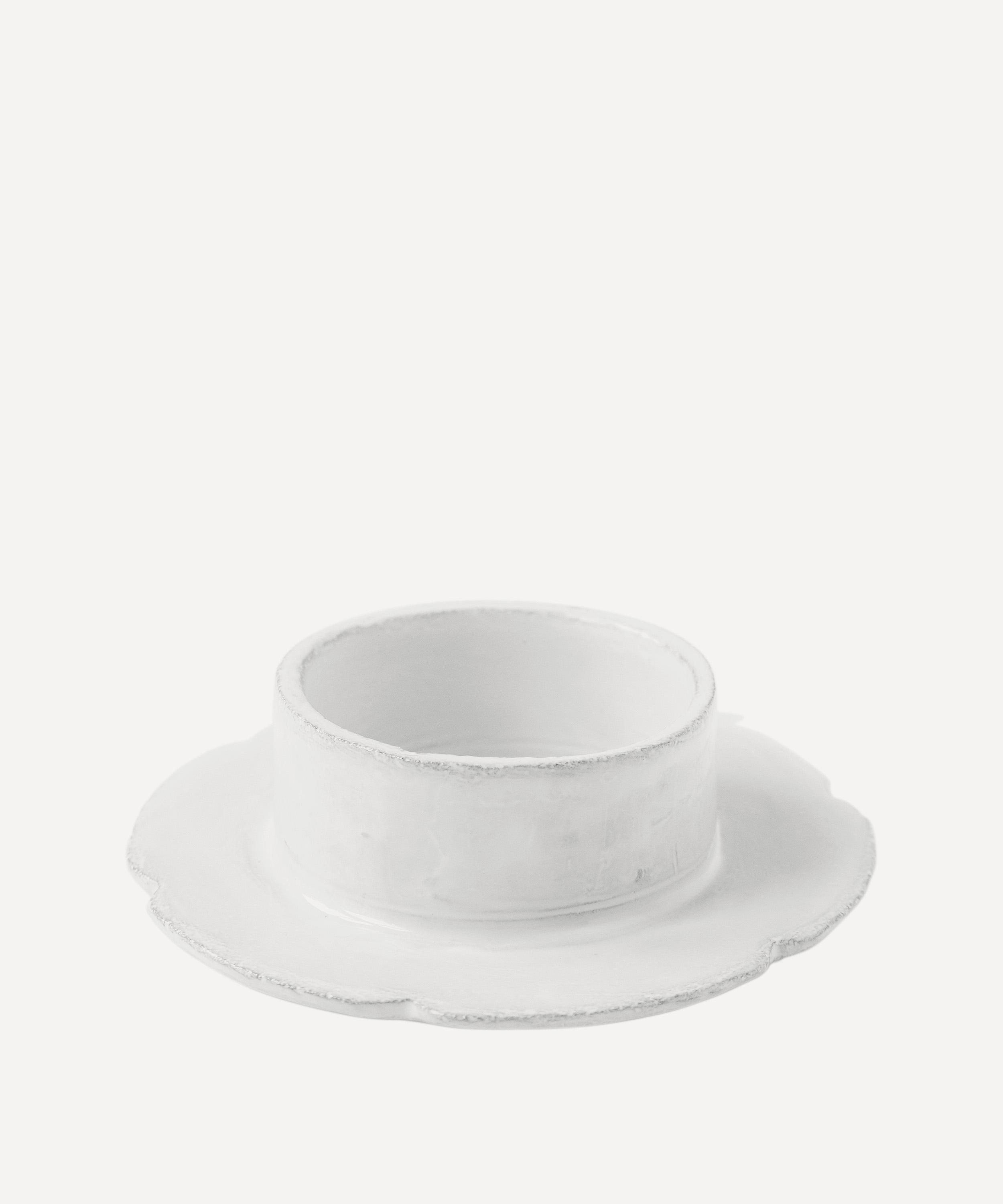 The celebrated ceramics maison crafts this piece by hand in its Parisian workshop, using black terracotta clay and a signature glossy white glaze to create a unique, one-of-a-kind finish that’s amplified by the natural drying process. Created in collaboration with artist Serena Carone, and hallmarked with the Astier de Villatte monogram and the initials of the artisan who crafted it, it’s perfect for keeping butter fresh and brings understated grace to your dining room.