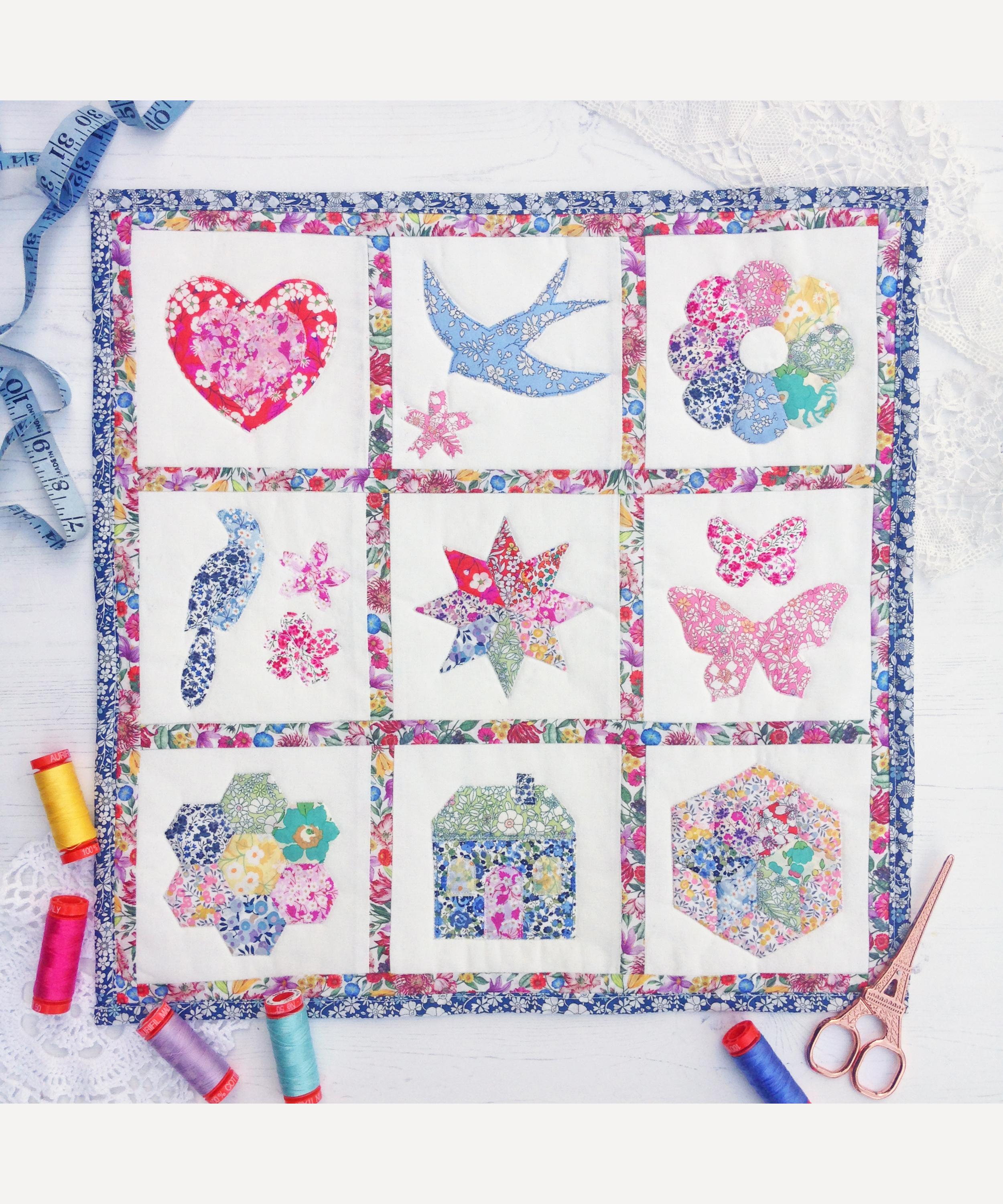This Rainbow Mini Sampler Quilt is a great way to explore a selection of shapes and designs using beautiful Liberty fabric. Suitable for an advancing beginner, it is constructed using a mixture of techniques which will help to improve your sewing skills. Complete the design using the materials and templates provided and use to inject some Liberty print charm into your interior.