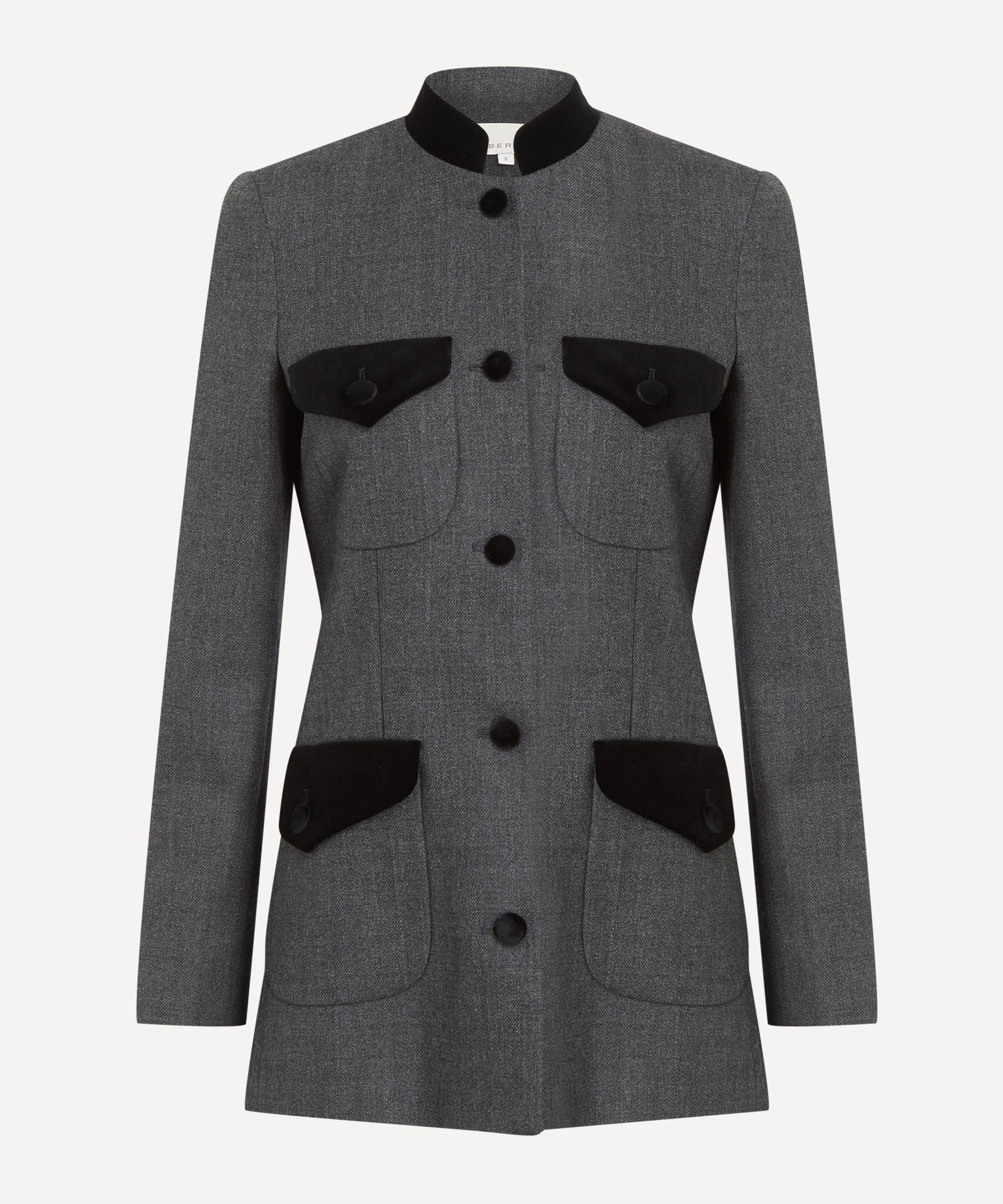 Elevate your seasonal staples with the refined opulence of the Raja Signature Grey Wool Jacket from London based label Liberowe.