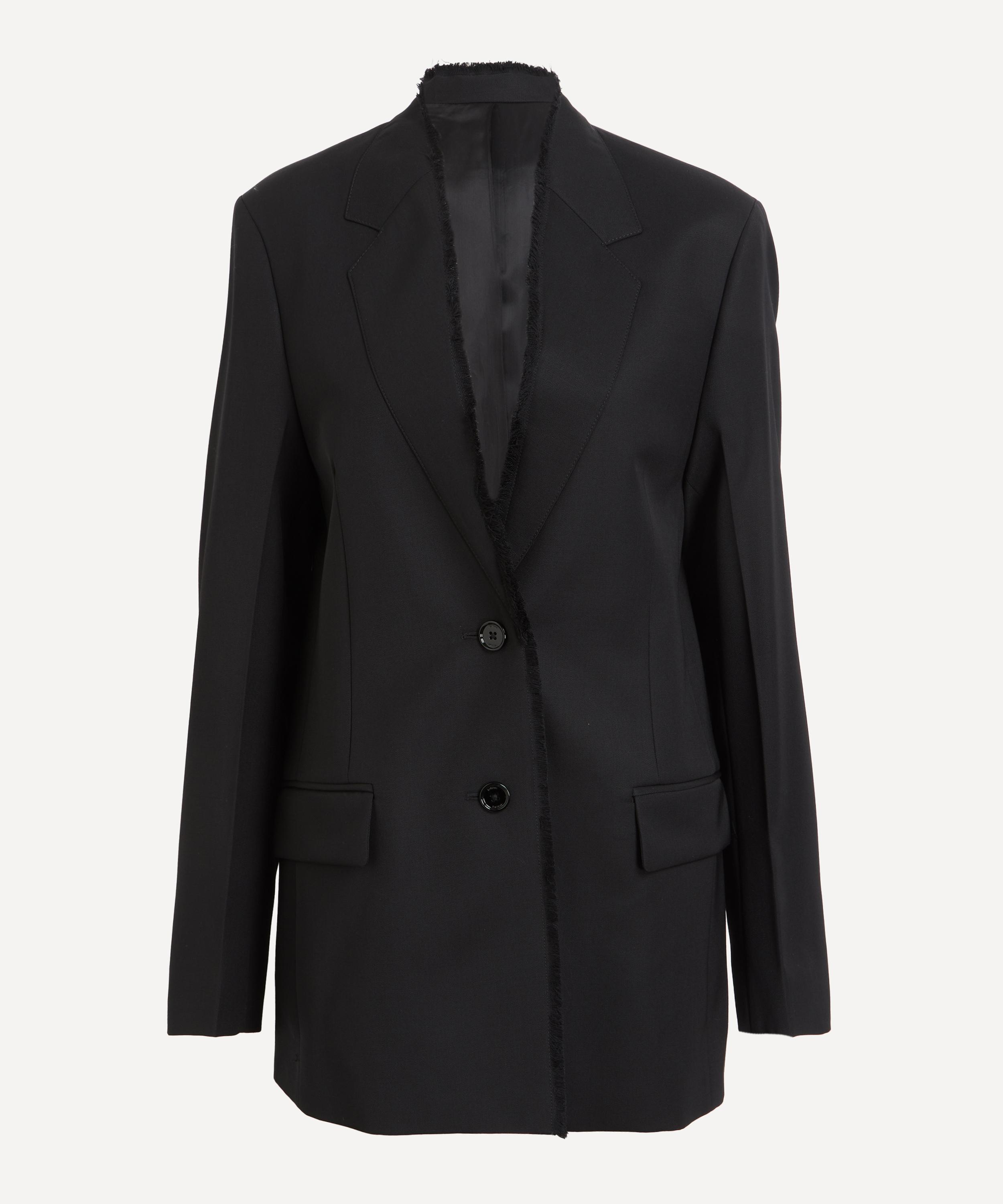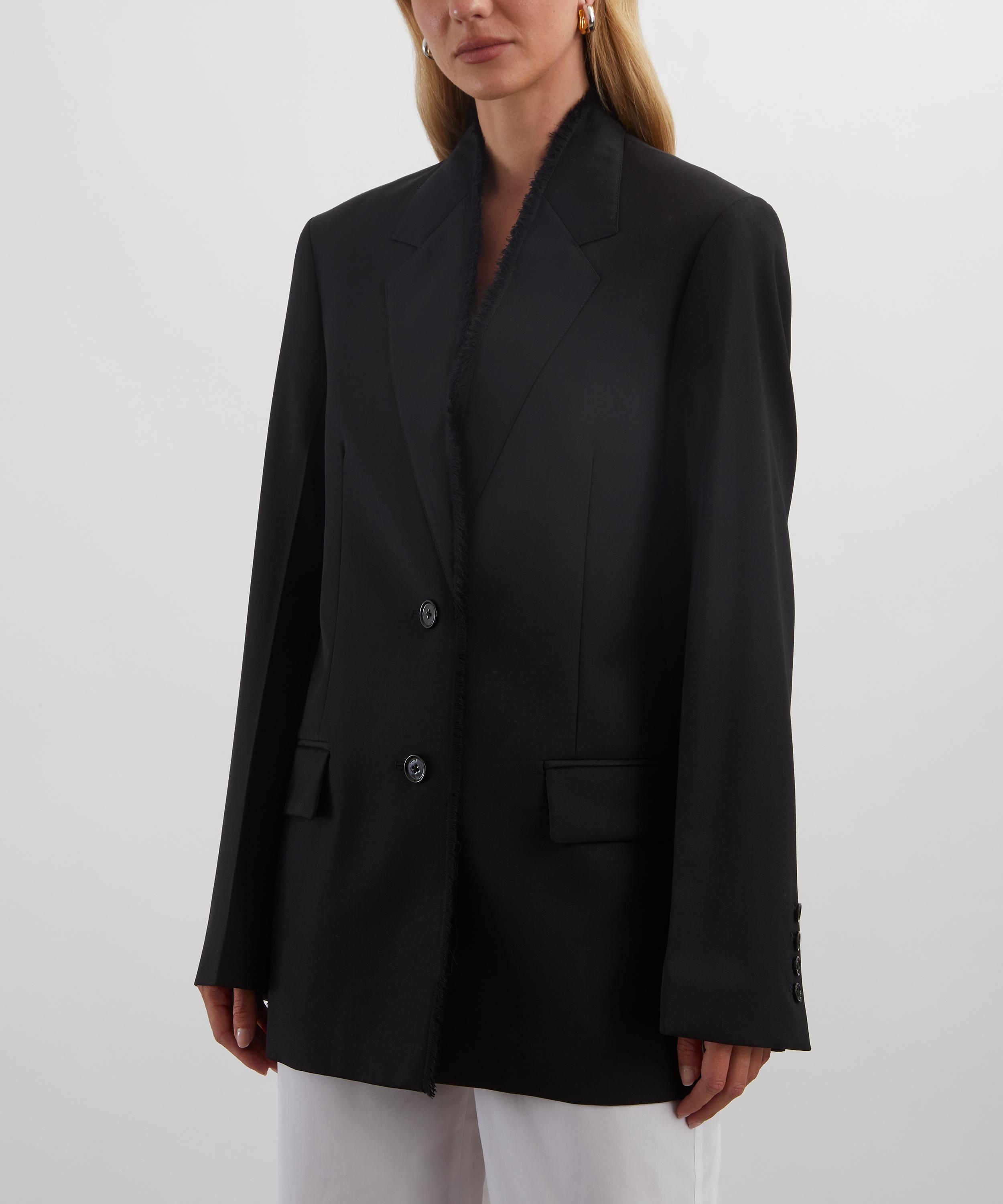 A reflection of the collection's penchant for meticulous tailoring, this suit jacket has been crafted from structured wool twill fitted with satin lining, and features a two-button closure, buttoned cuffs and lapels that are sewn into the body and frayed for a raw, artisanal finish. Finished with a practical pair of flap pockets, this effortlessly contemporary staple is a slick and versatile addition to your outerwear edit.