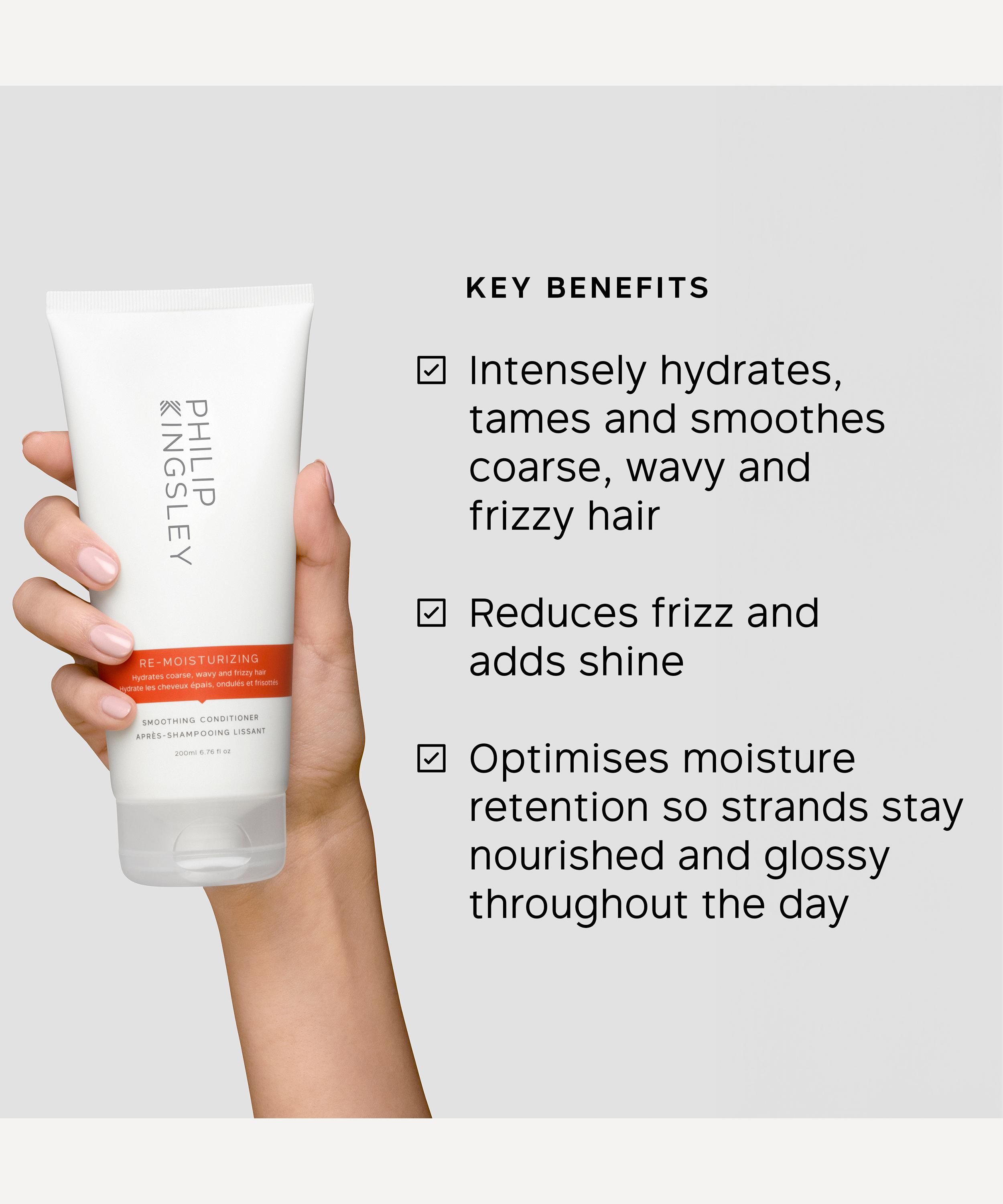 Offering the ultimate hair wash experience for curly, frizzy and wavy hair types, Philip Kingsley's Re-Moisturising Smoothing Conditioner boasts a highly effective formula that smooths and tames coarse, unruly tresses.